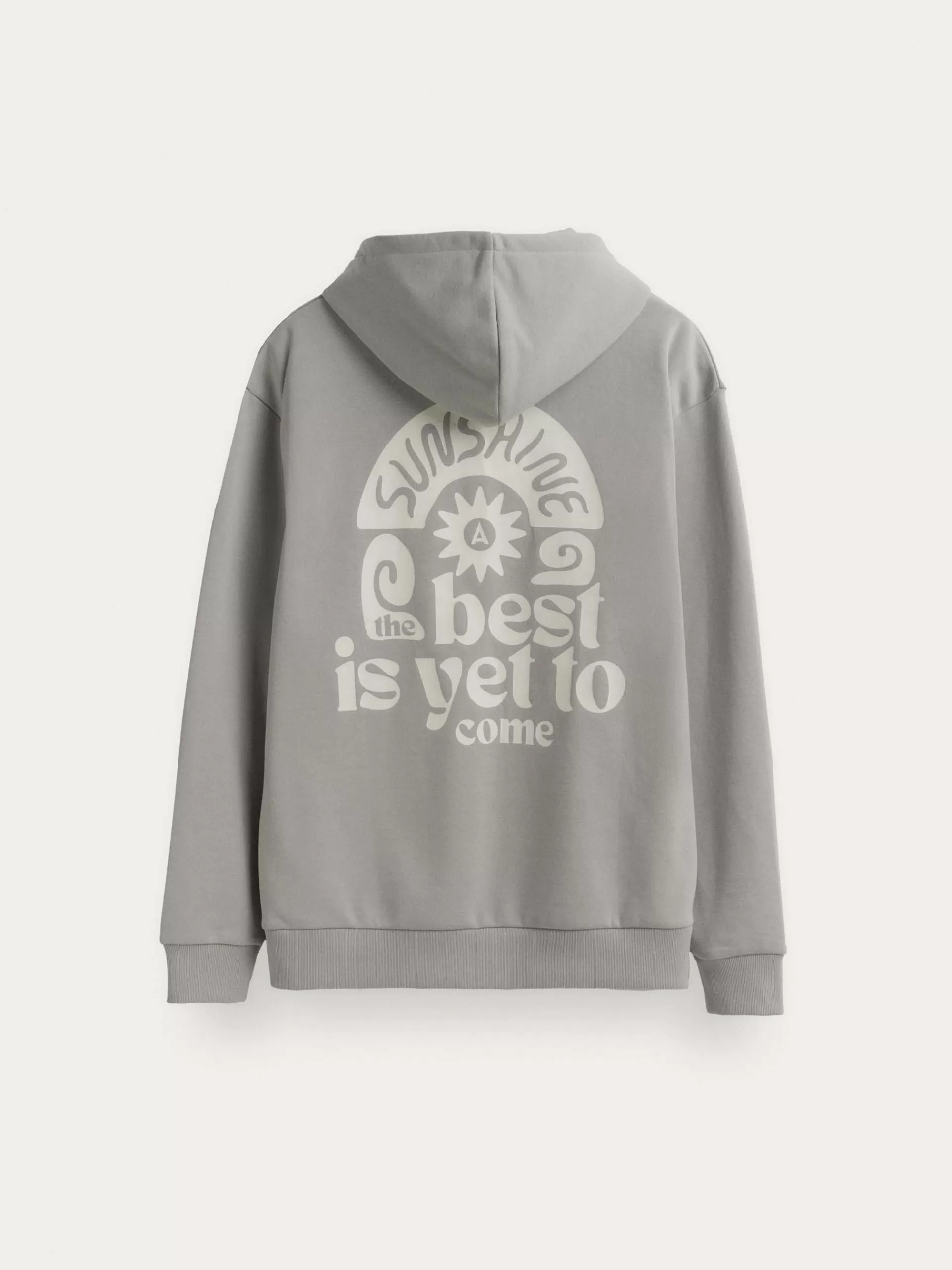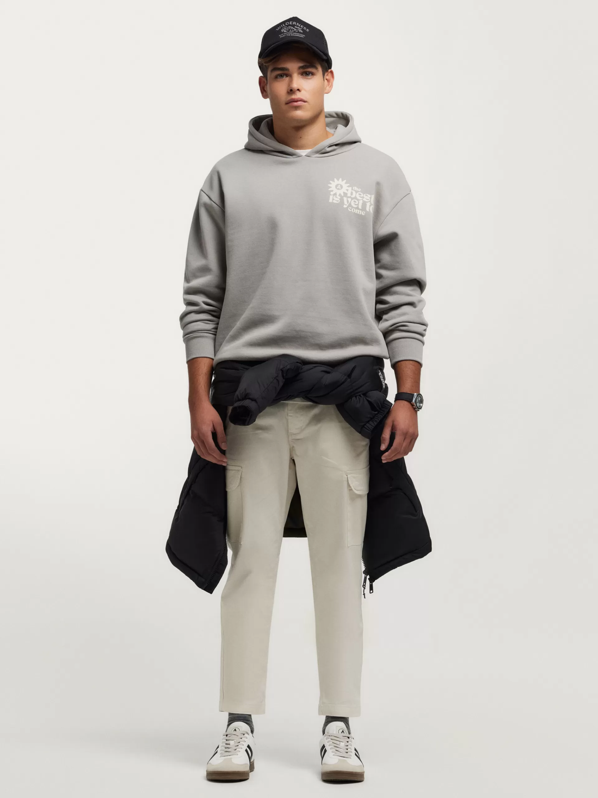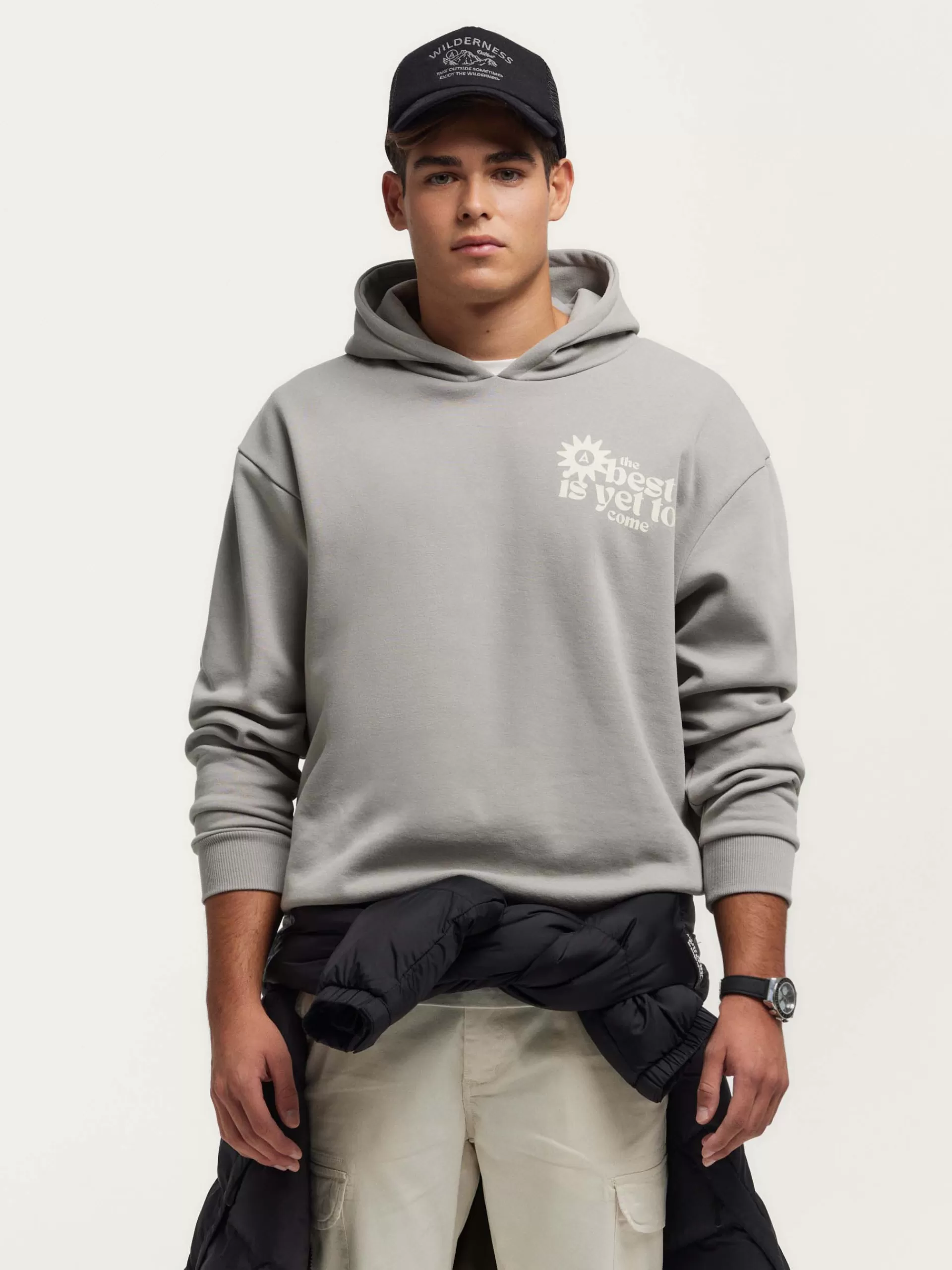 Sudadera estilo relaxed fit aportando un corte más relajado. Cuenta con gorro, manga larga y estampación personalizada en el frontal y en su parte trasera. Cuello, puños y bajos en acabado elástico.