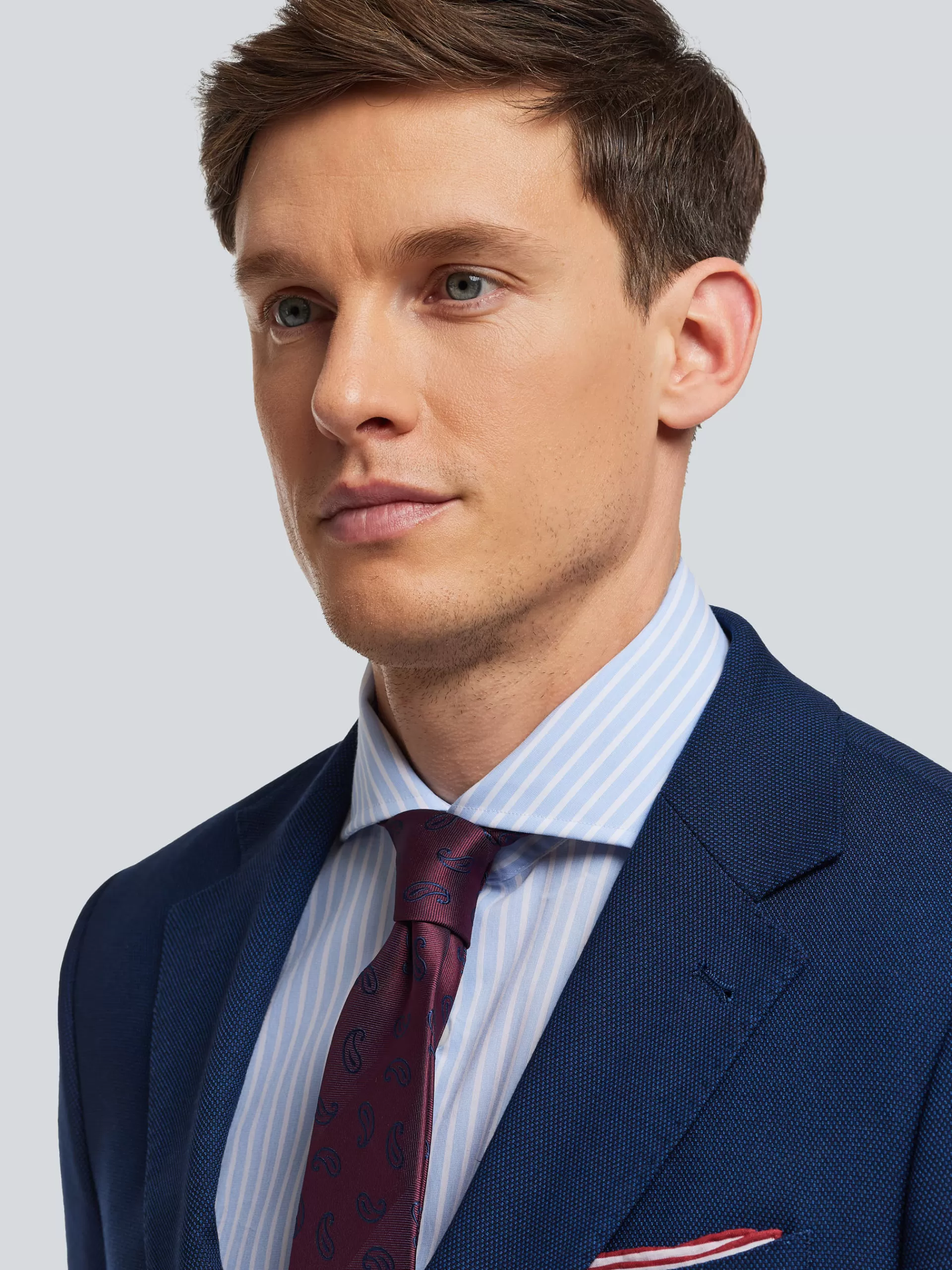 Americana con cuello y solapa en tejido de ojo de perdiz. Cierre central mediante botones, bolsillo de ojal en el pecho, tres bolsillos de solapa en la cintura y puños con botones decorativos. Interior forrado y con bolsillos.