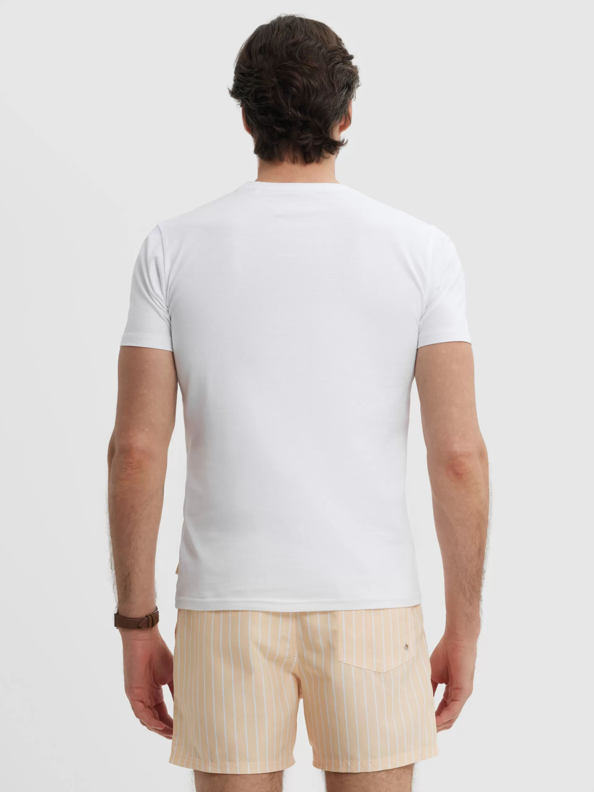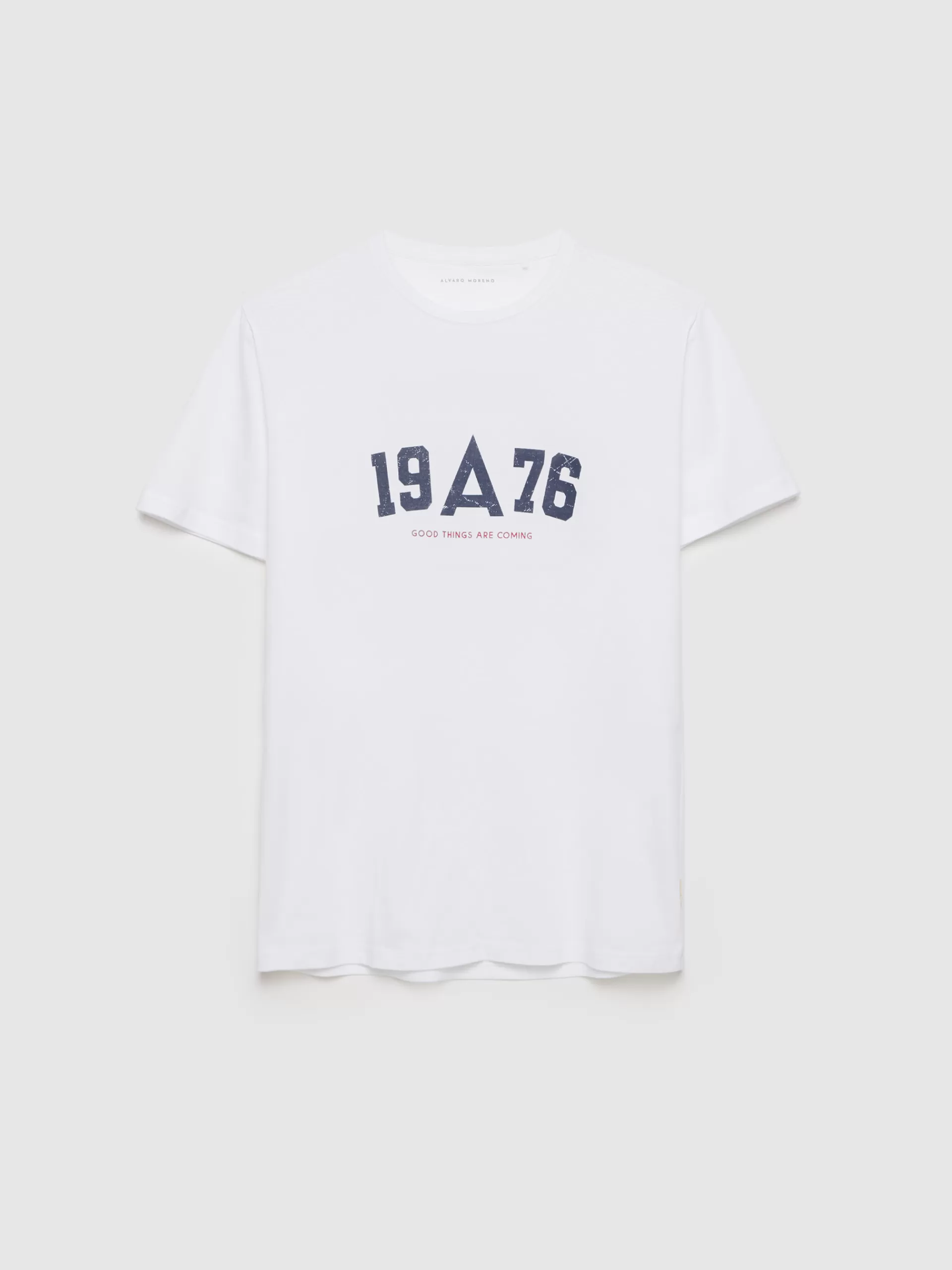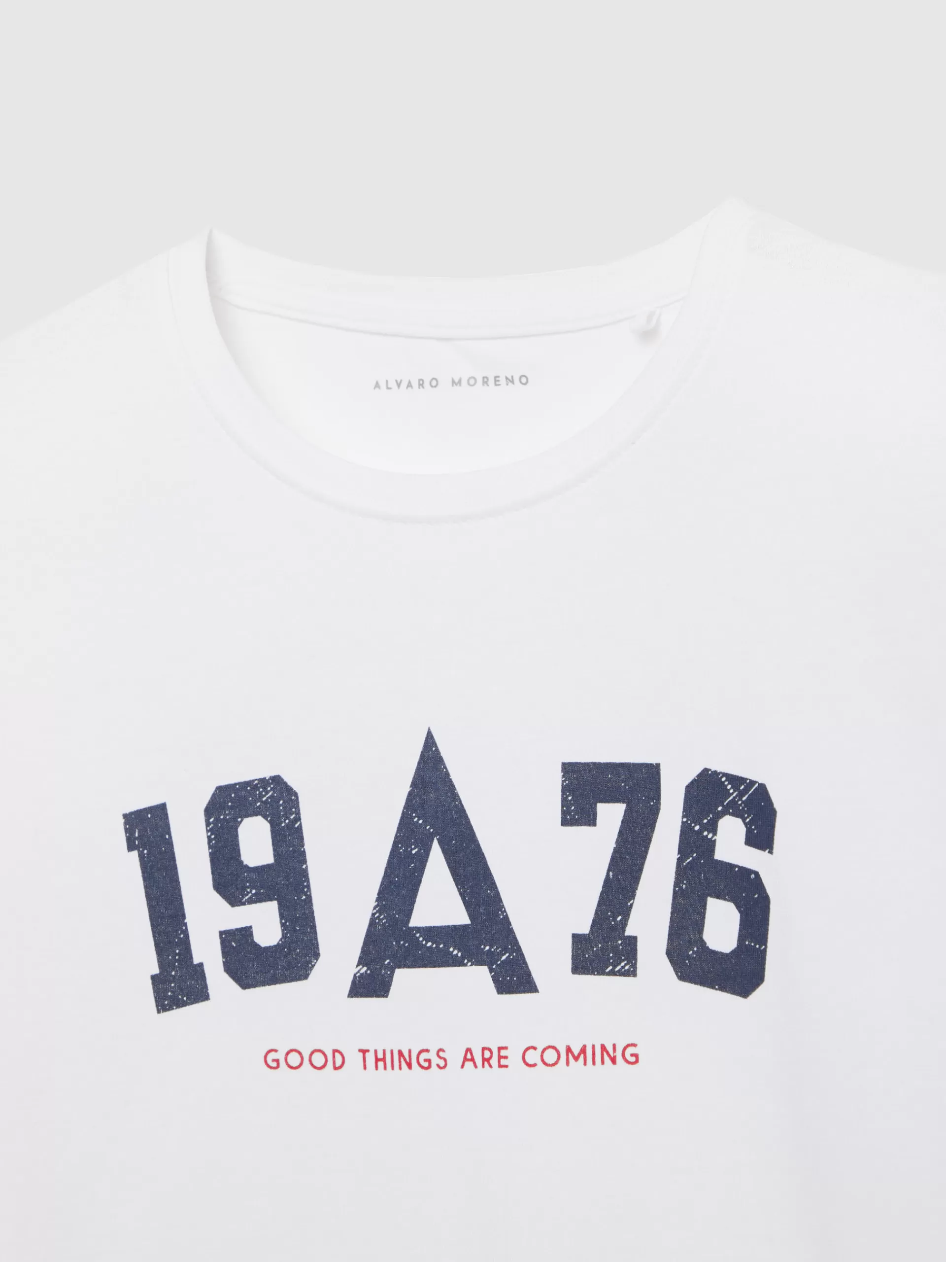 Camiseta con estampado personalizado en el frontal. Cuenta con cuello redondo, manga corta y etiqueta canvas en el bajo. Corte regular fit.