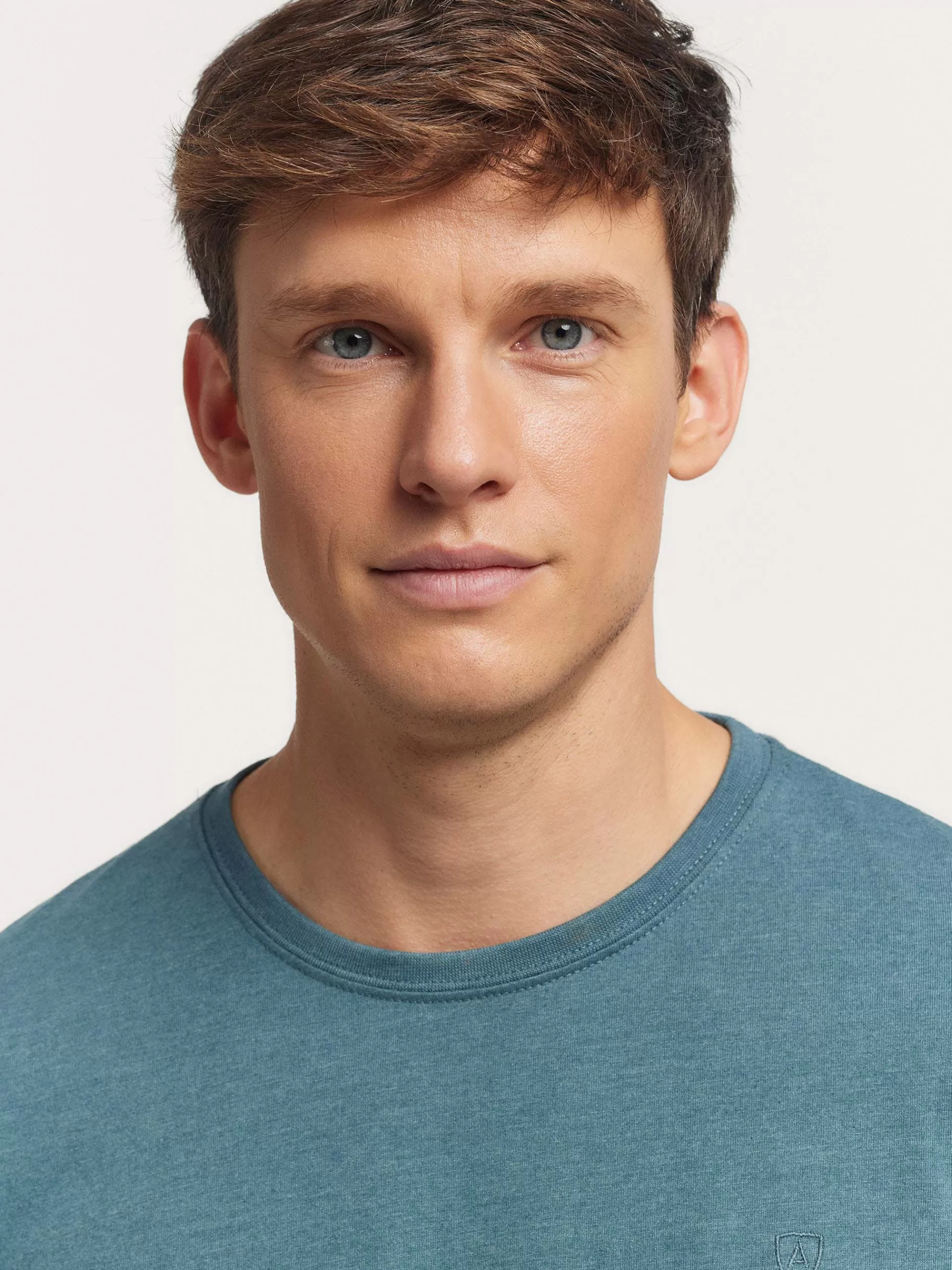 Camiseta confeccionada con tejido jaspeado. Cuenta con cuello redondo, manga corta y etiqueta canvas en el lateral. Corte regular fit.