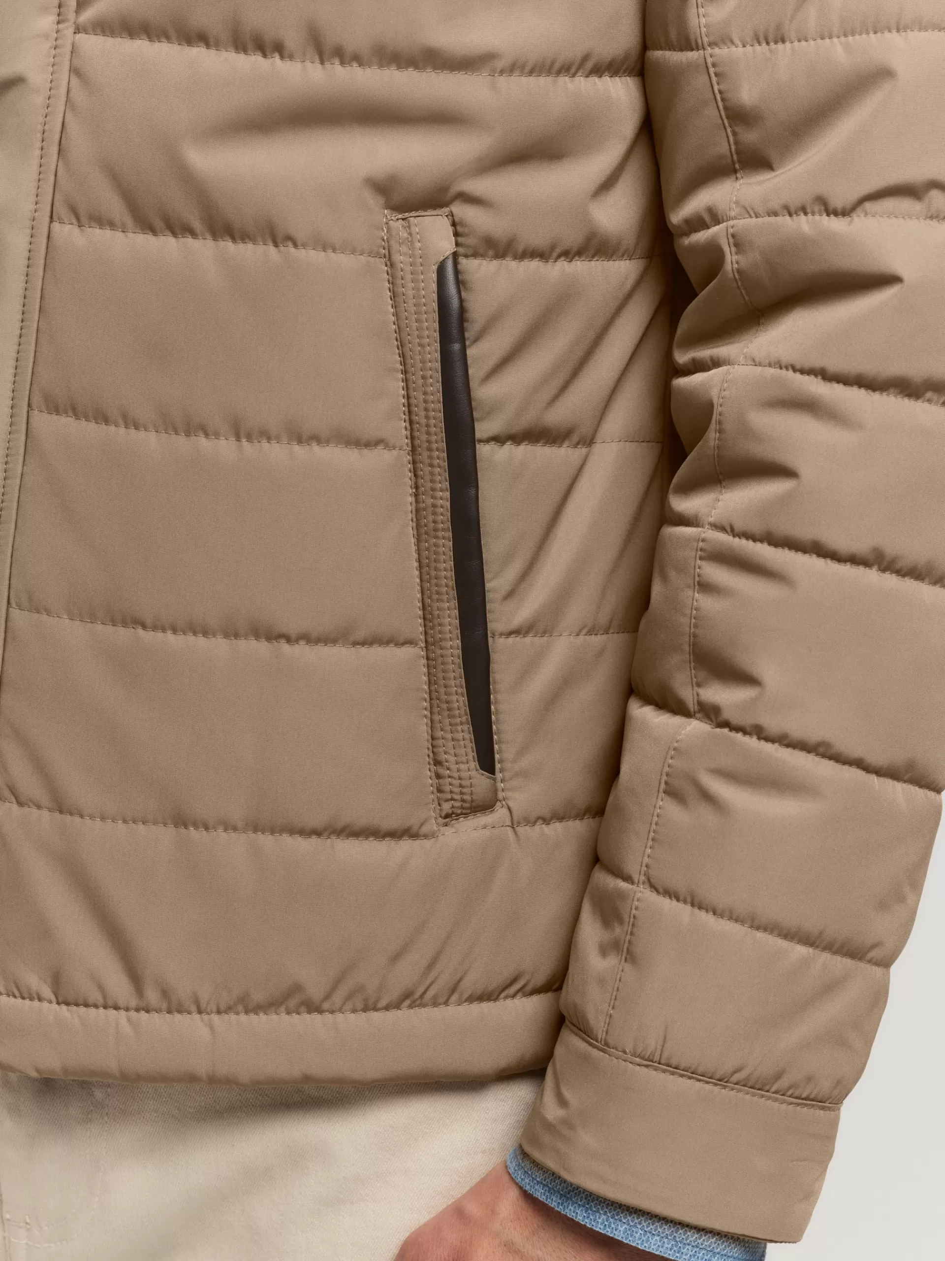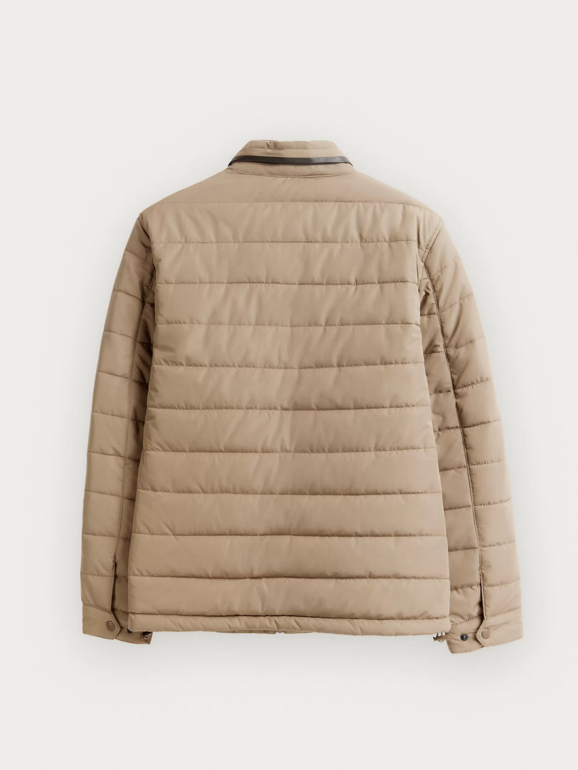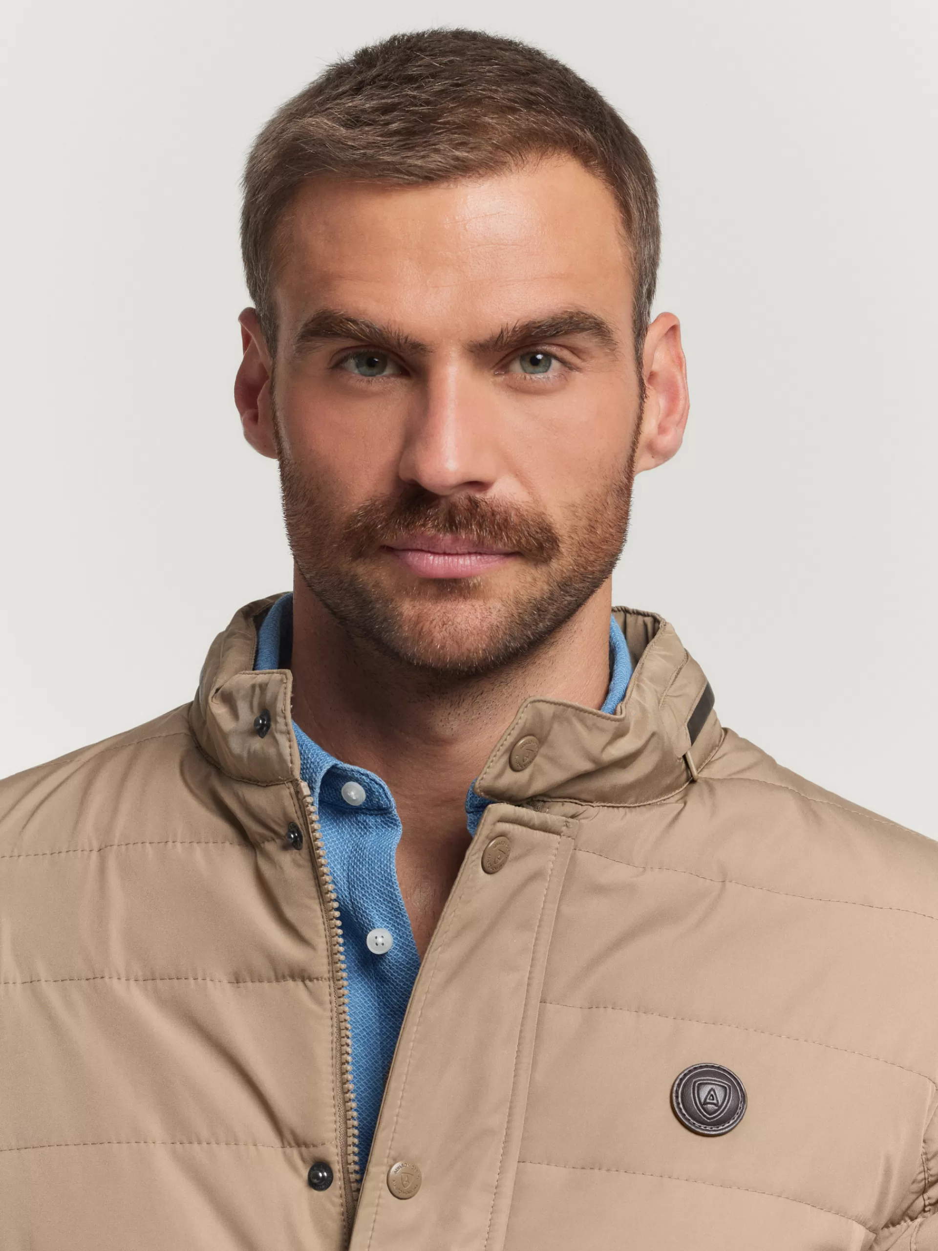 Cazadora acolchada con cuello subido y cremallera decorativa. Cuenta con cierre central de cremallera oculta por tapeta de botones a presión, manga larga con puños ajustables y dos bolsillos en la cintura. Parche en el pecho con el logo de la marca.