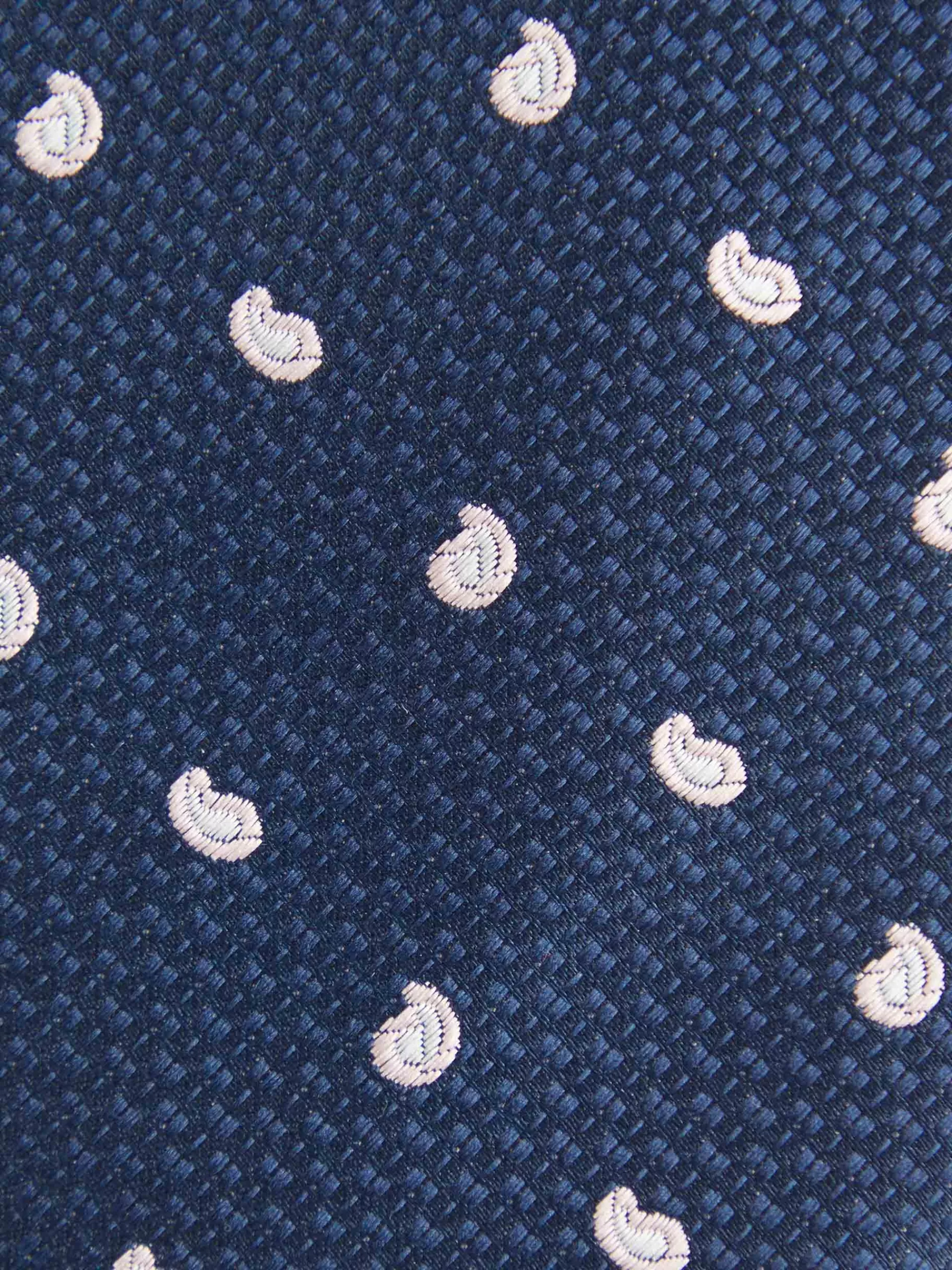 Corbata estilo jacquard con diseño estampado a contraste confeccionada en 100% poliéster. Cuenta con el logo de la marca grabado en el interior.