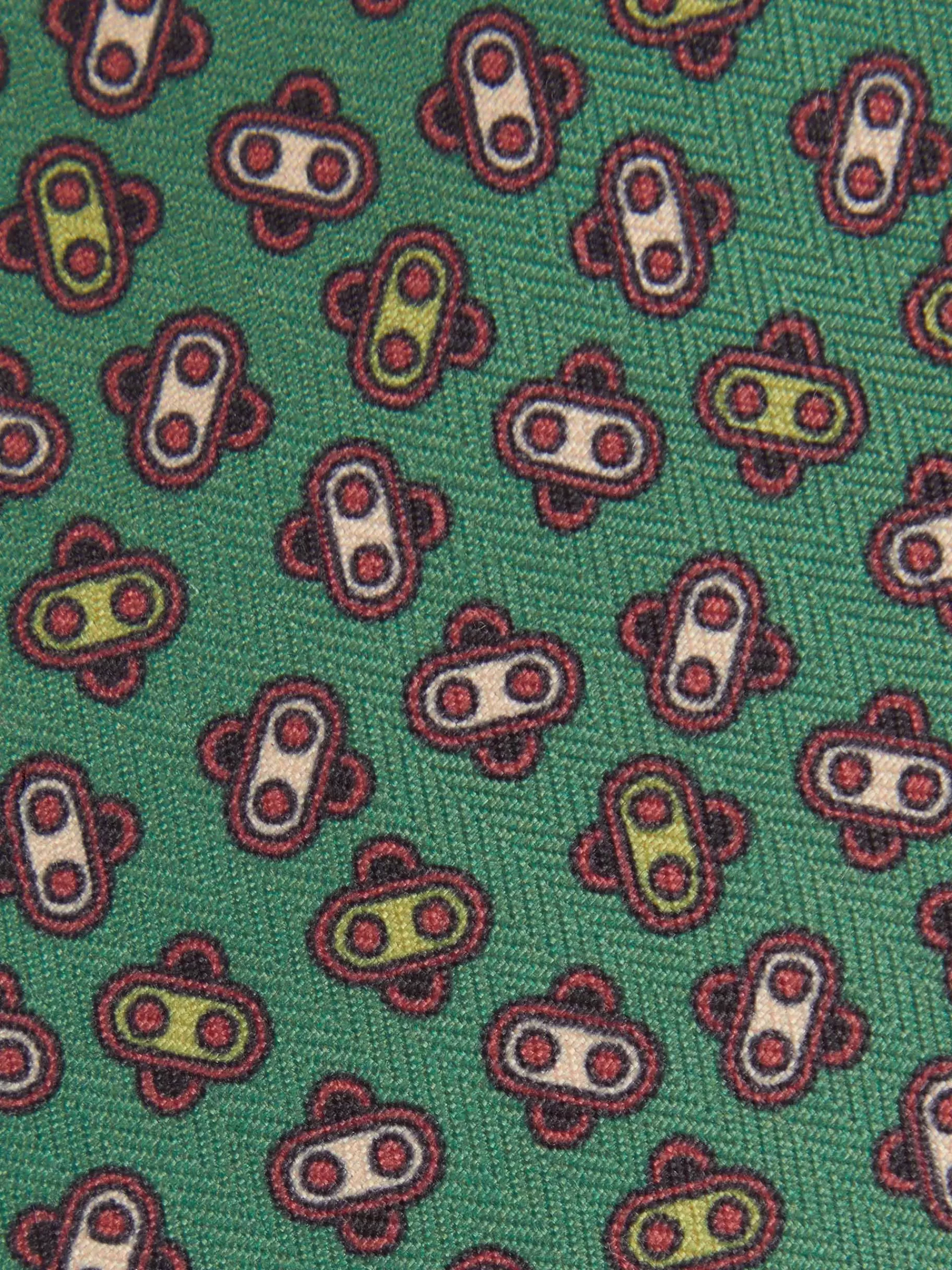 Corbata con diseño estampado personalizado confeccionada en 100% poliéster. Cuenta con el logo de la marca grabado en el interior.