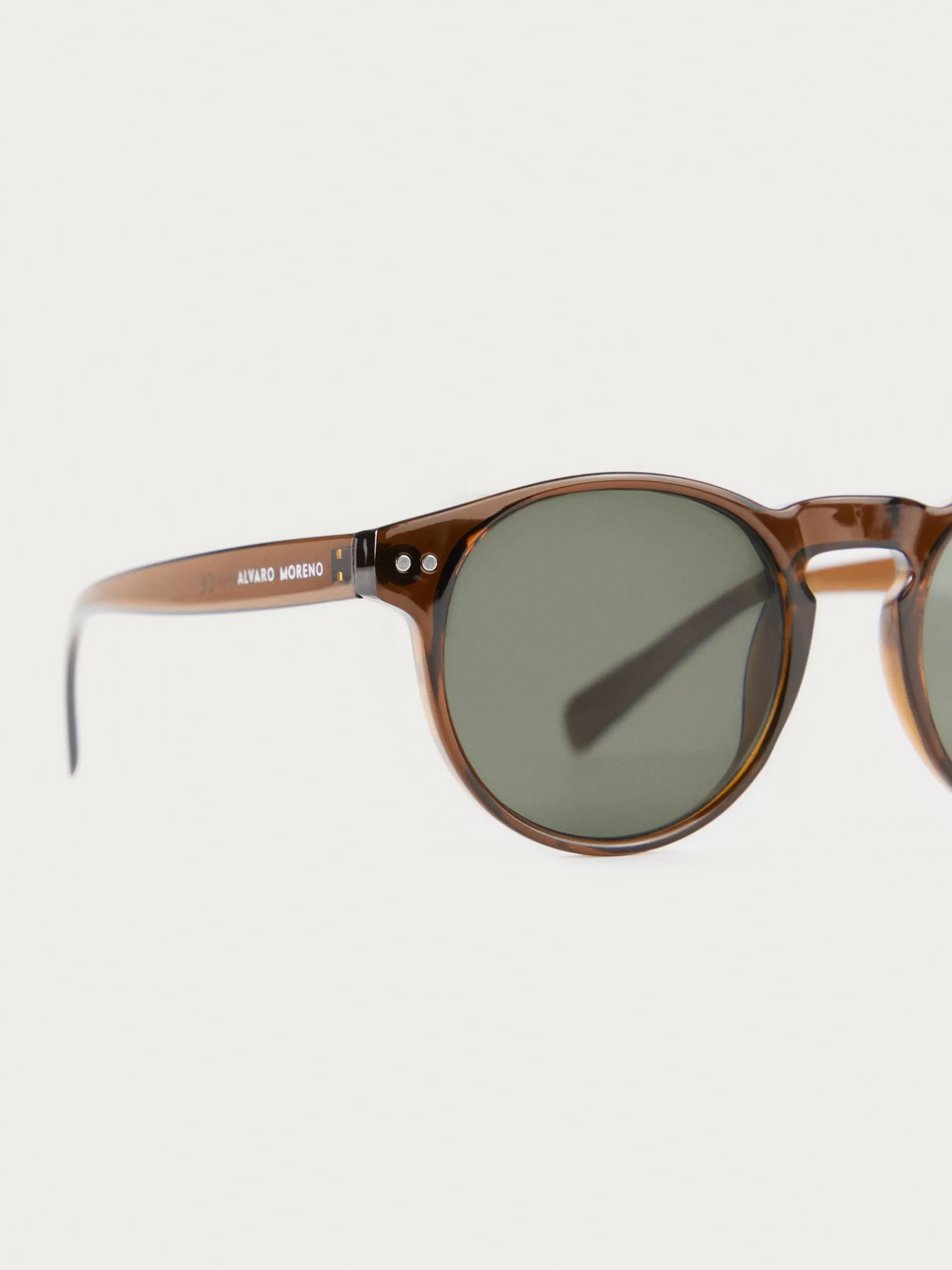 Gafas de sol de lentes redondas que cuentan con protección ultravioleta. Incluye caja y funda protectora.