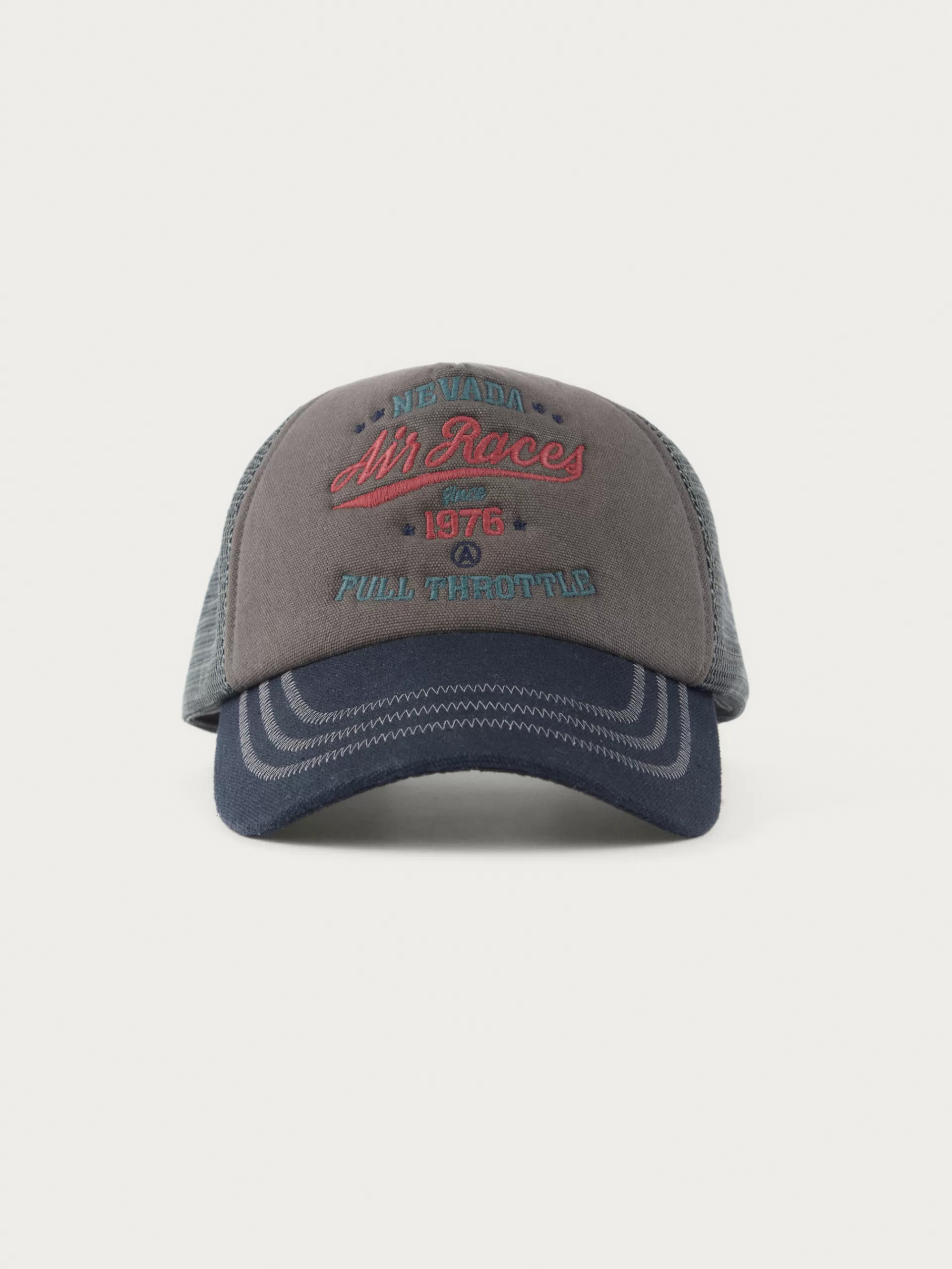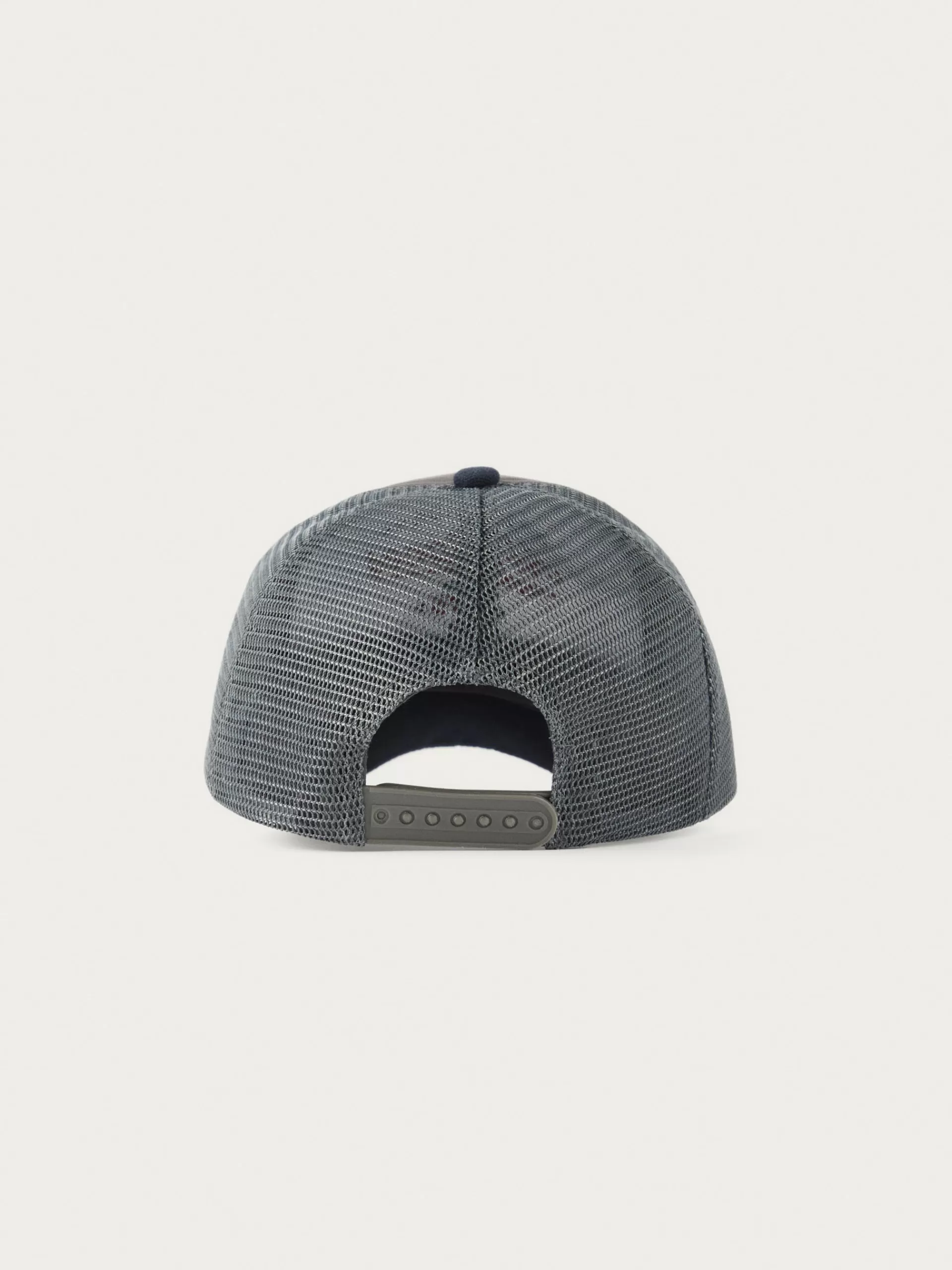 Gorra estilo trucker con parte trasera estilo rejilla. Cuenta con detalle personalizado en el frontal y ajustador en la parte trasera.