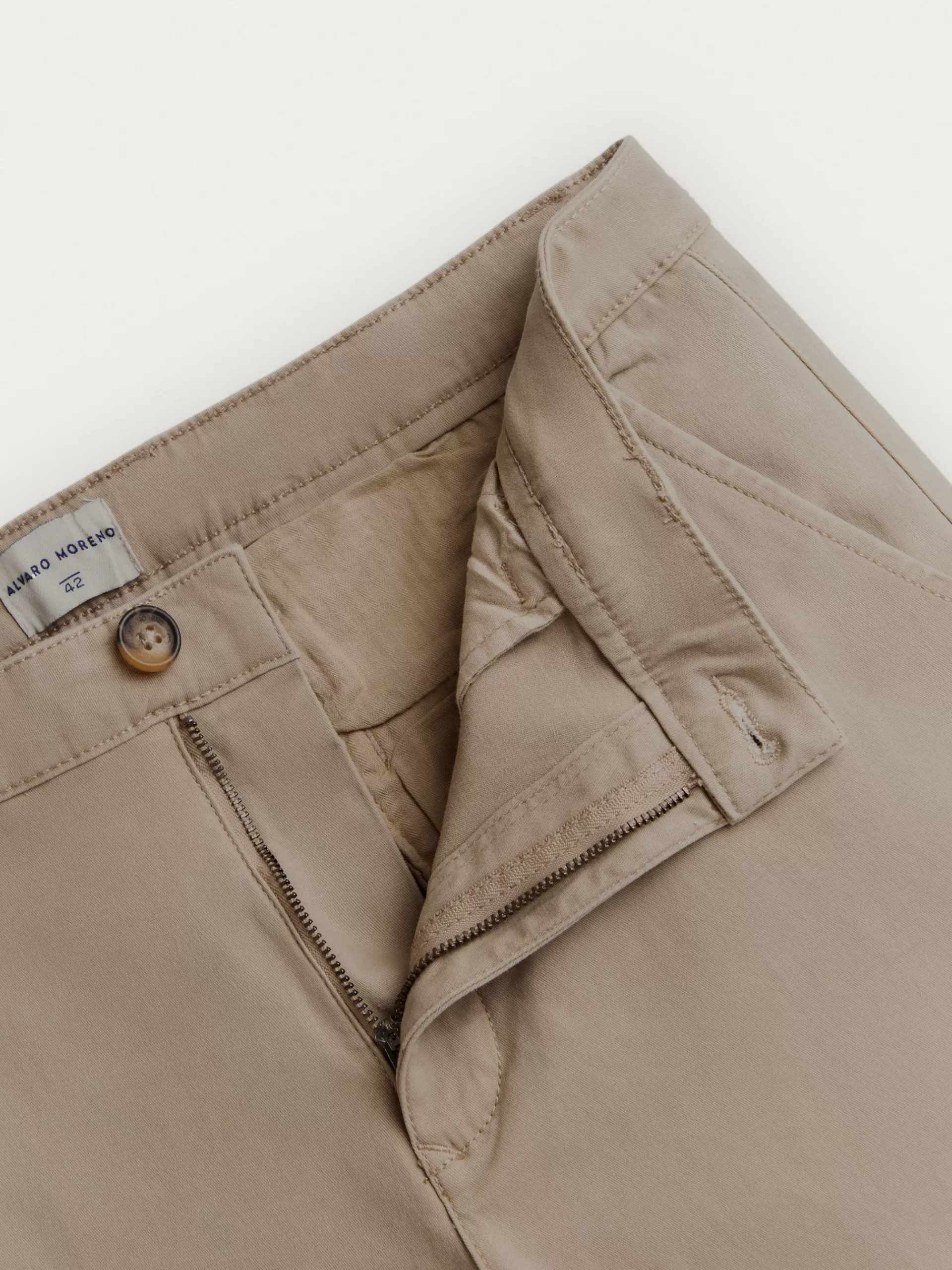 Pantalón chino con cierre central mediante botón y cremallera, dos bolsillos en el frontal y dos en la parte trasera. …
