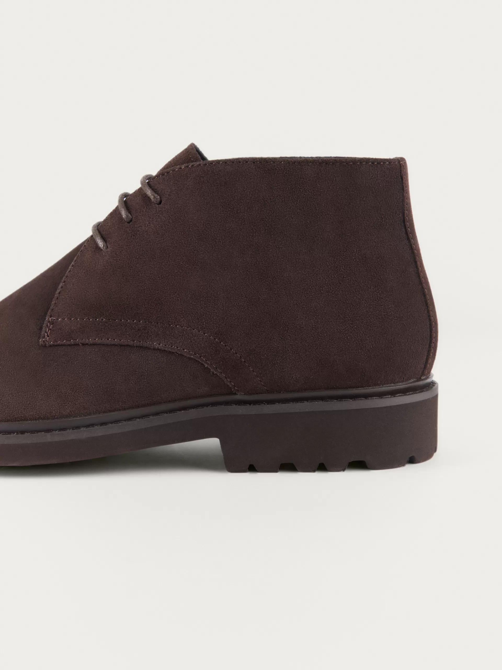 Botín confeccionado en serraje con cordones al tono de hasta tres pasados, suela con laminas antideslizantes y talón reforzado mediante tira.