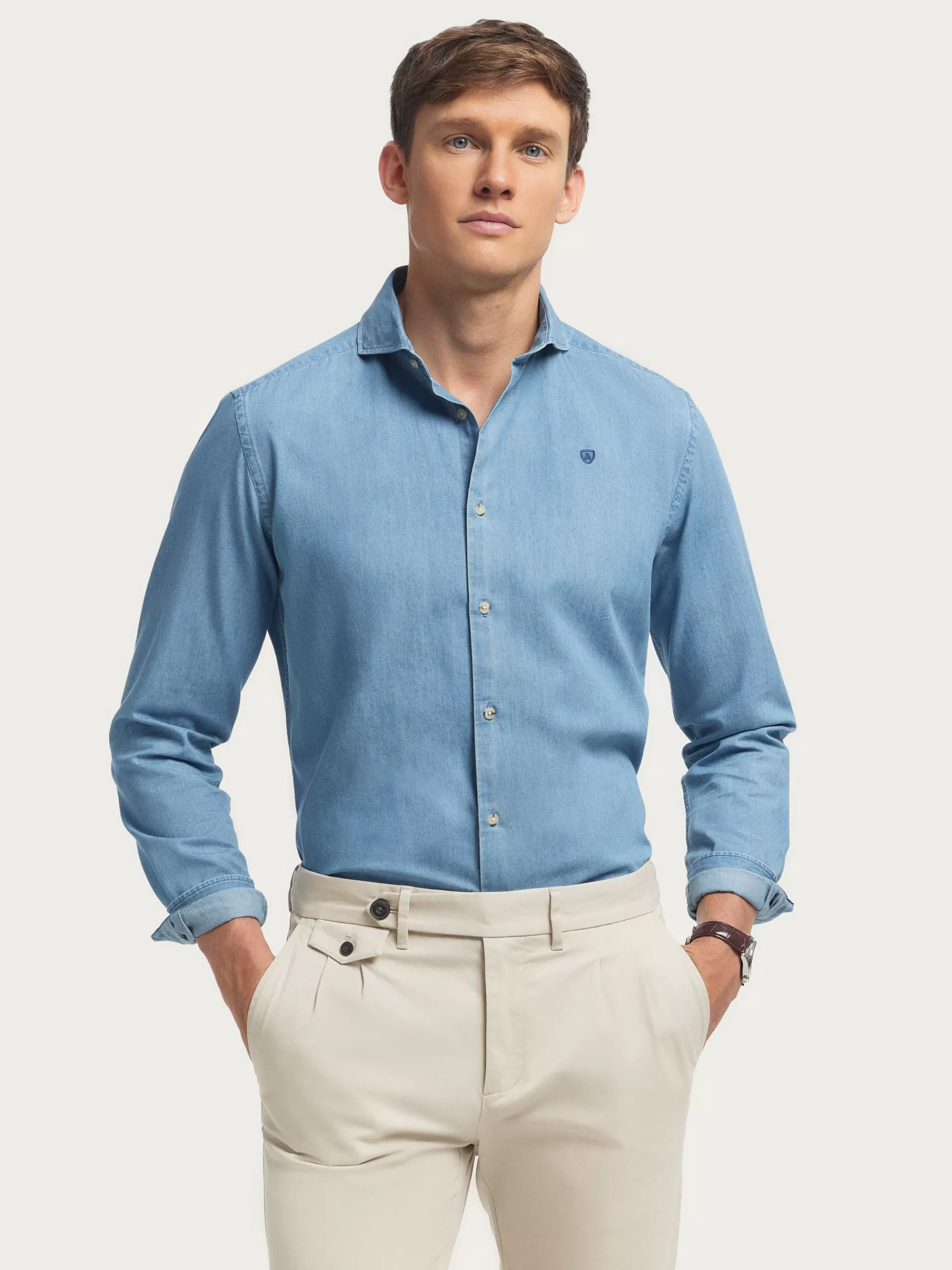Camisa estilo denim confeccionada en algodón. Cuenta con cuello de solapa, manga larga con puños simples y logo de la marca grabado en el frontal al tono. Corte regular fit.