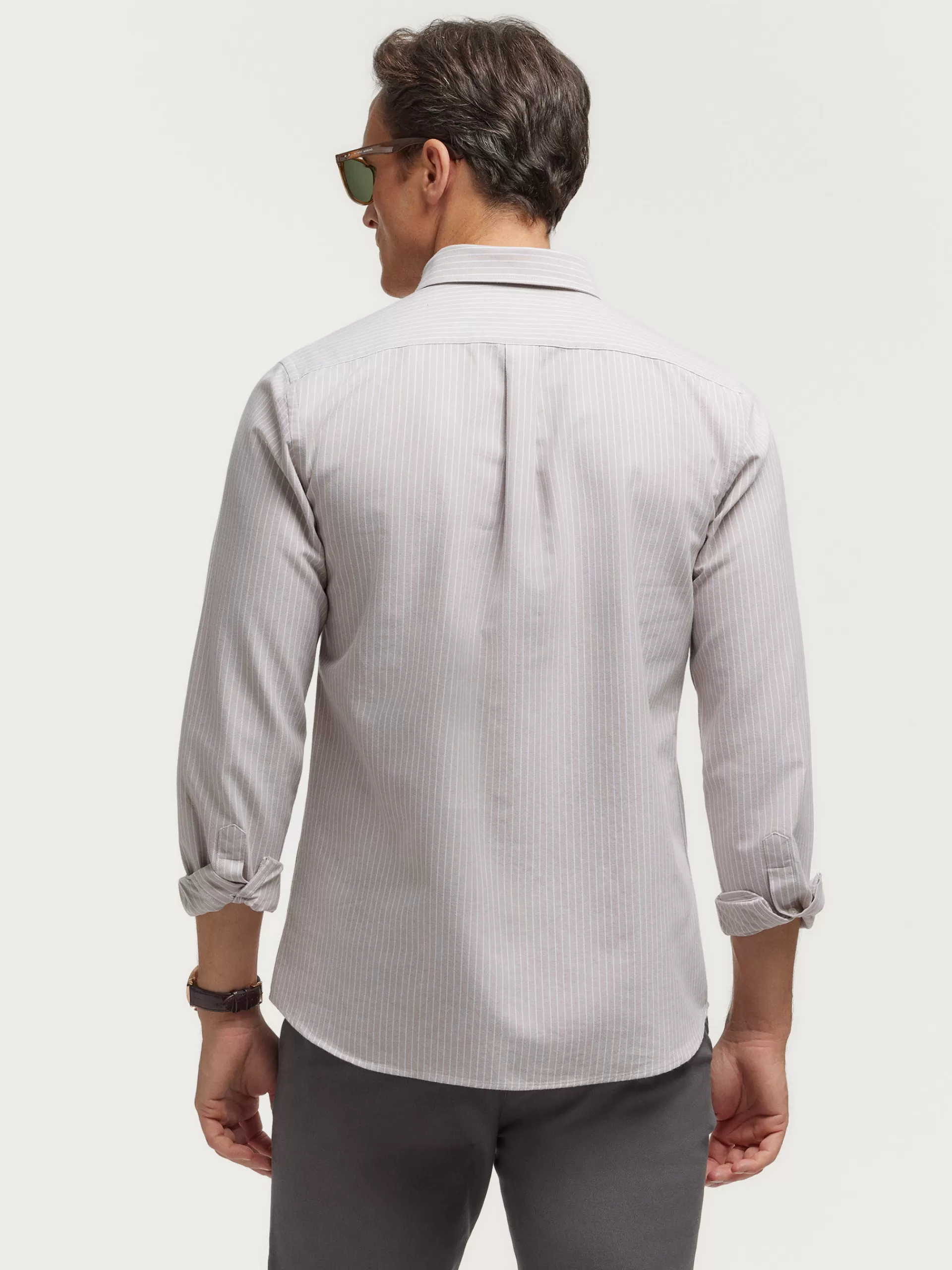 Camisa de estilo a rayas confeccionada en algodón. Cuenta con cuello clásico de botón, manga larga con puños simples y logo de la marca grabado en el frontal. Corte regular fit.