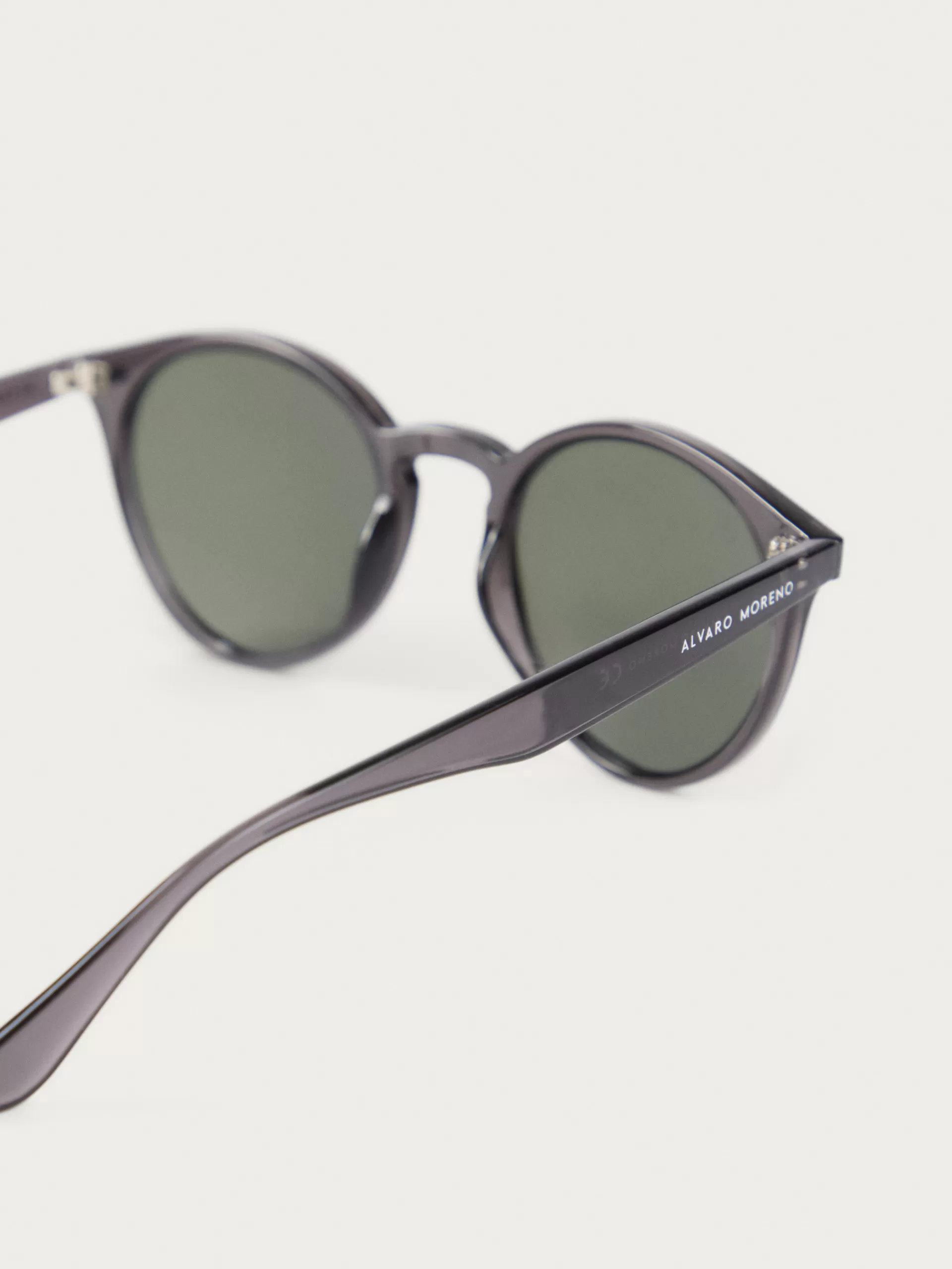 Gafas de sol de lentes redondas y patillas en efecto madera que cuentan con protección ultravioleta. Incluye caja y fun…