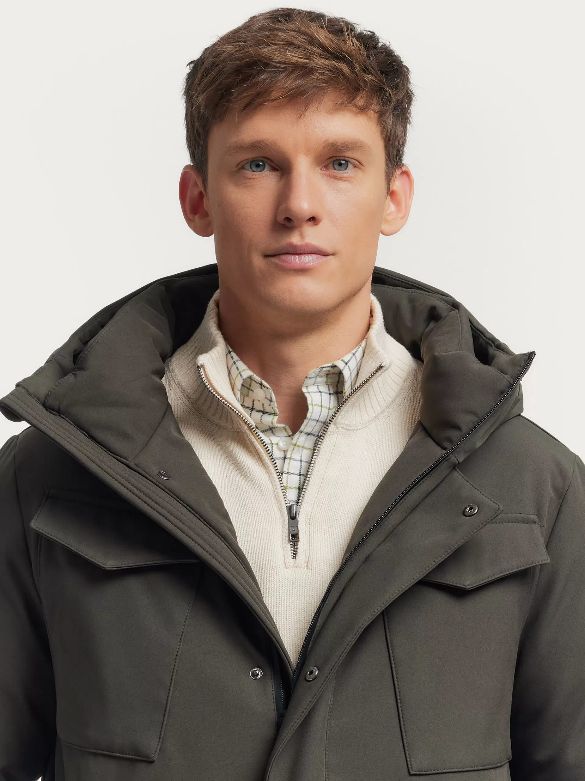 Parka larga con gorro ajustable y cierre central mediante doble cremallera oculta por tapeta de botones a presión. Dos …