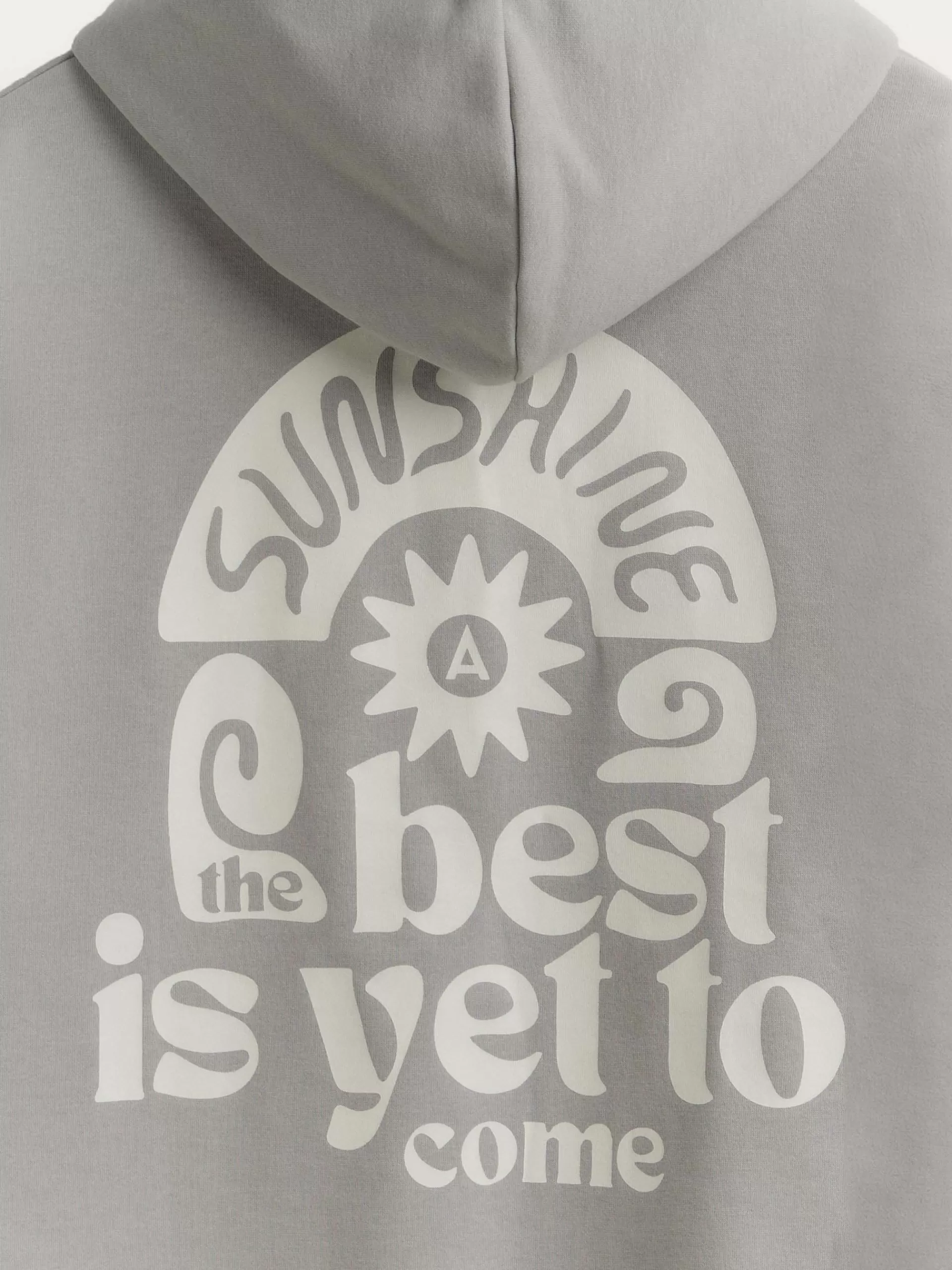 Sudadera estilo relaxed fit aportando un corte más relajado. Cuenta con gorro, manga larga y estampación personalizada en el frontal y en su parte trasera. Cuello, puños y bajos en acabado elástico.