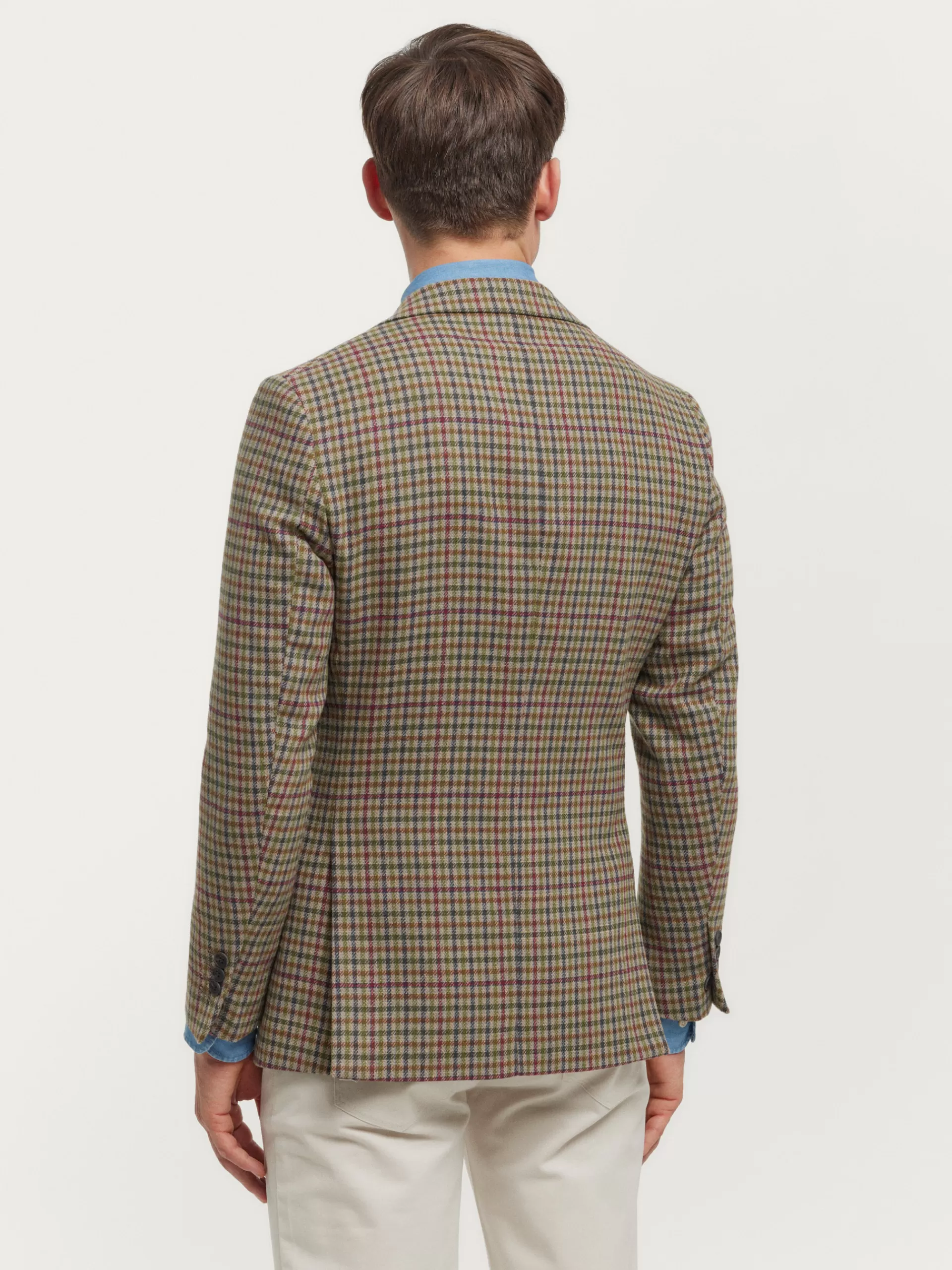 Americana confeccionada en tejido a cuadros de corte slim fit. Cuenta con cuello y solapa, cierre central simple mediant…