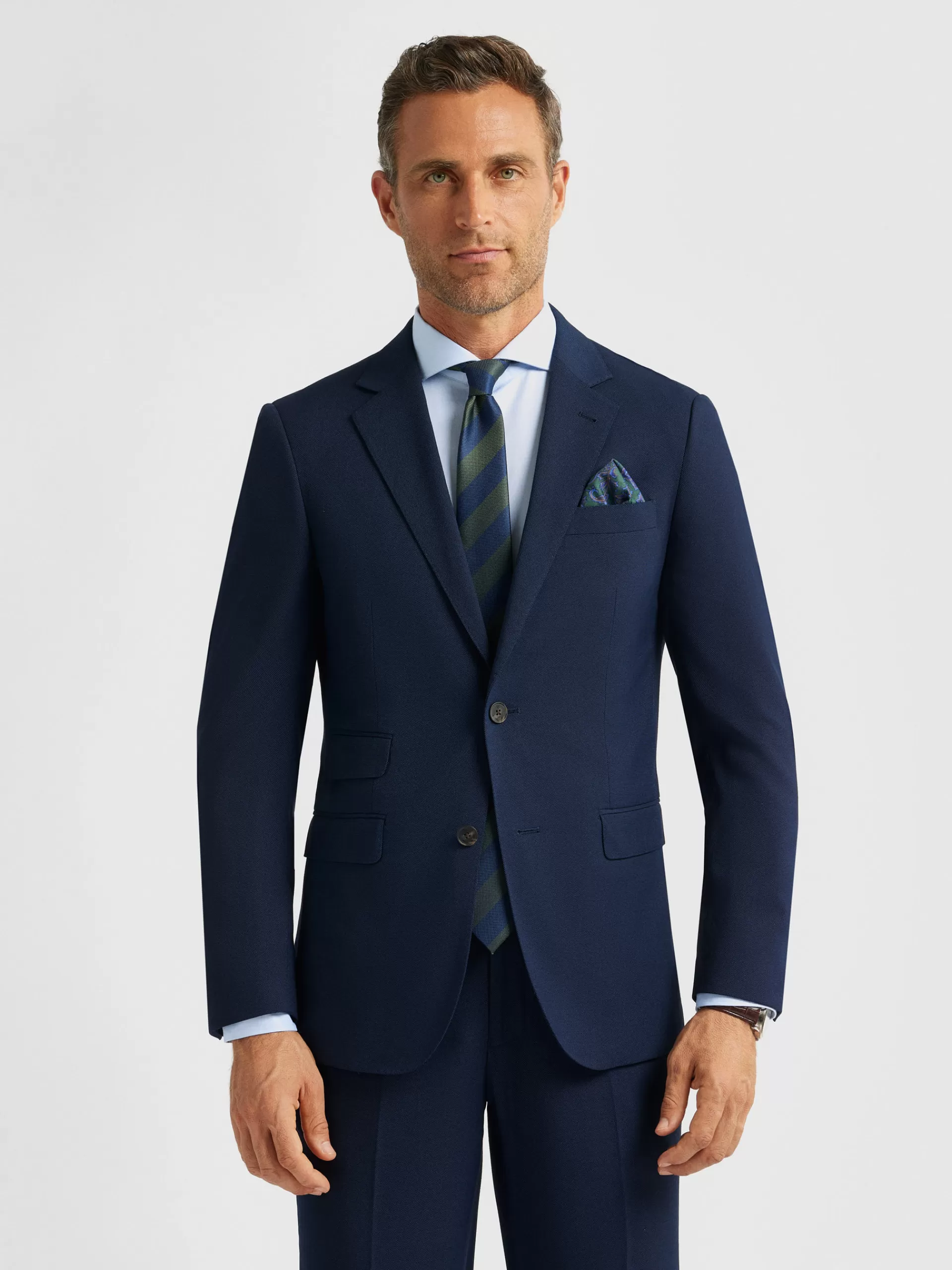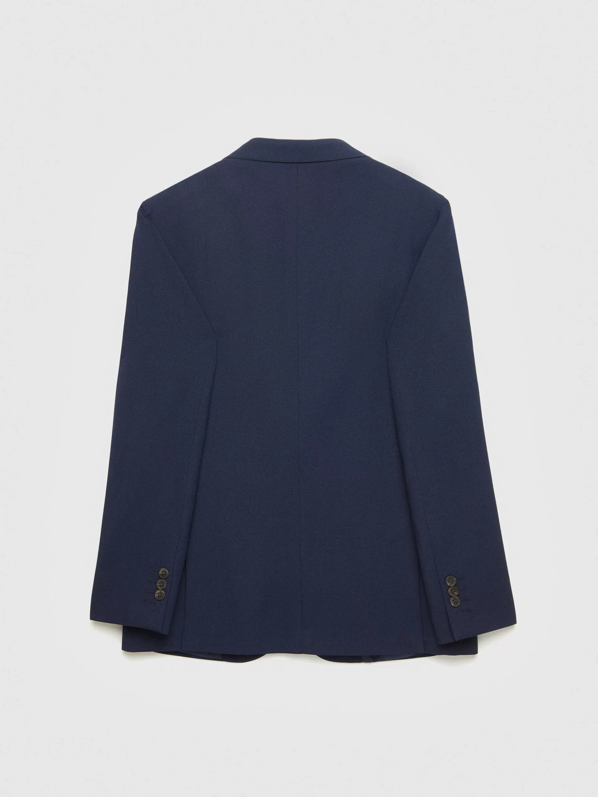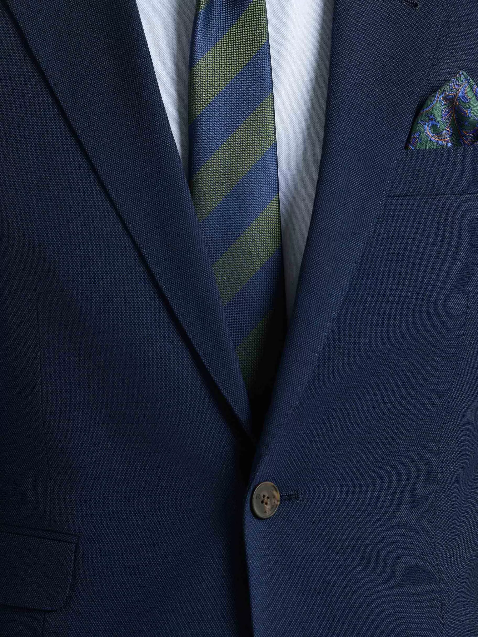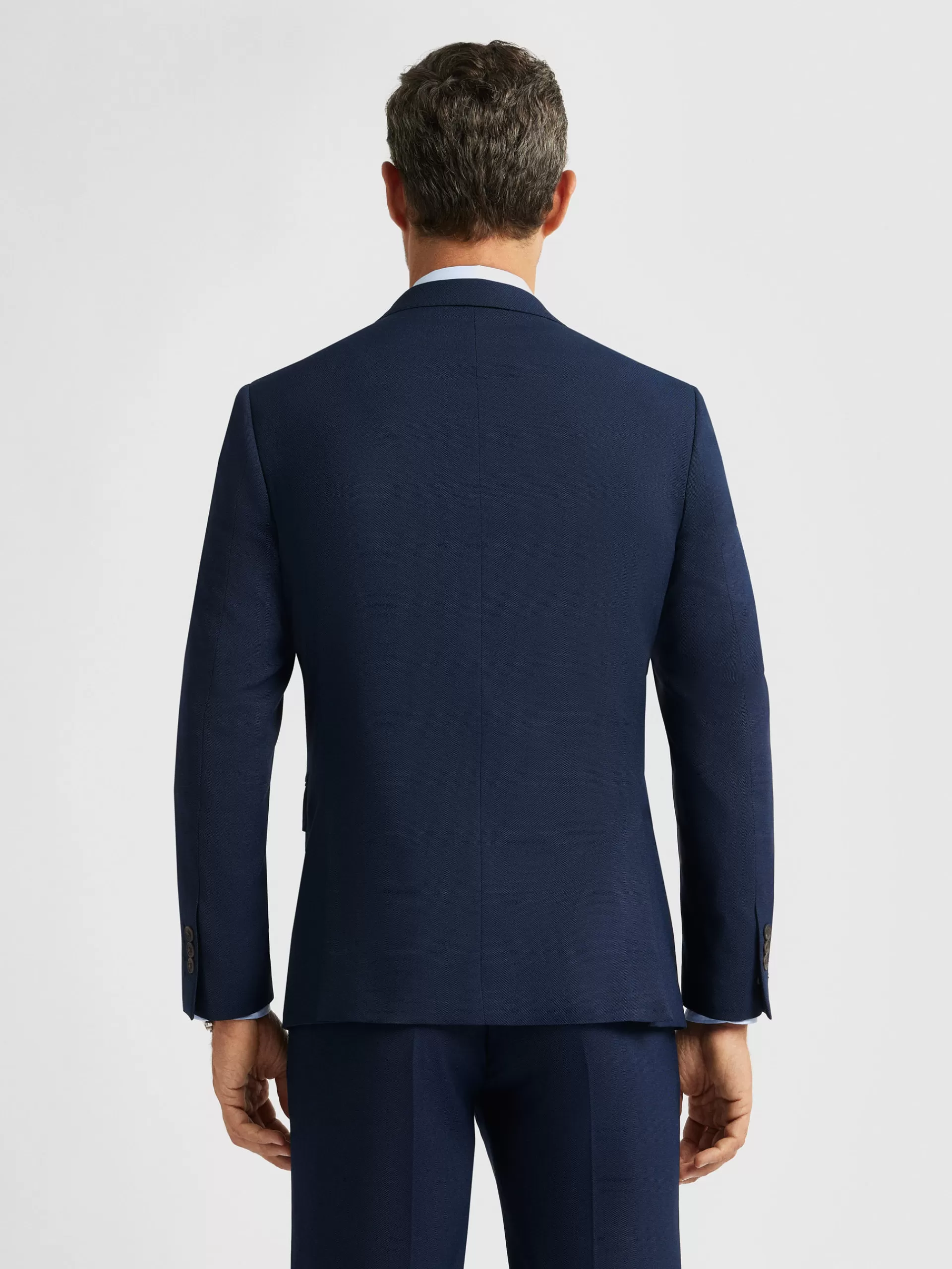 Americana con cuello y solapa confeccionado en tejido de ojo de perdiz. Cuenta con botonadura sencilla en el centro dela…