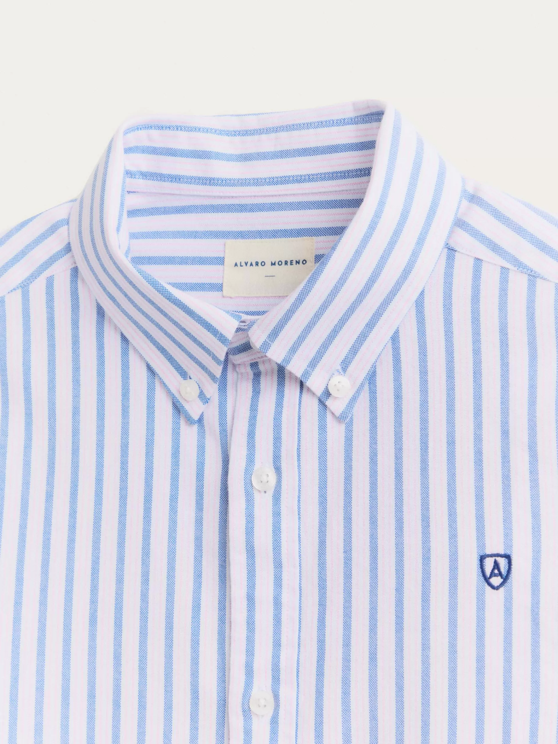 Camisa a rayas confeccionada en algodón. Cuenta con cuello clásico de botón, manga larga con puños simples y logo de la marca grabado en el frontal. Corte regular fit.