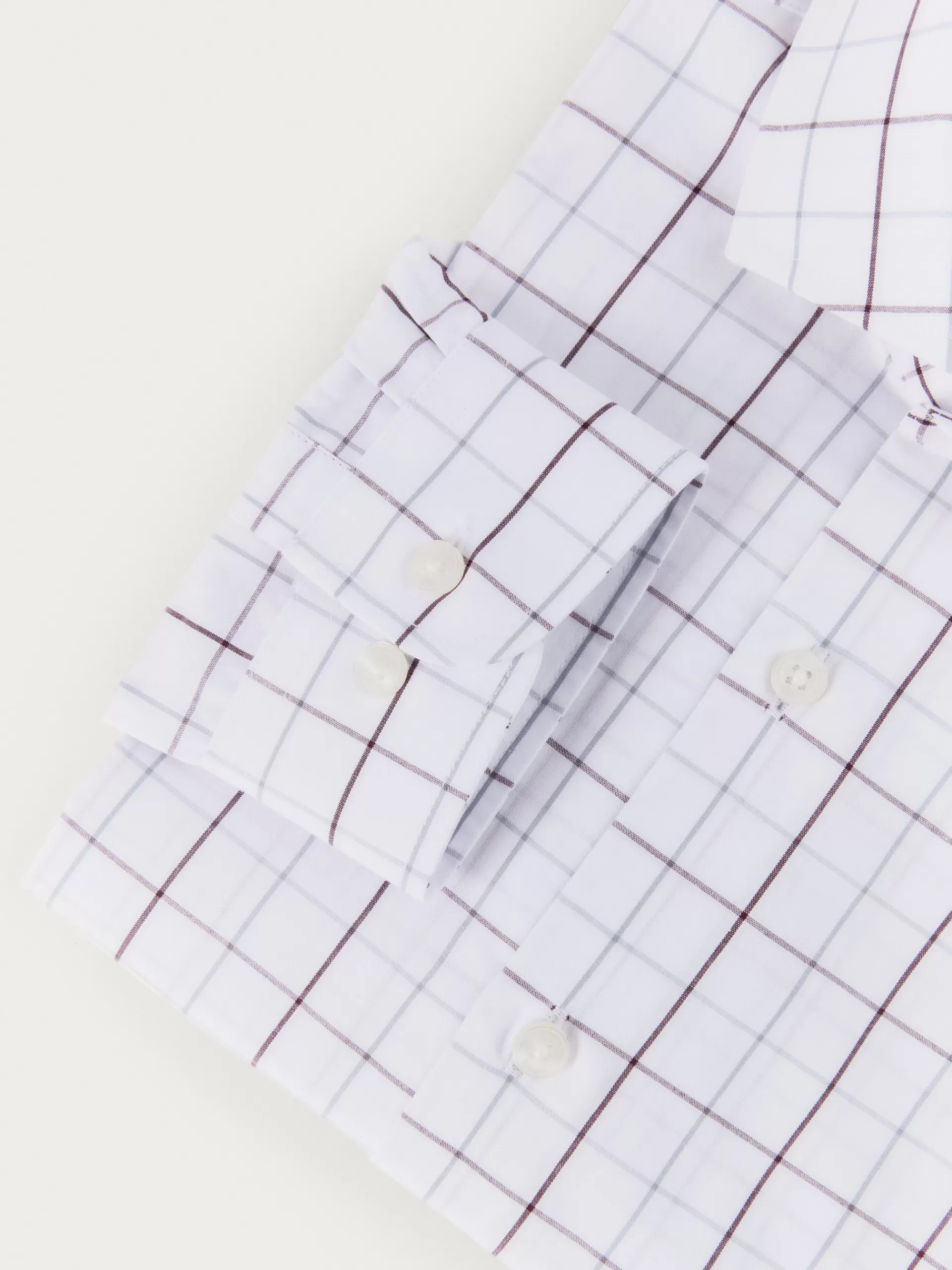 Camisa de vestir a cuadros confeccionada en algodón. Cuenta con cuello italiano, manga larga con puños simples y logo de la marca grabado en el frontal. Corte slim fit.