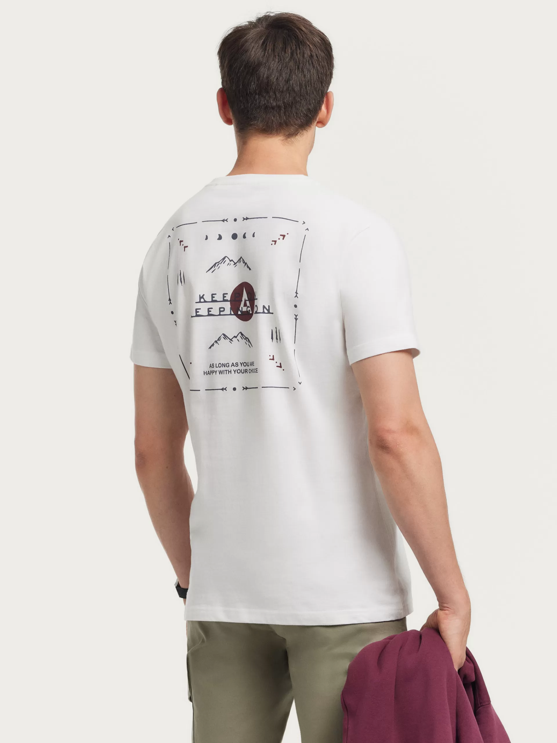 Camiseta con cuello redondo confeccionada en 100% algodón. Cuenta con estampado personalizado en la espalda y en el frontal, manga corta y etiqueta canvas en el lateral. Corte regular fit.