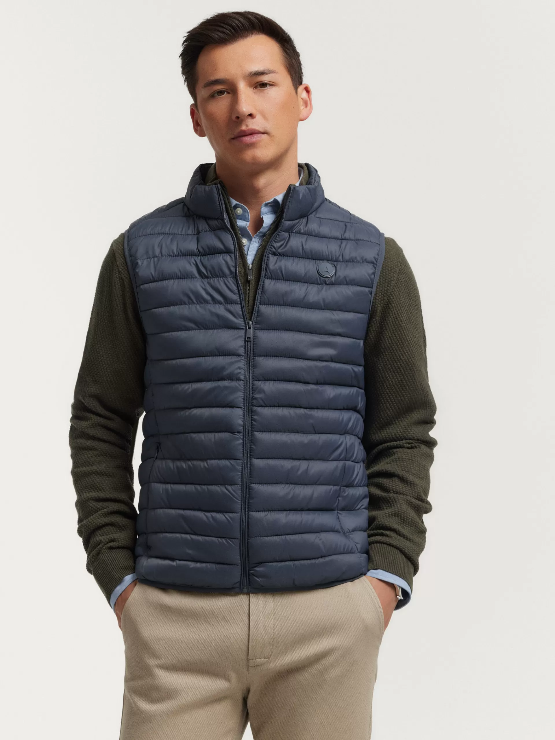 Chaleco acolchado con cuello subido y cierre central mediante cremallera, dos bolsillos a la altura de la cintura y logo…