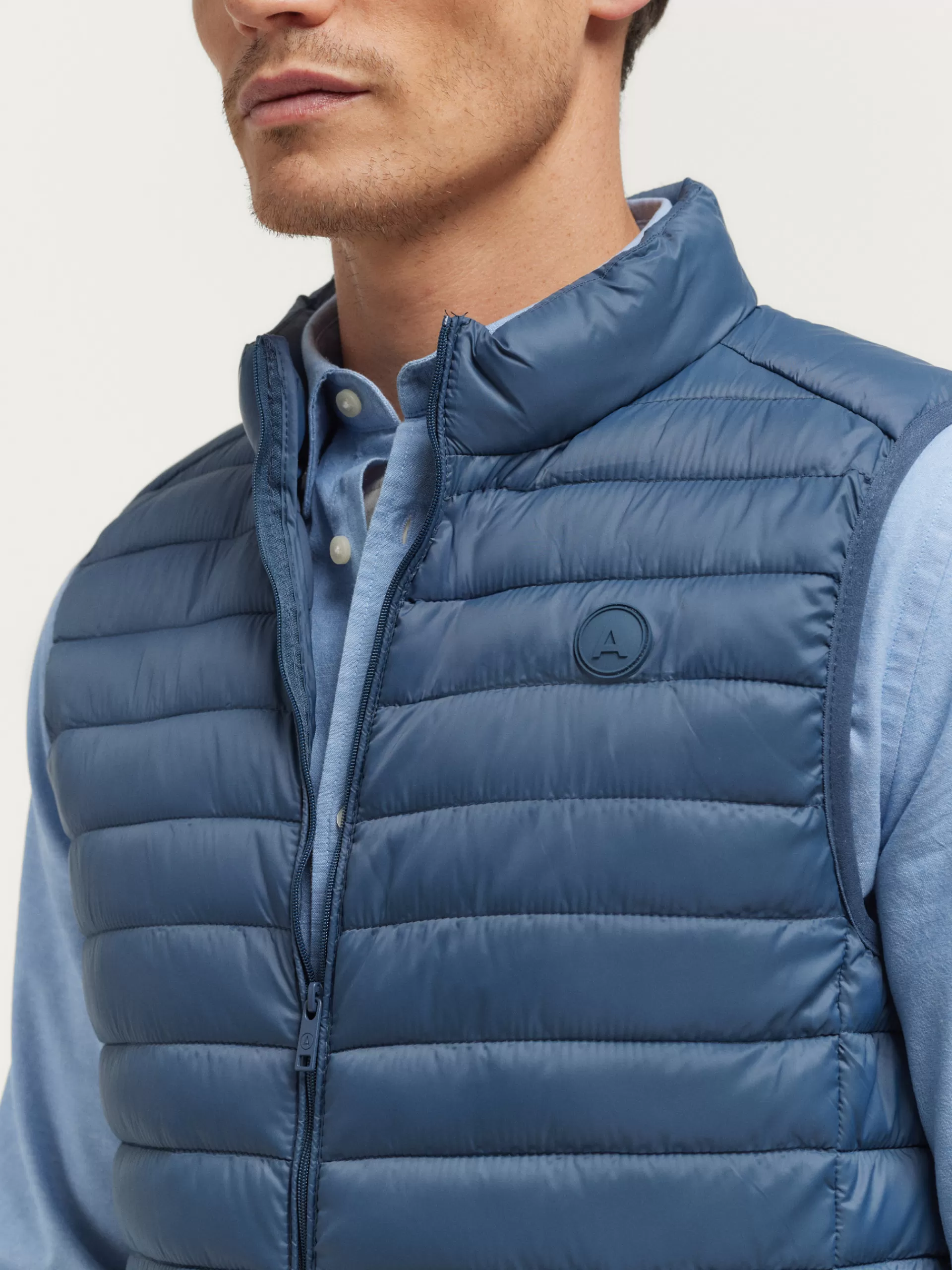 Chaleco acolchado con cuello subido y cierre central mediante cremallera, dos bolsillos a la altura de la cintura y logo…
