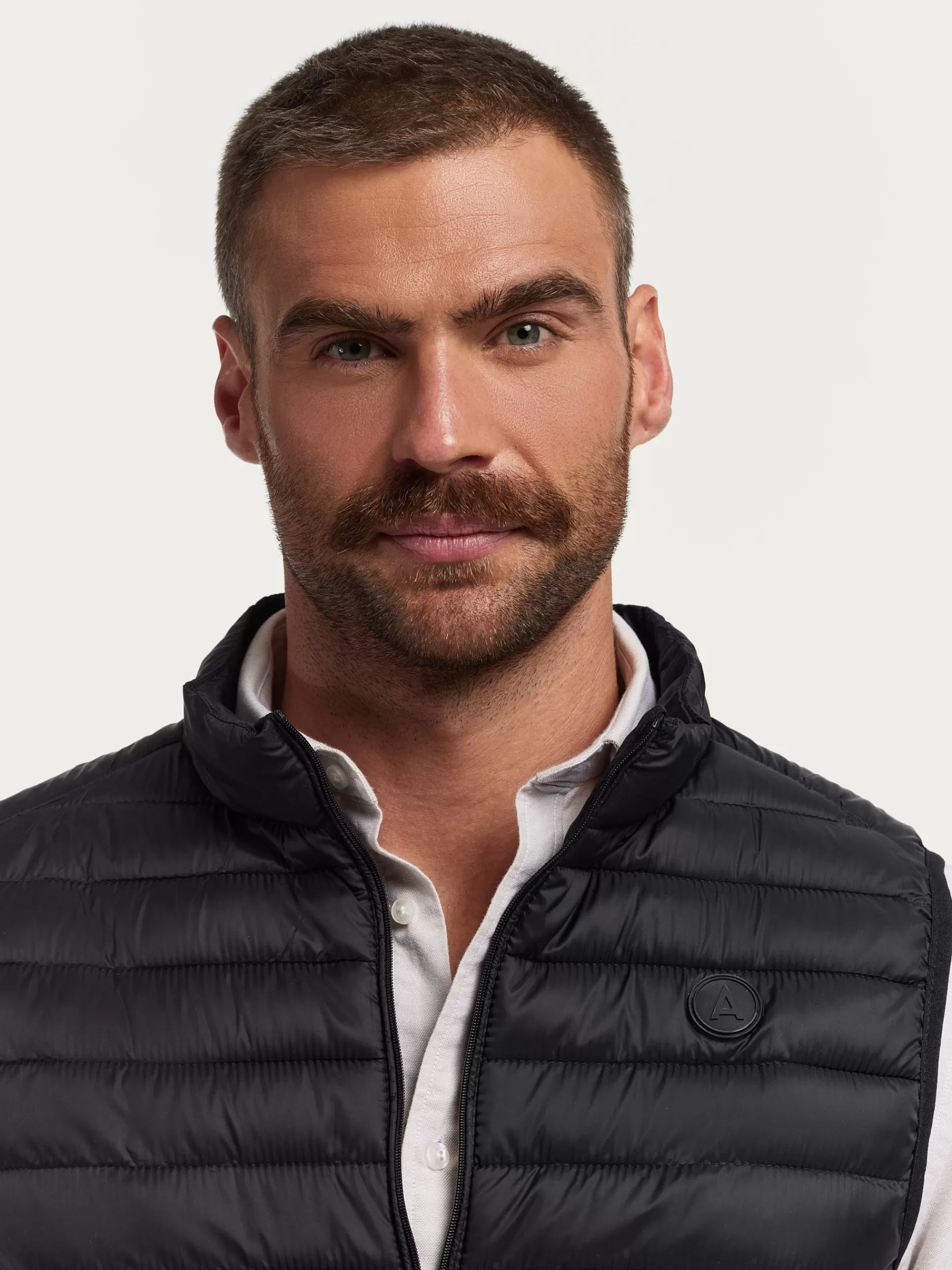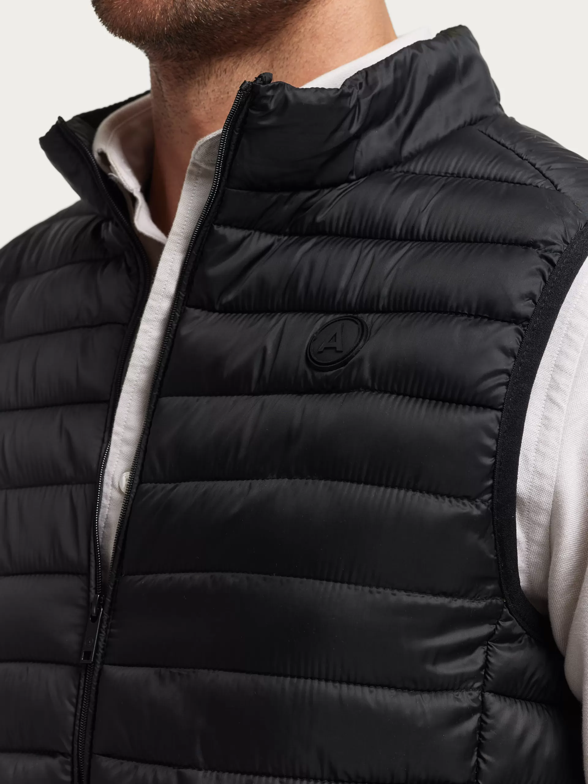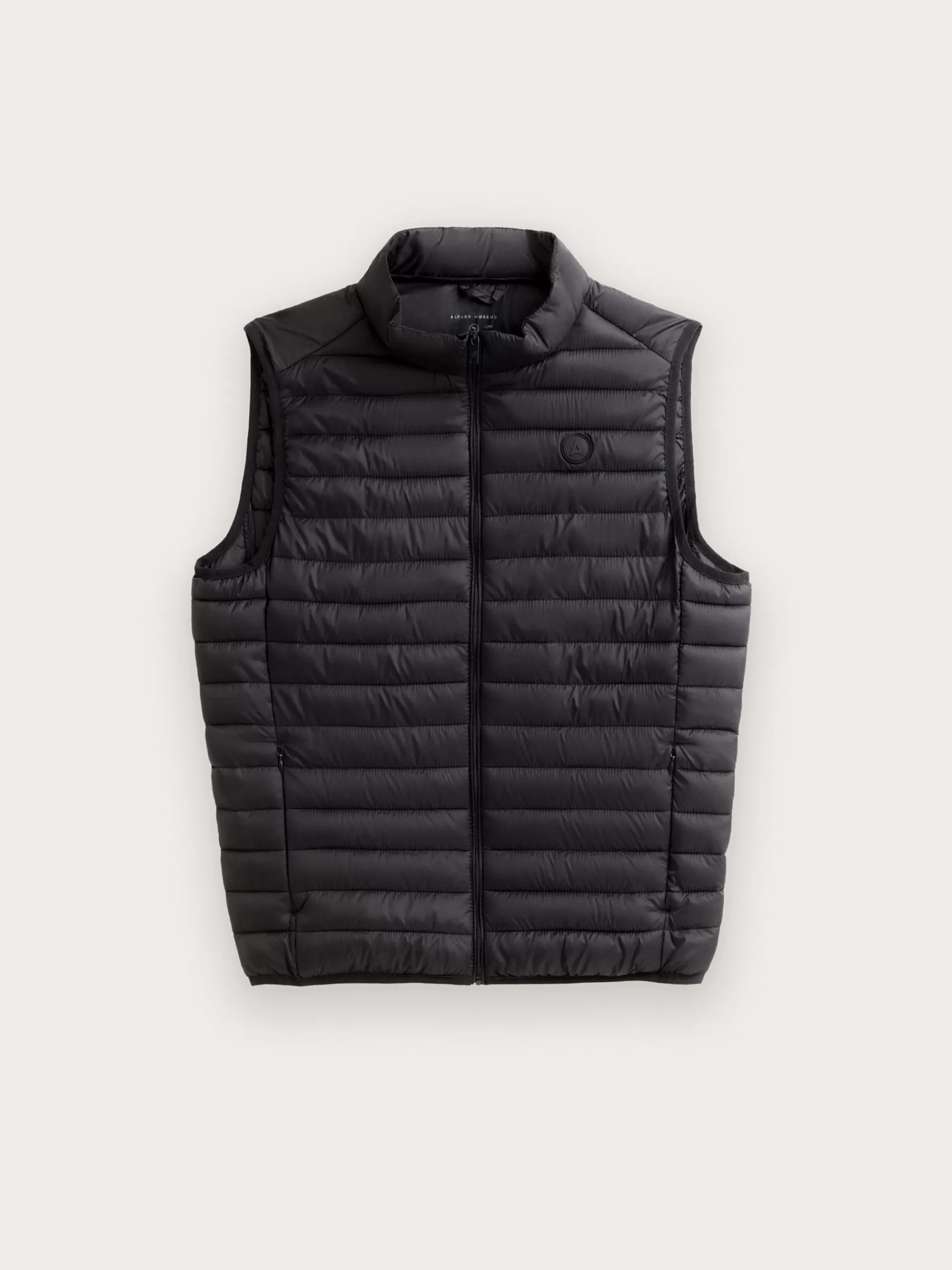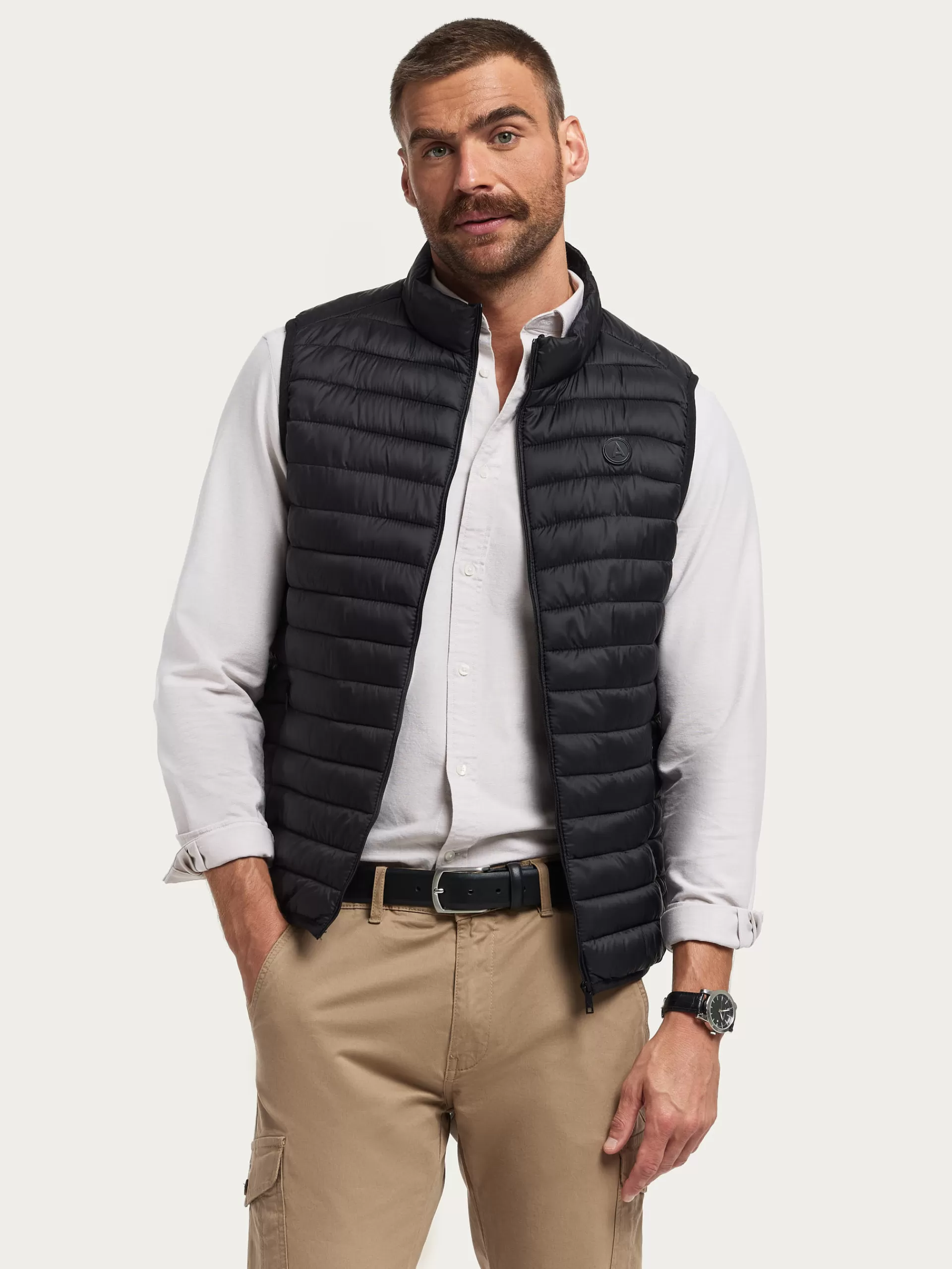 Chaleco acolchado con cuello subido y cierre central mediante cremallera, dos bolsillos a la altura de la cintura y logo…