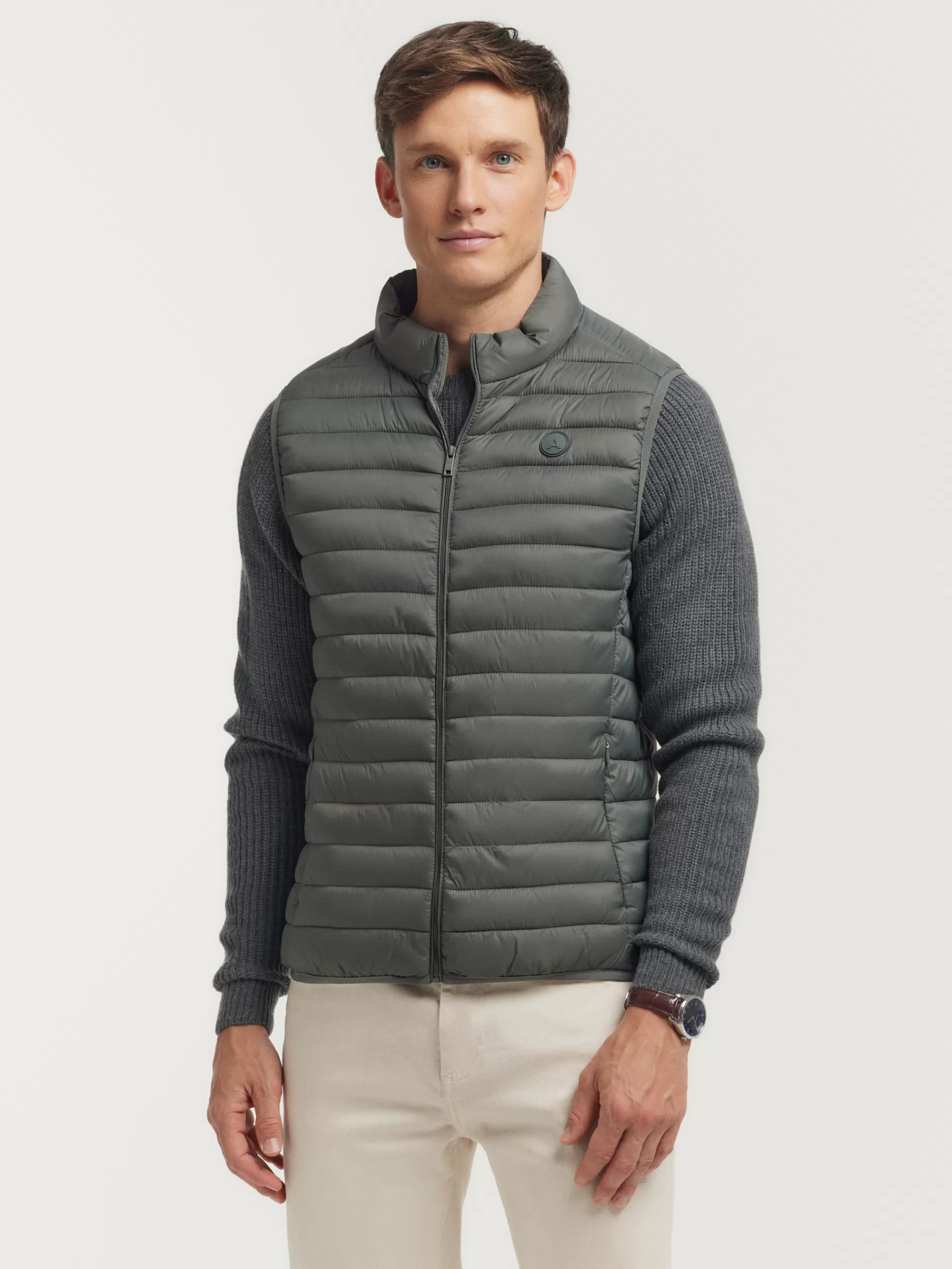 Chaleco acolchado con cuello subido y cierre central mediante cremallera, dos bolsillos a la altura de la cintura y logo…