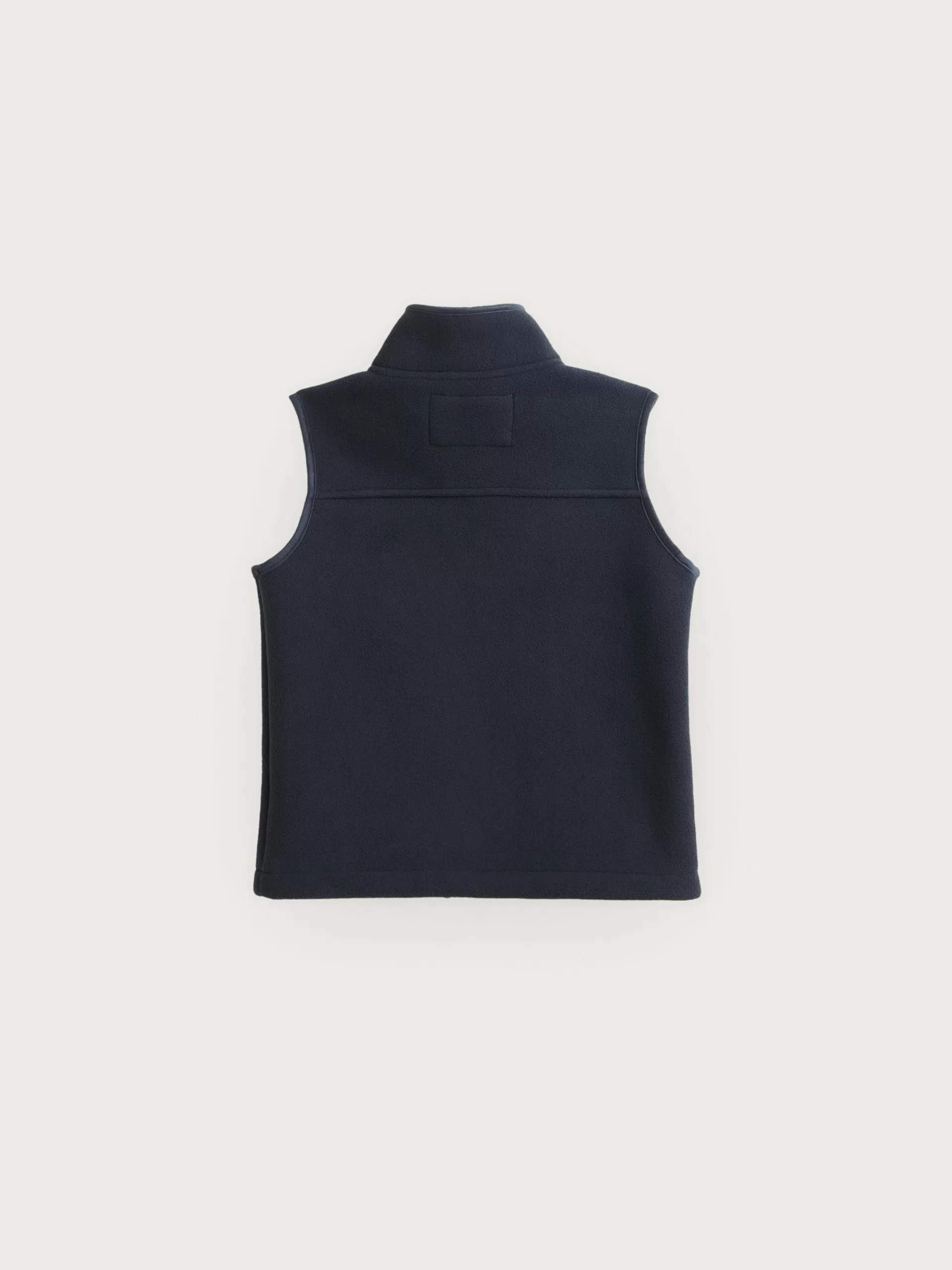 Chaleco confeccionado en tejido avivado en antelina en su exterior y forrado en su interior en borreguillo. Cuenta con cierre central mediante cremallera personalizada, dos bolsillos en su exterior y logo grabado en su frontal. Corte regular fit.