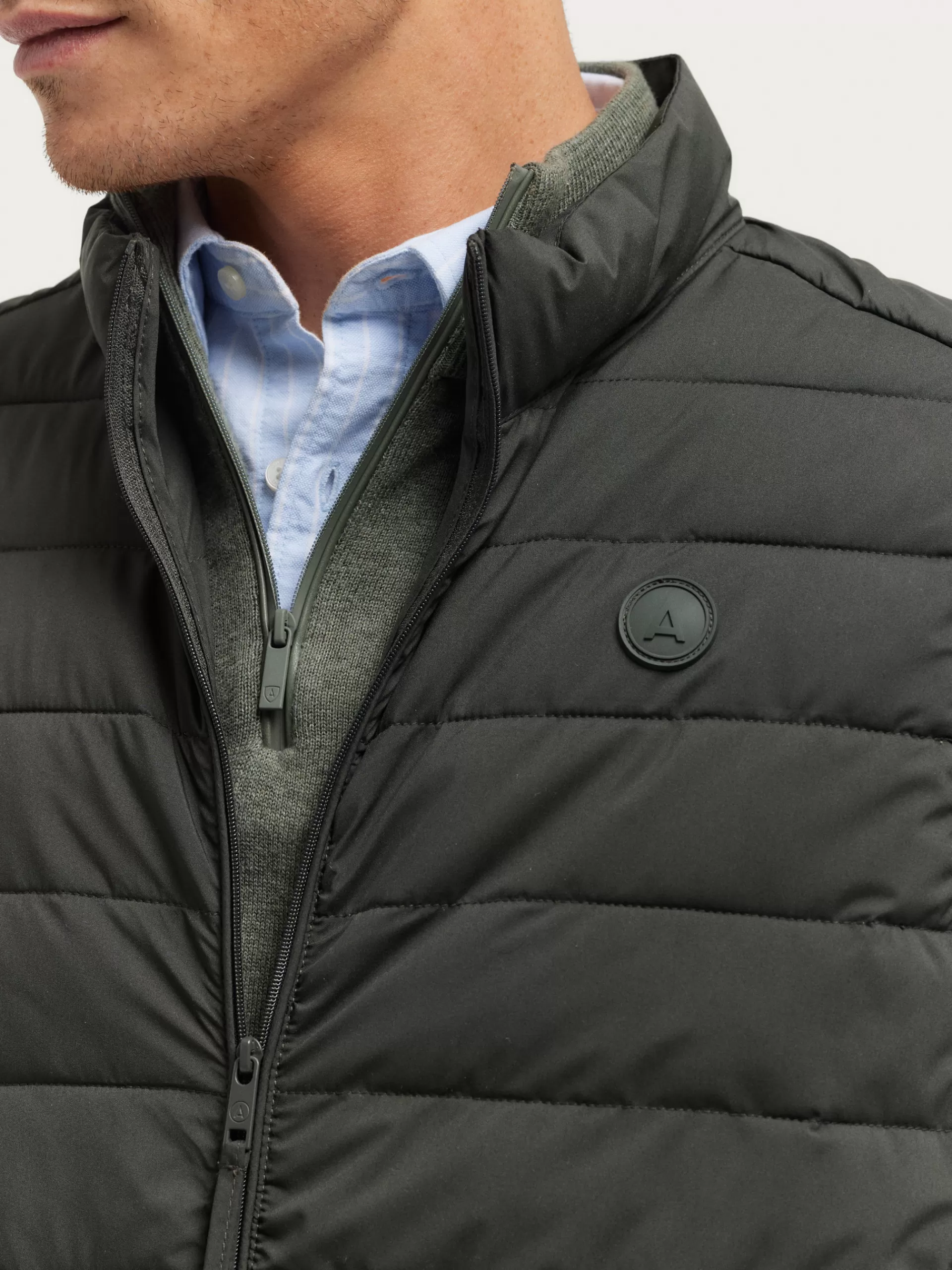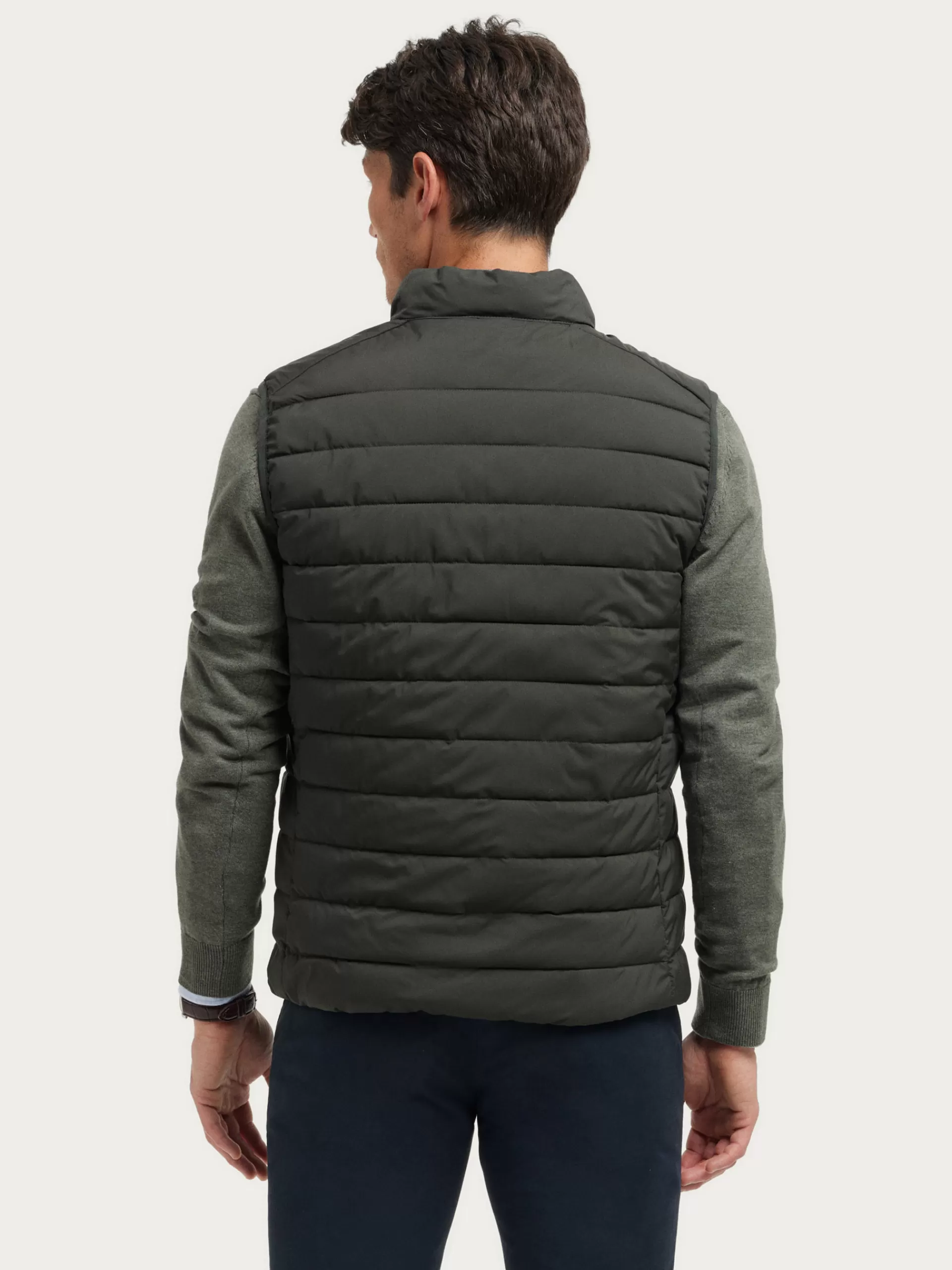 Chaleco con cierre central mediante cremallera y dos bolsillos en la cintura. Cuenta con cuello subido, logo grabado en el frontal y sisa y cintura en punto elástico. Corte regular fit.