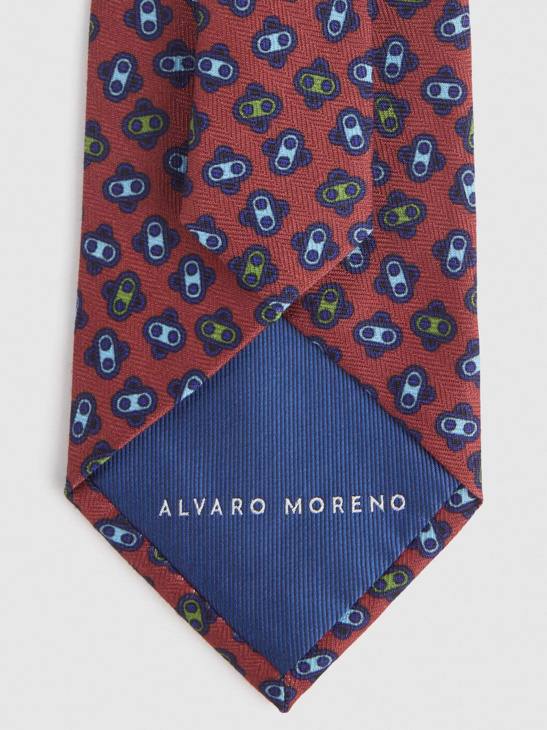 Corbata con diseño estampado personalizado confeccionada en 100% poliéster. Cuenta con el logo de la marca grabado en el interior.