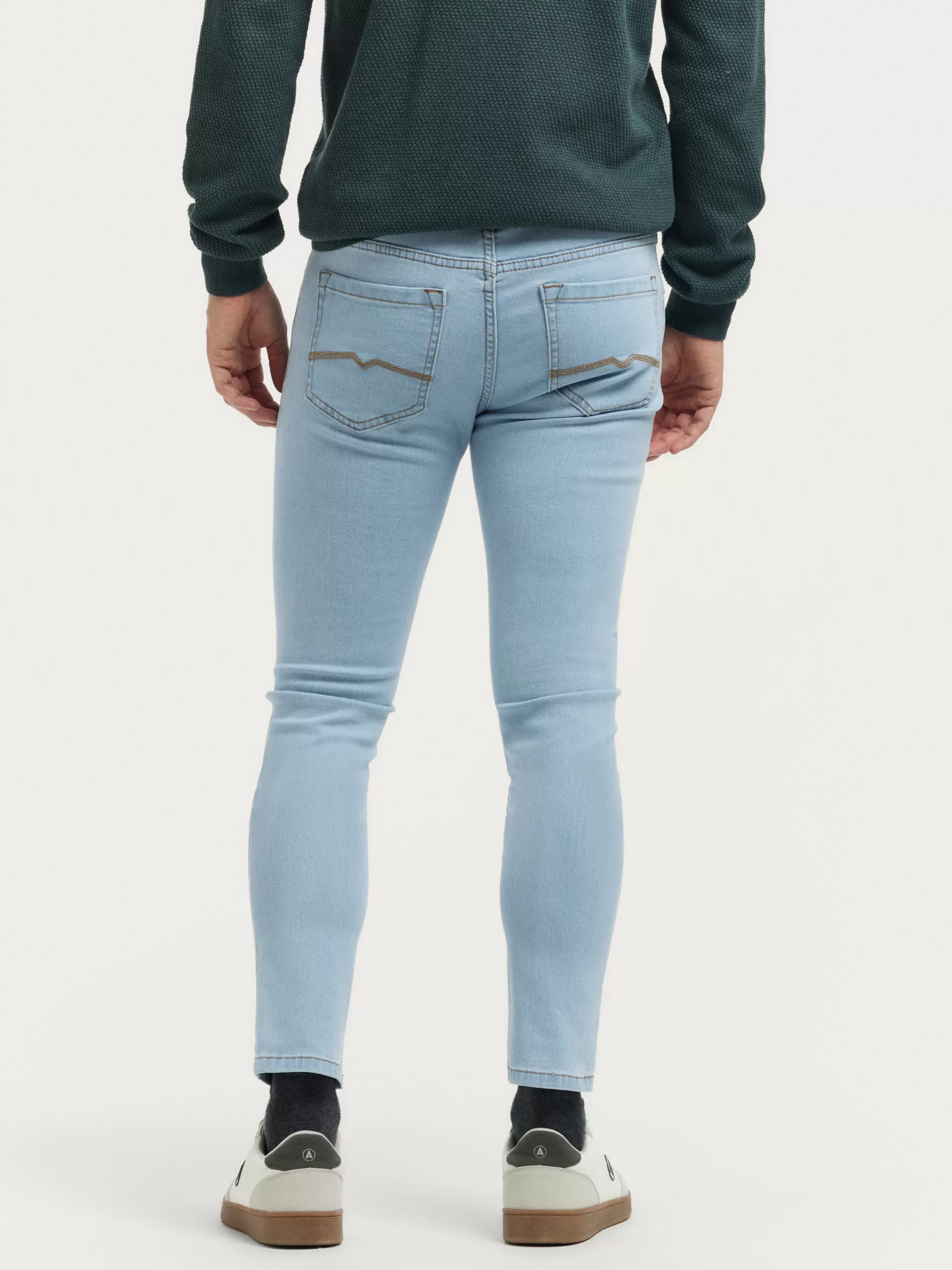 Pantalón denim de corte super skinny fit con cinco bolsillos y cierre central mediante botón y cremallera, pespuntes e…