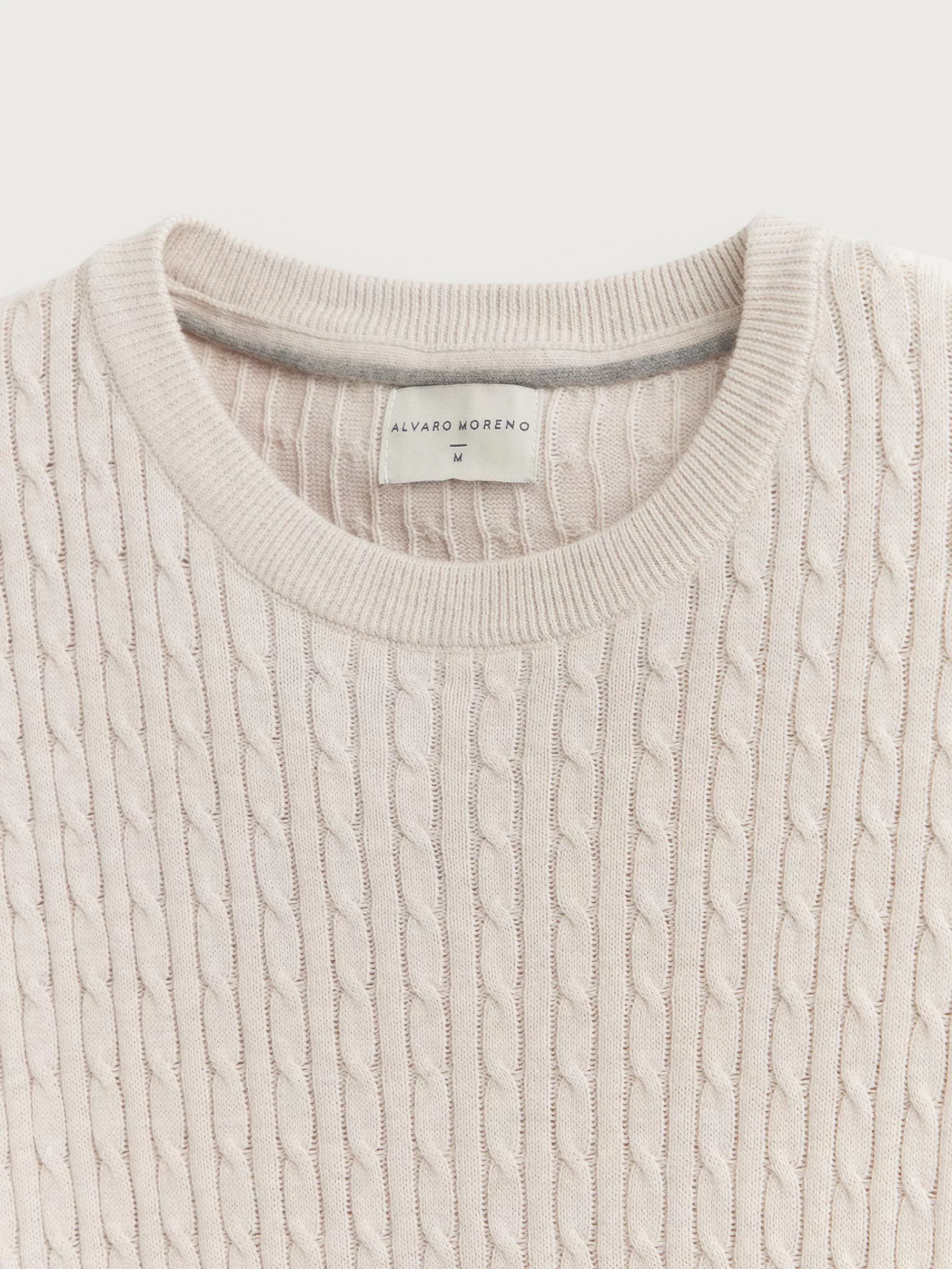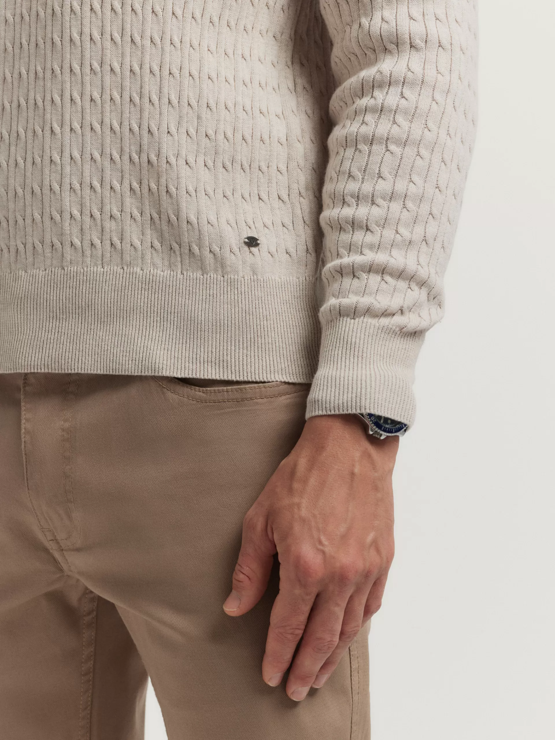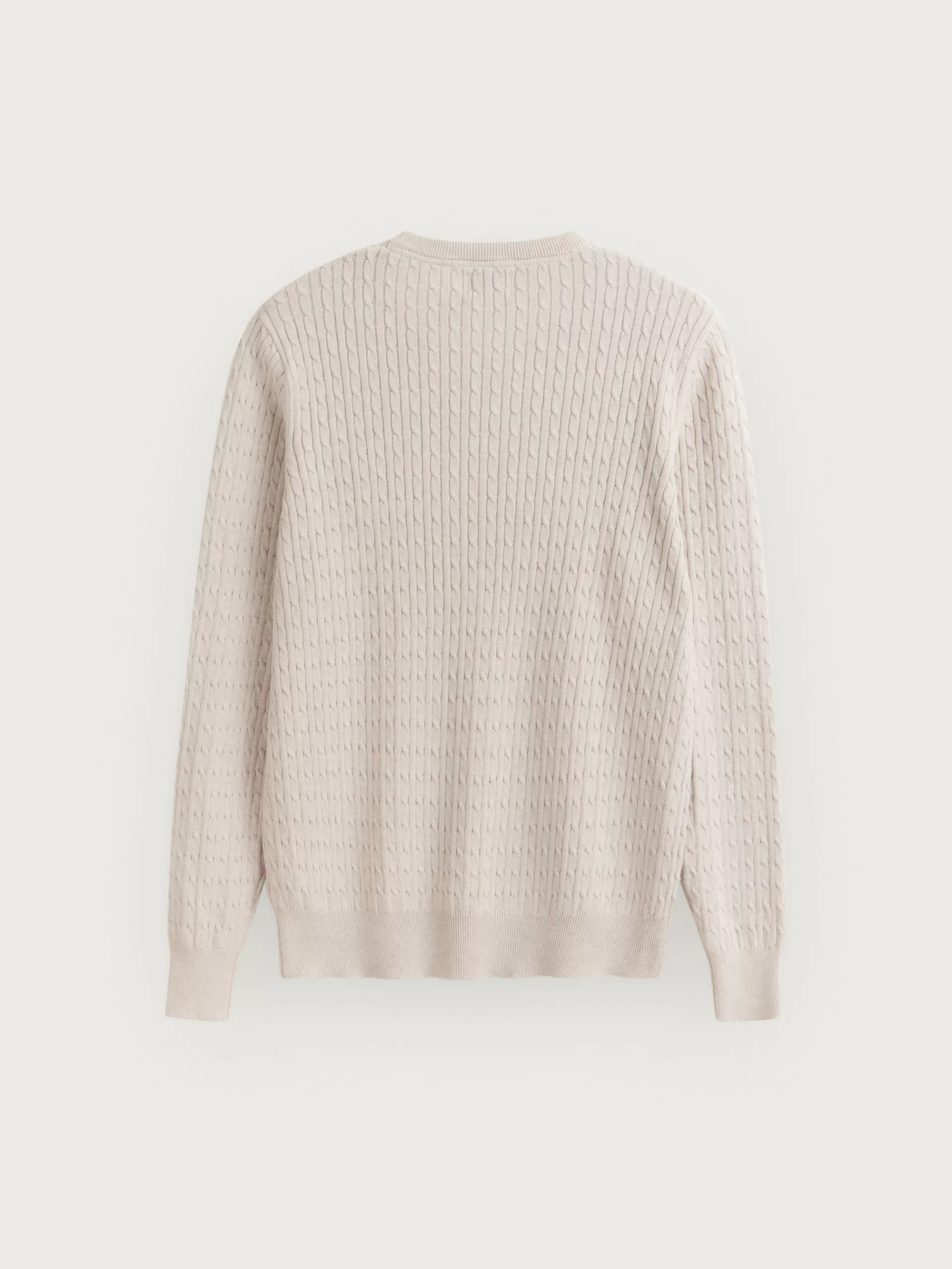 Jersey con estructura estilo ochos confeccionado en algodón. Cuenta con cuello redondo, manga larga y detalle metálico personalizado en el bajo. Cuello, puños y bajo en acabado ribeteado. Corte regular fit.