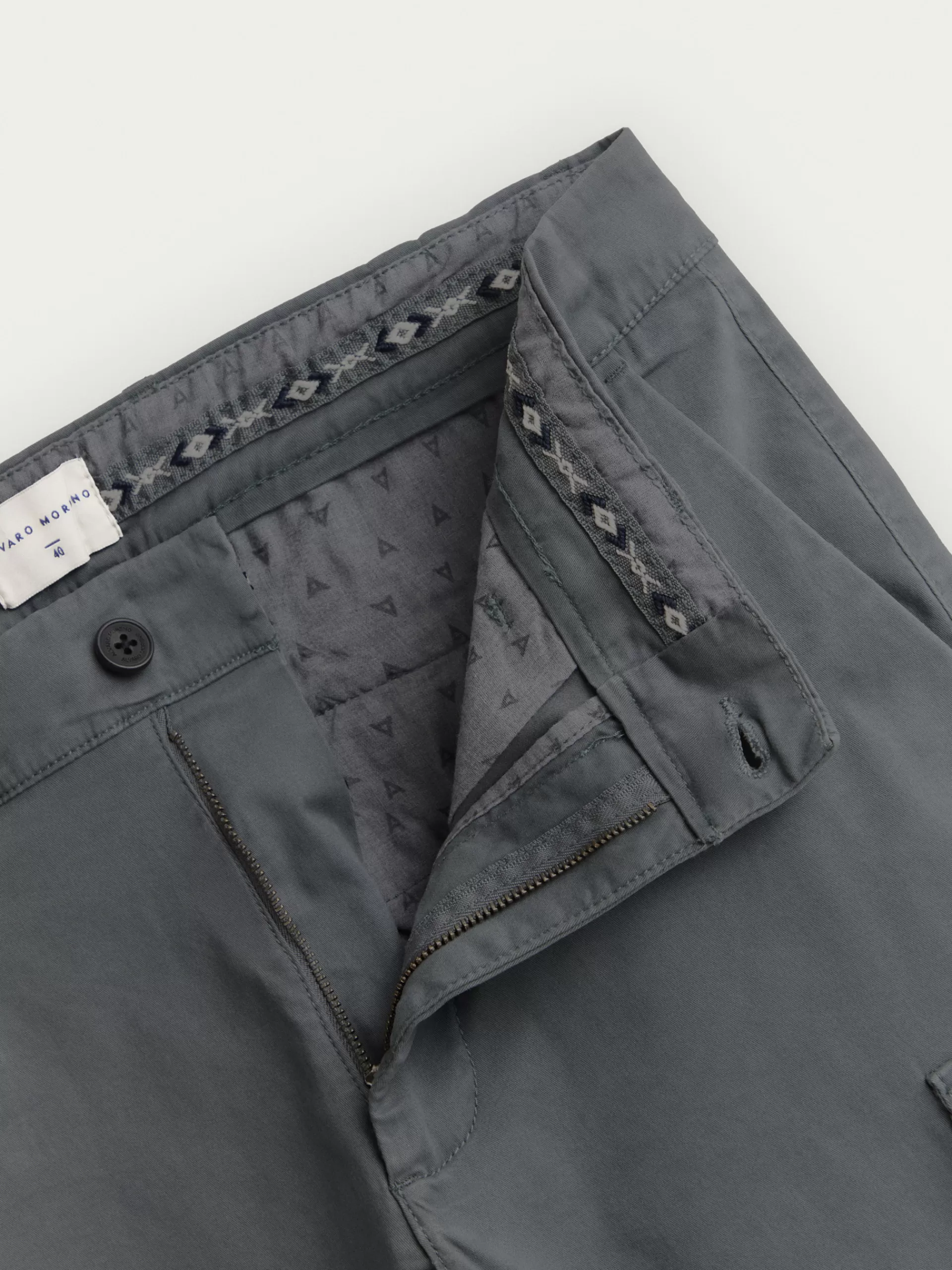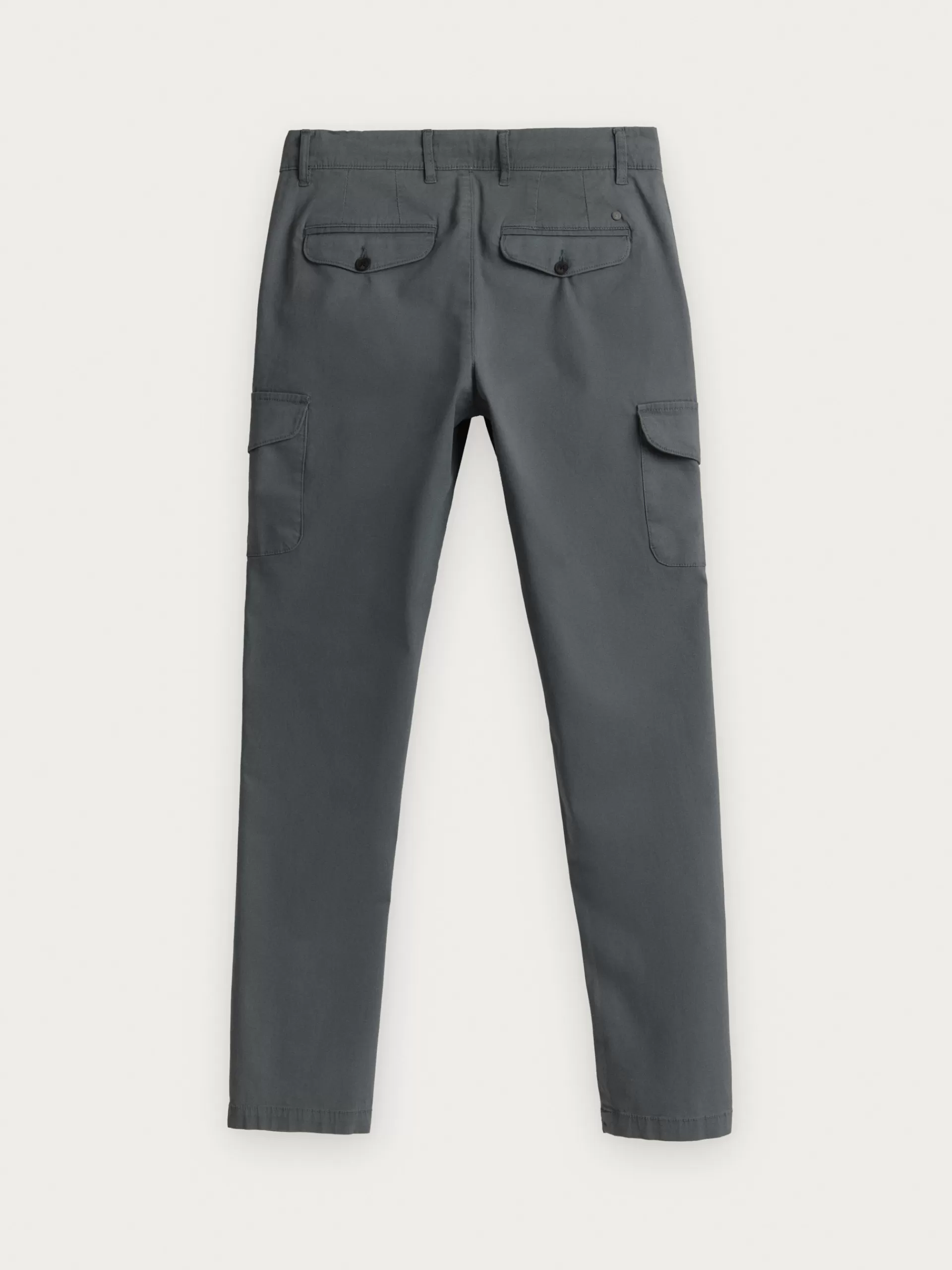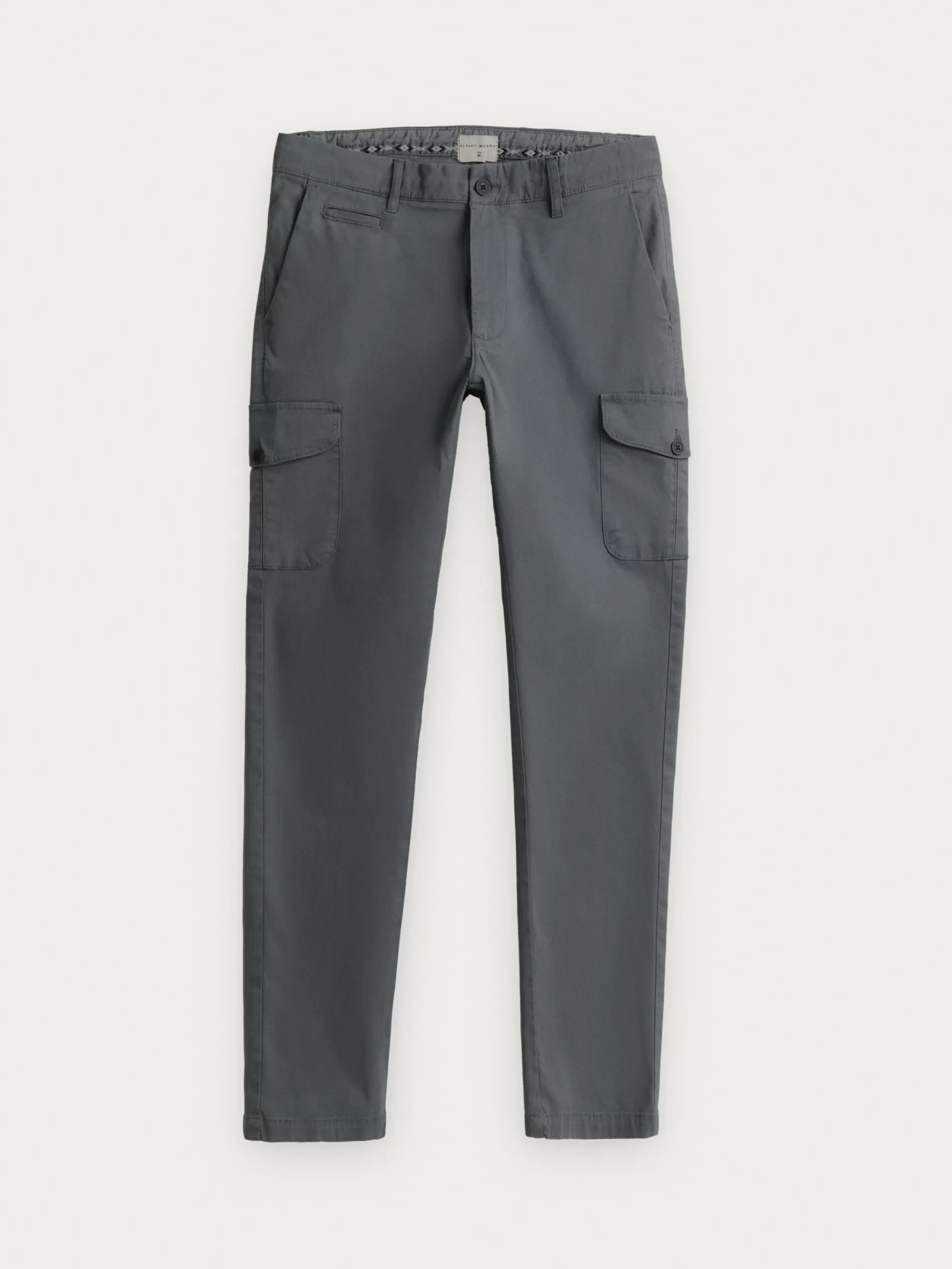 Pantalón cargo con cierre central mediante botón y cremallera. Dos bolsillos laterales y dos más bajos con cierre med…