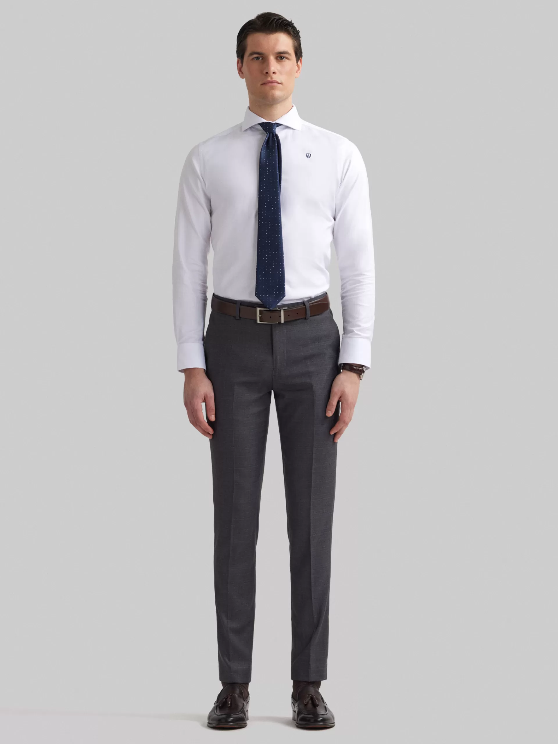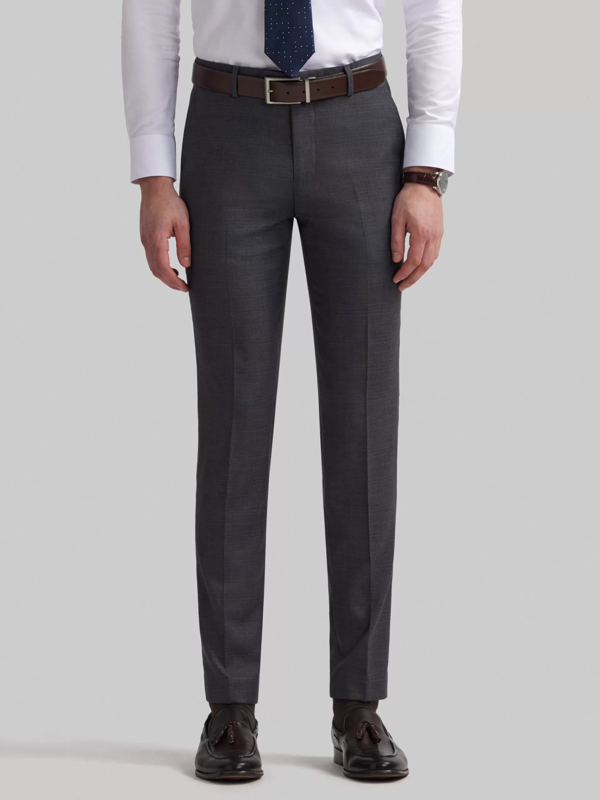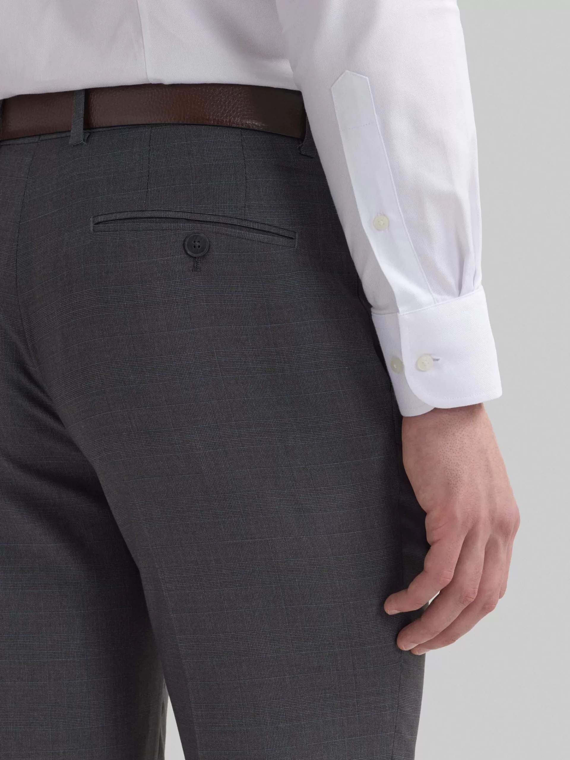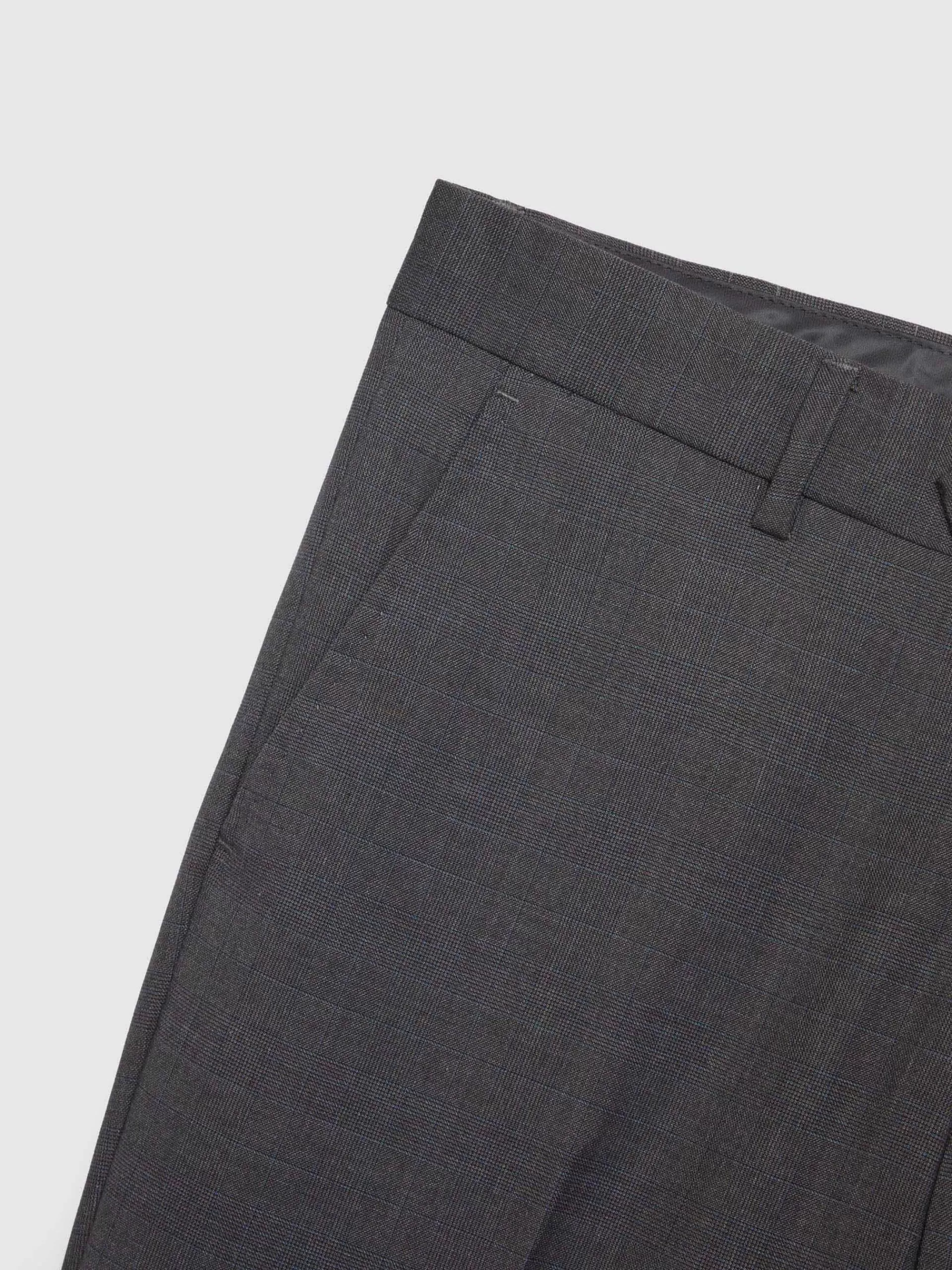 Pantalón en tejido gales que cuenta con cierre frontal de cremallera y botones personalizados. Dos bolsillos abiertos e…