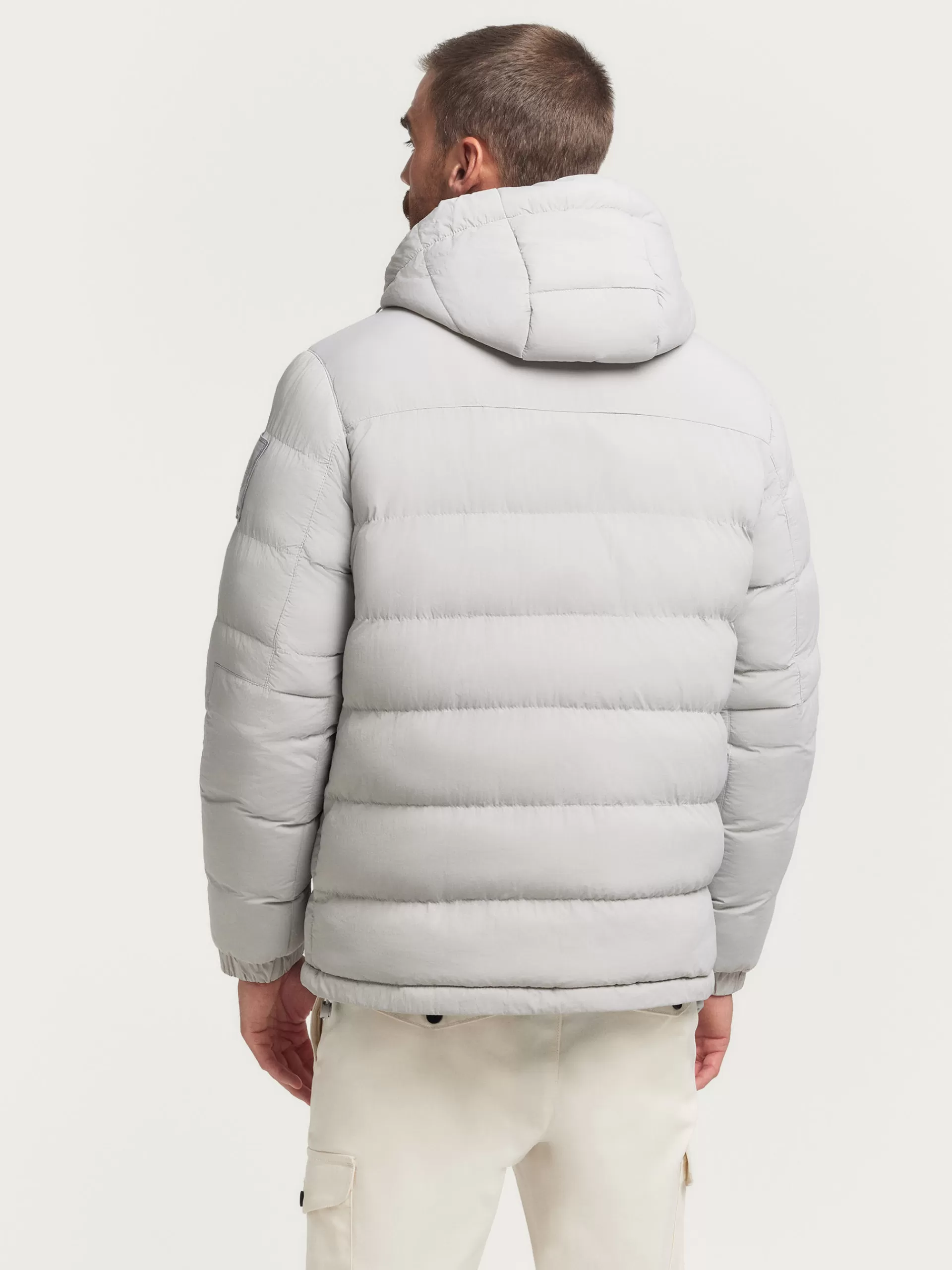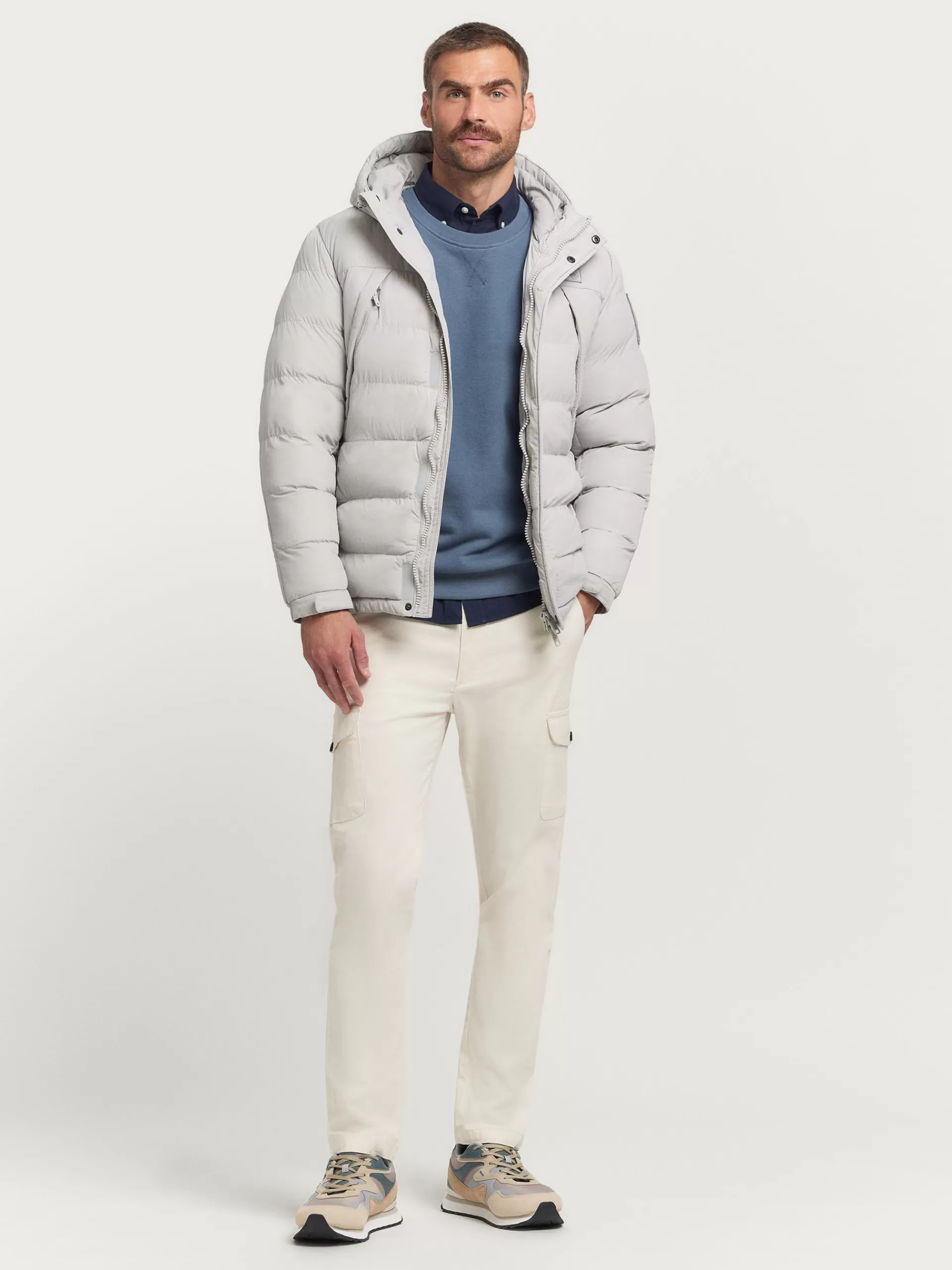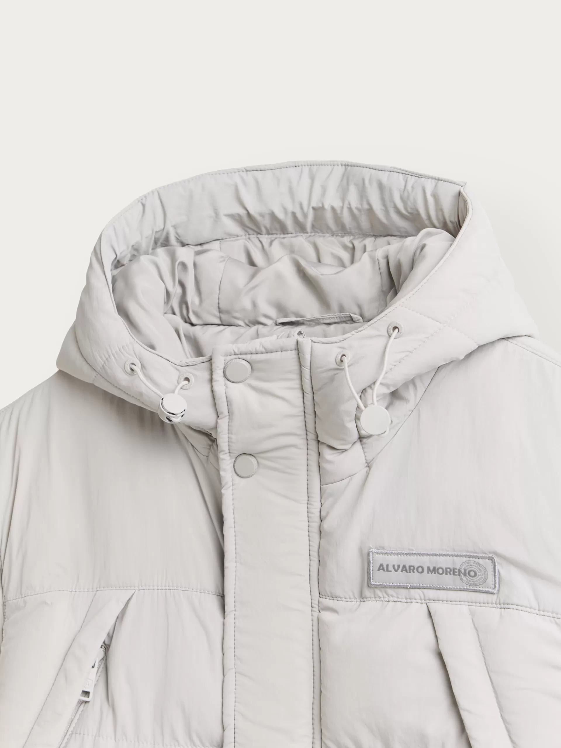 Parka acolchada con gorro ajustable y detalles personalizados en una de las mangas y a la altura del pecho. Cierre central mediante doble cremallera oculta por tapeta de velcro y botones a presión. Dos bolsillos amplios en el frontal y un bolsillo en su interior. Manga larga con puños ajustables. Corte regular fit.
