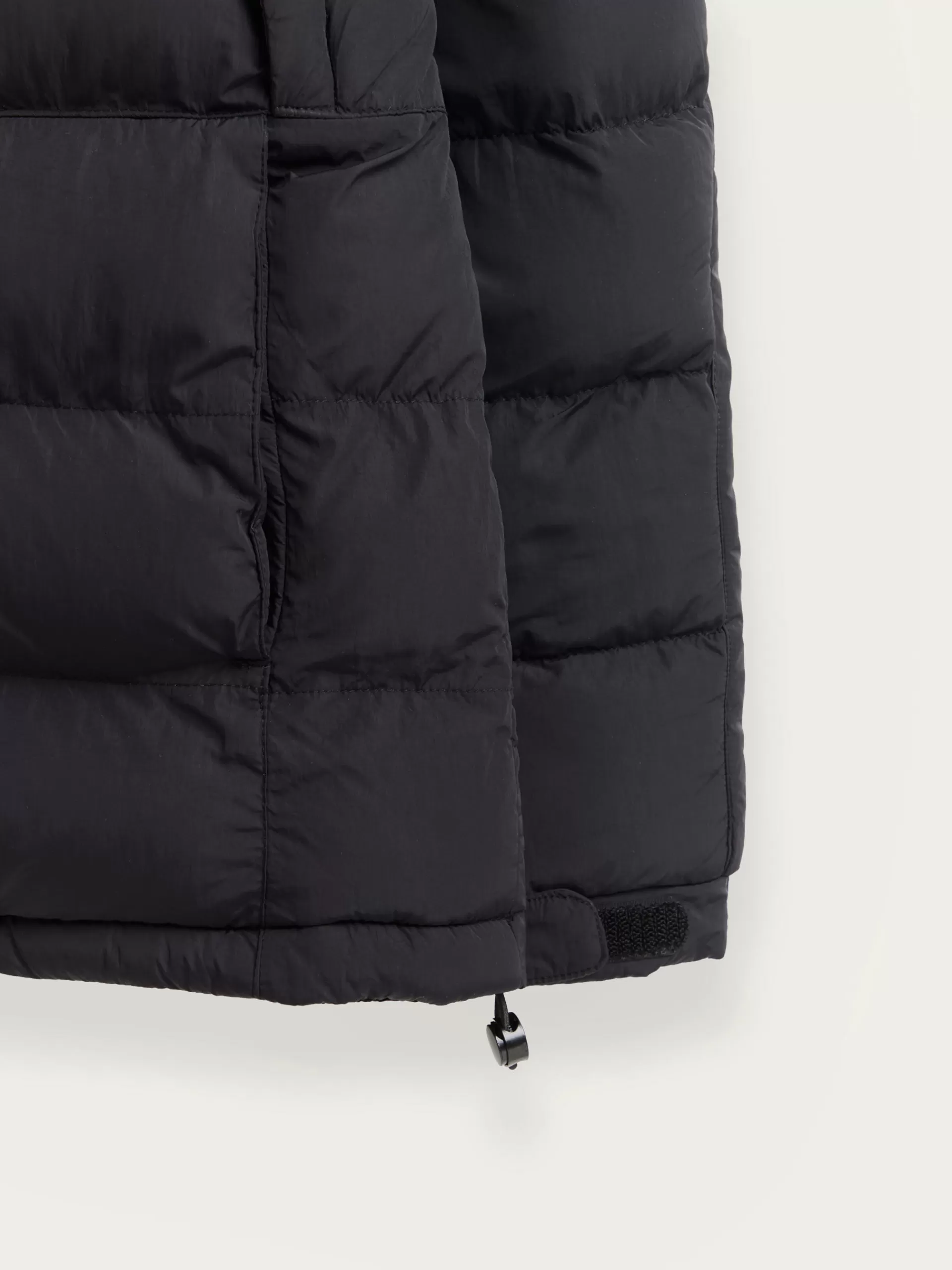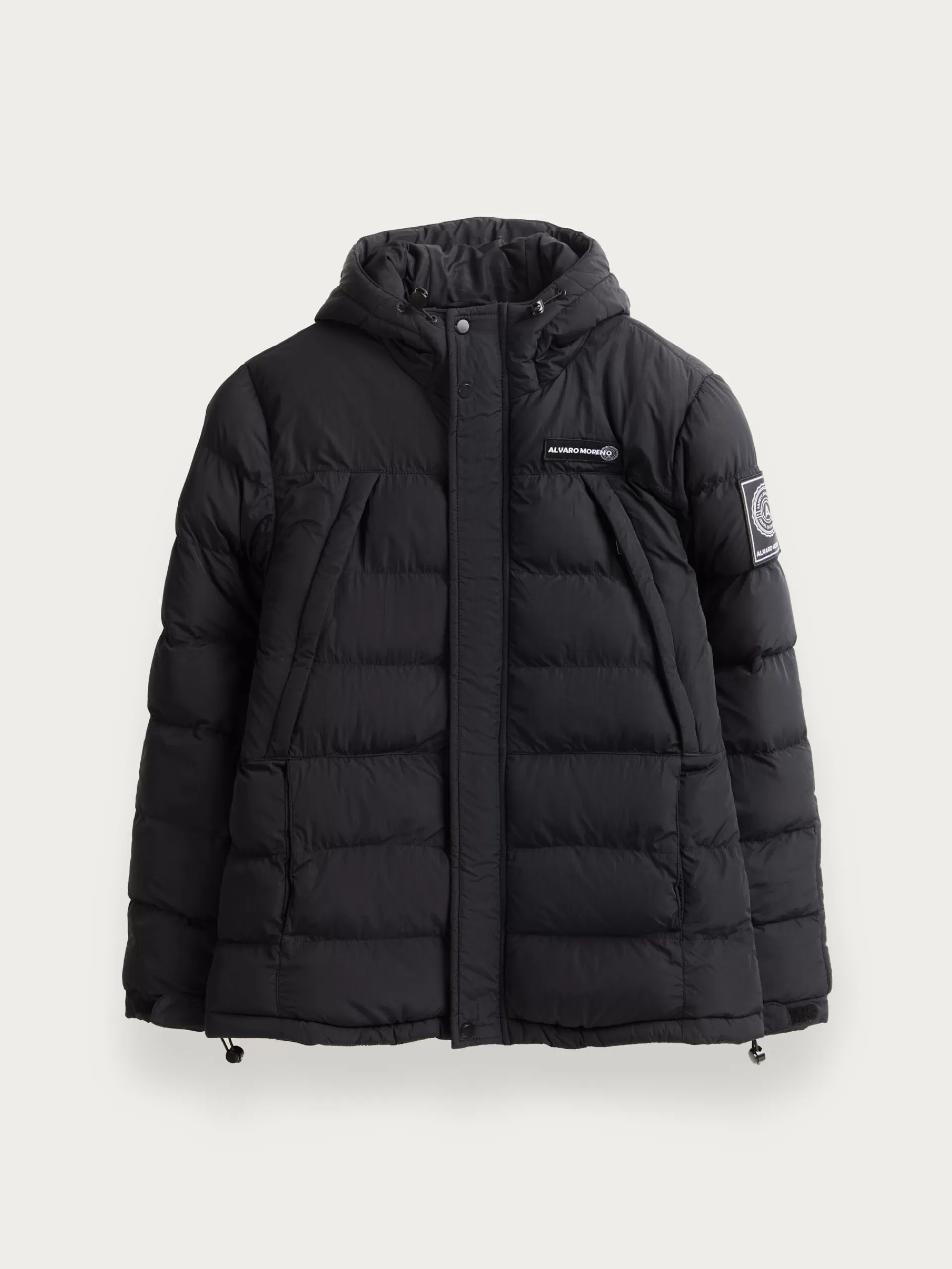 Parka acolchada con gorro ajustable y detalles personalizados en una de las mangas y a la altura del pecho. Cierre central mediante doble cremallera oculta por tapeta de velcro y botones a presión. Dos bolsillos amplios en el frontal y un bolsillo en su interior. Manga larga con puños ajustables. Corte regular fit.