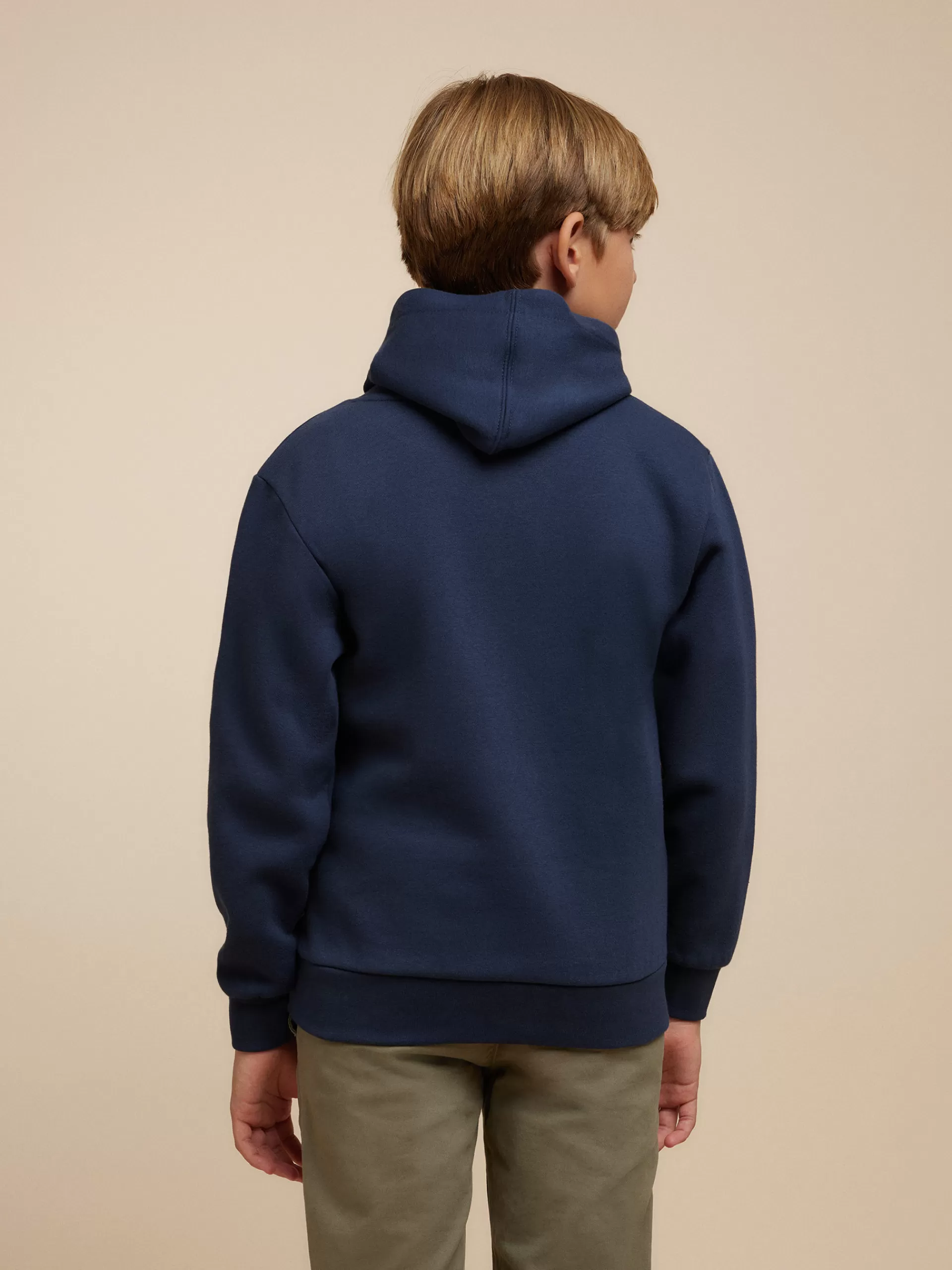 Sudadera con gorro ajustable mediante cordón al tono, estampado personalizado en el frontal y bolsillo estilo canguro. Puños y bajo en acabado elástico. Etiqueta canvas en el lateral. Corte regular fit.