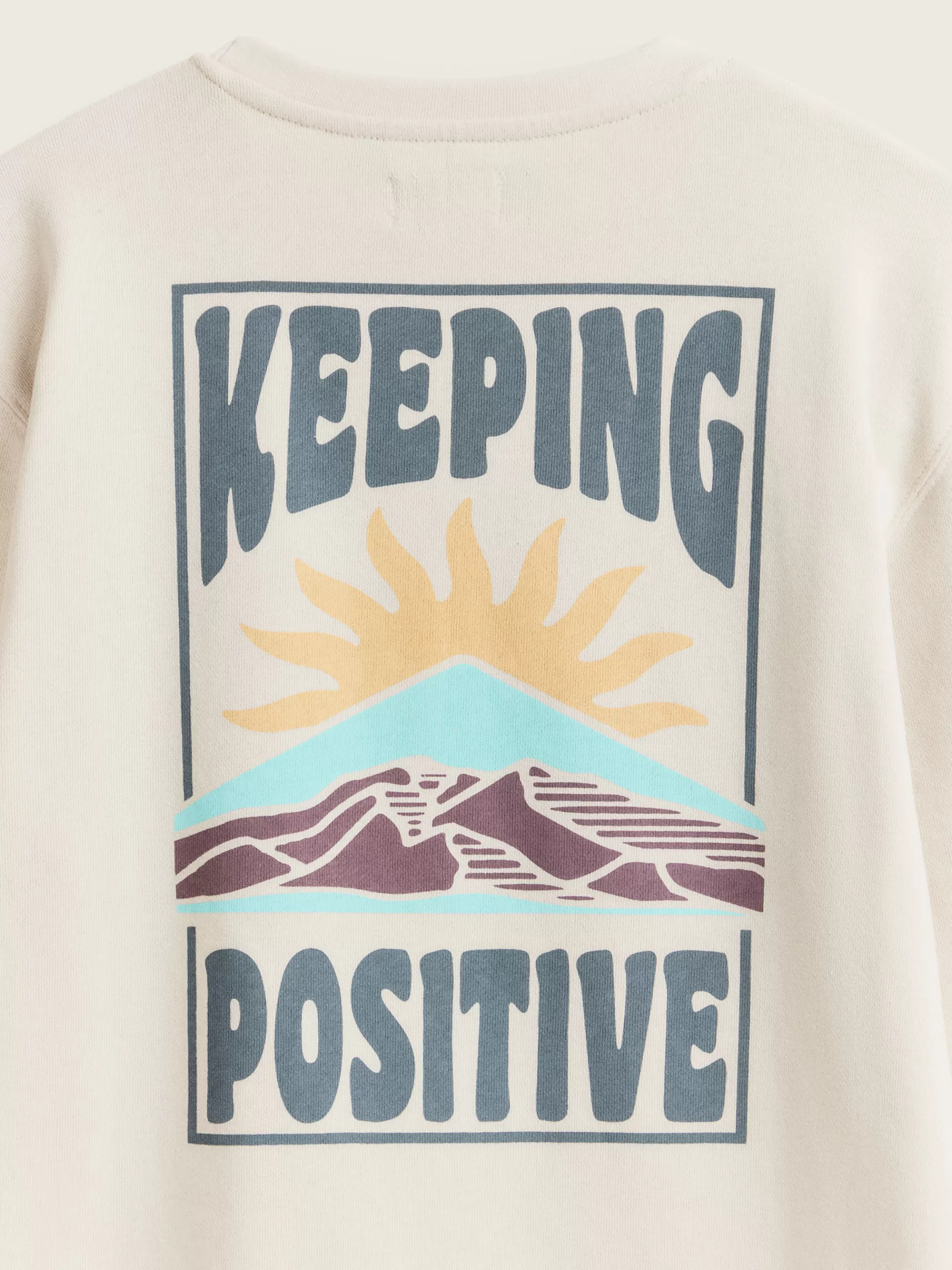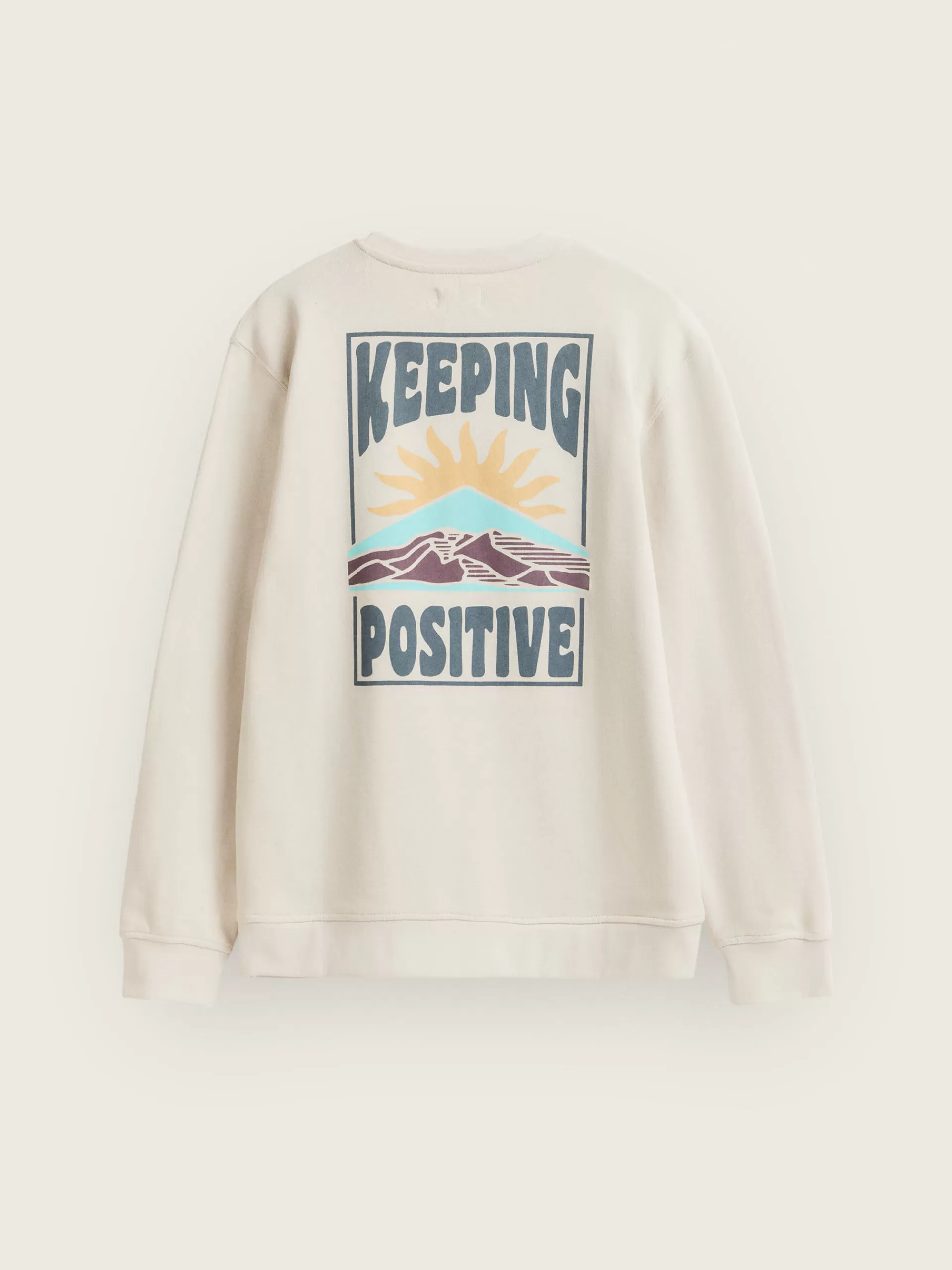 Sudadera con estampado personalizado en la parte trasera y logo de la marca grabado en el frontal a contraste. Cuello redondo, manga larga y puños y bajo en acabado elástico. Corte regular fit.