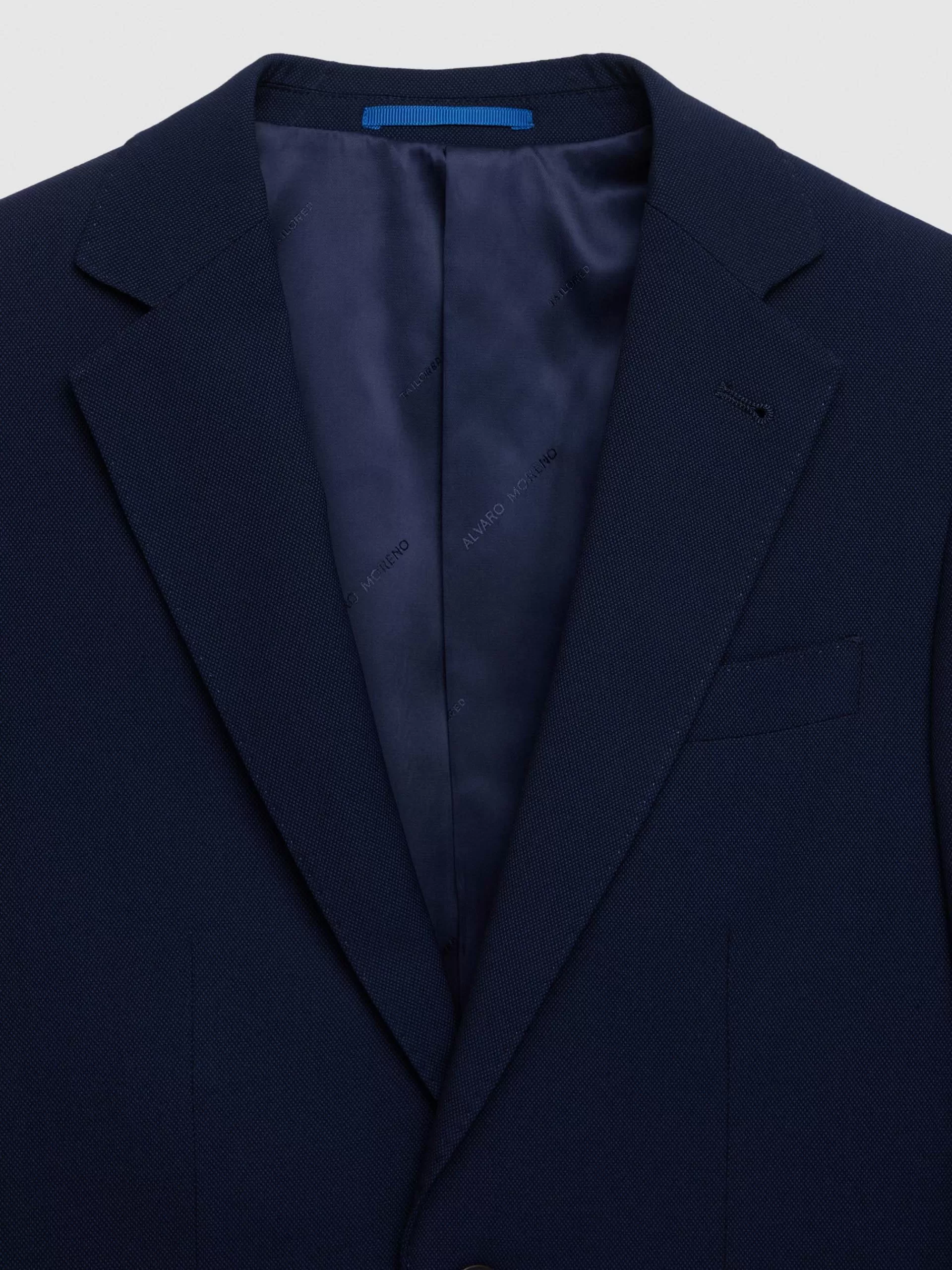 Americana con cuello y solapa confeccionado en tejido de ojo de perdiz. Cuenta con botonadura sencilla en el centro delantero con botones personalizados, dos bolsillos de solapa en la cintura y bolsillo a la altura del pecho. Manga con terminación de botones. Interior forrado y con bolsillos.