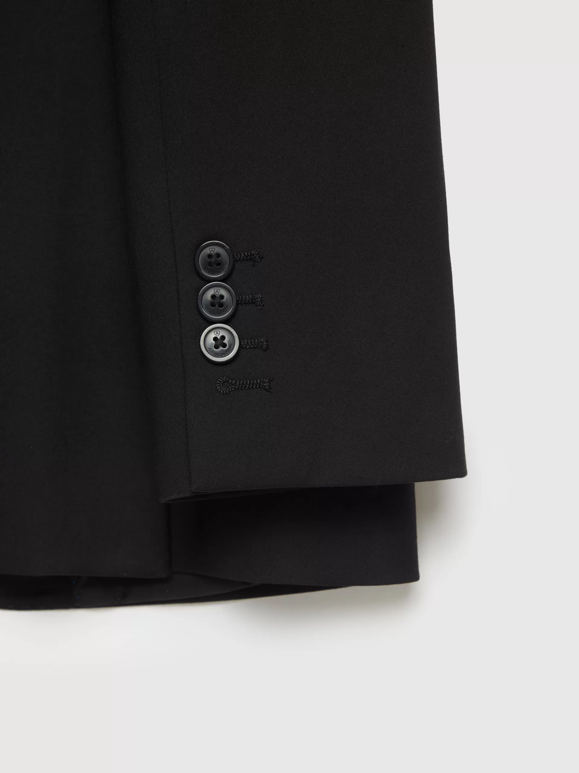 Americana de cierre central mediante dos botones con cuello y solapa. Bolsillo de ojal en el pecho, tres bolsillos de solapa en la cintura y puños con botones en su terminación. Interior forrado y con bolsillos.