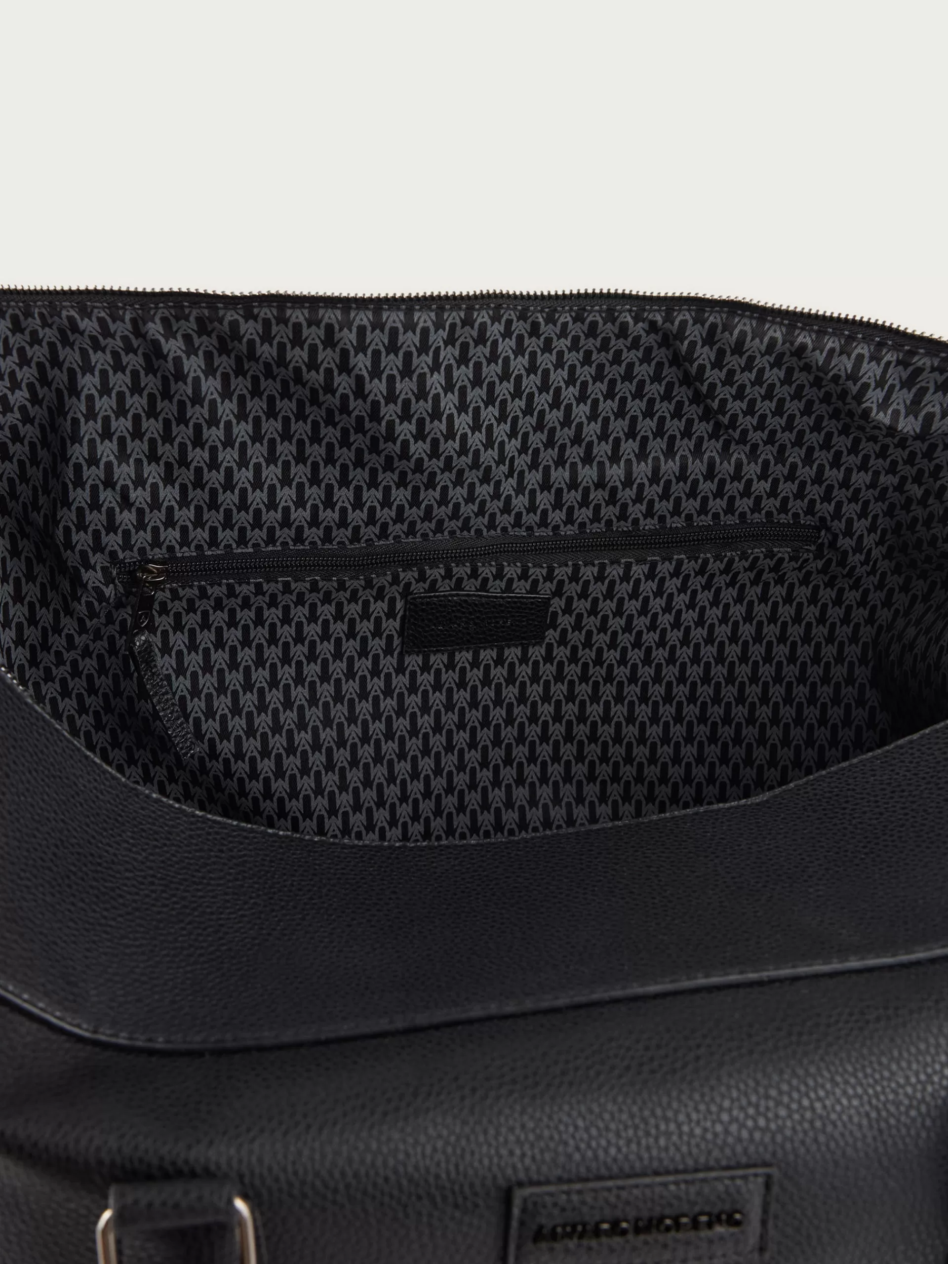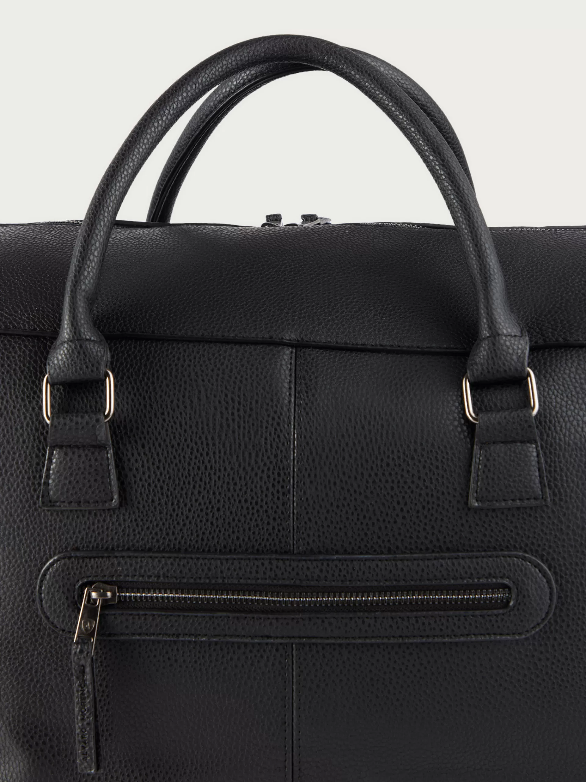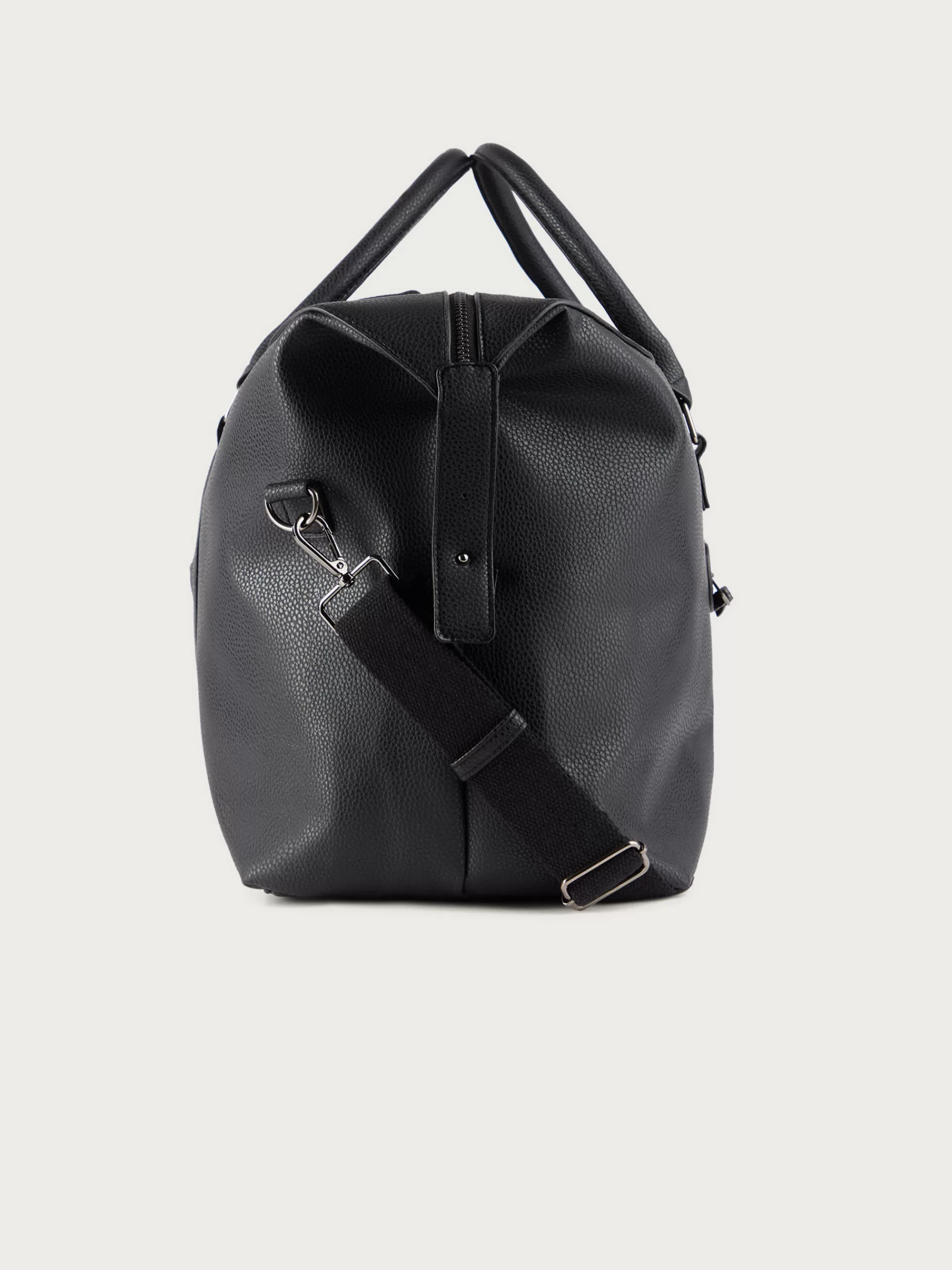 Bolsa de viaje con asas superiores y correa desmontable por mosquetones. Cuenta con un amplio compartimento principal de cierre mediante cremallera, bolsillo interior y uno exterior. Detalles personalizados. Forrado en su interior.