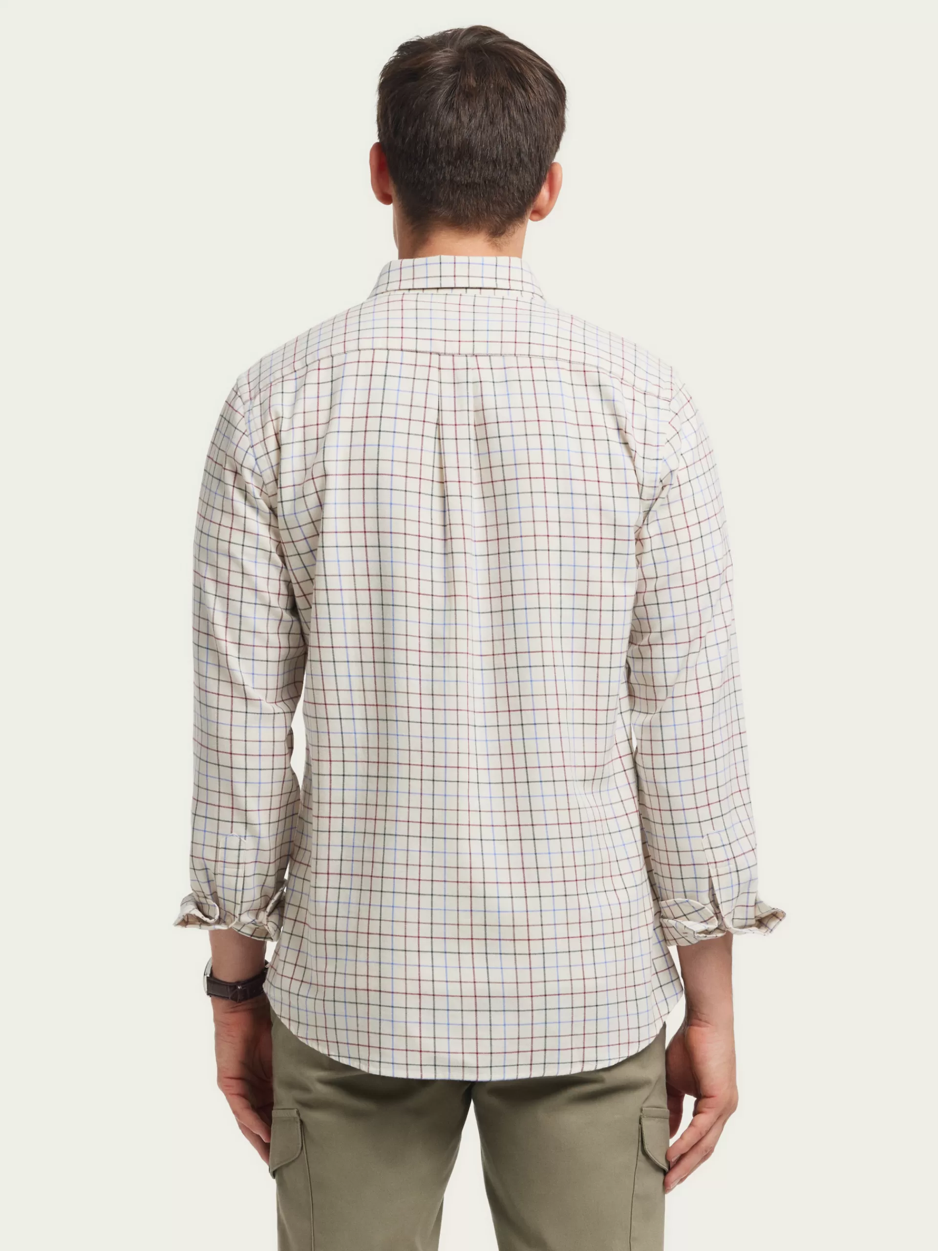Camisa a cuadros confeccionada en tejido de franela. Cuenta con cuello clásico de botón, manga larga con puños simples y logo de la marca grabado en el frontal. Corte regular fit.