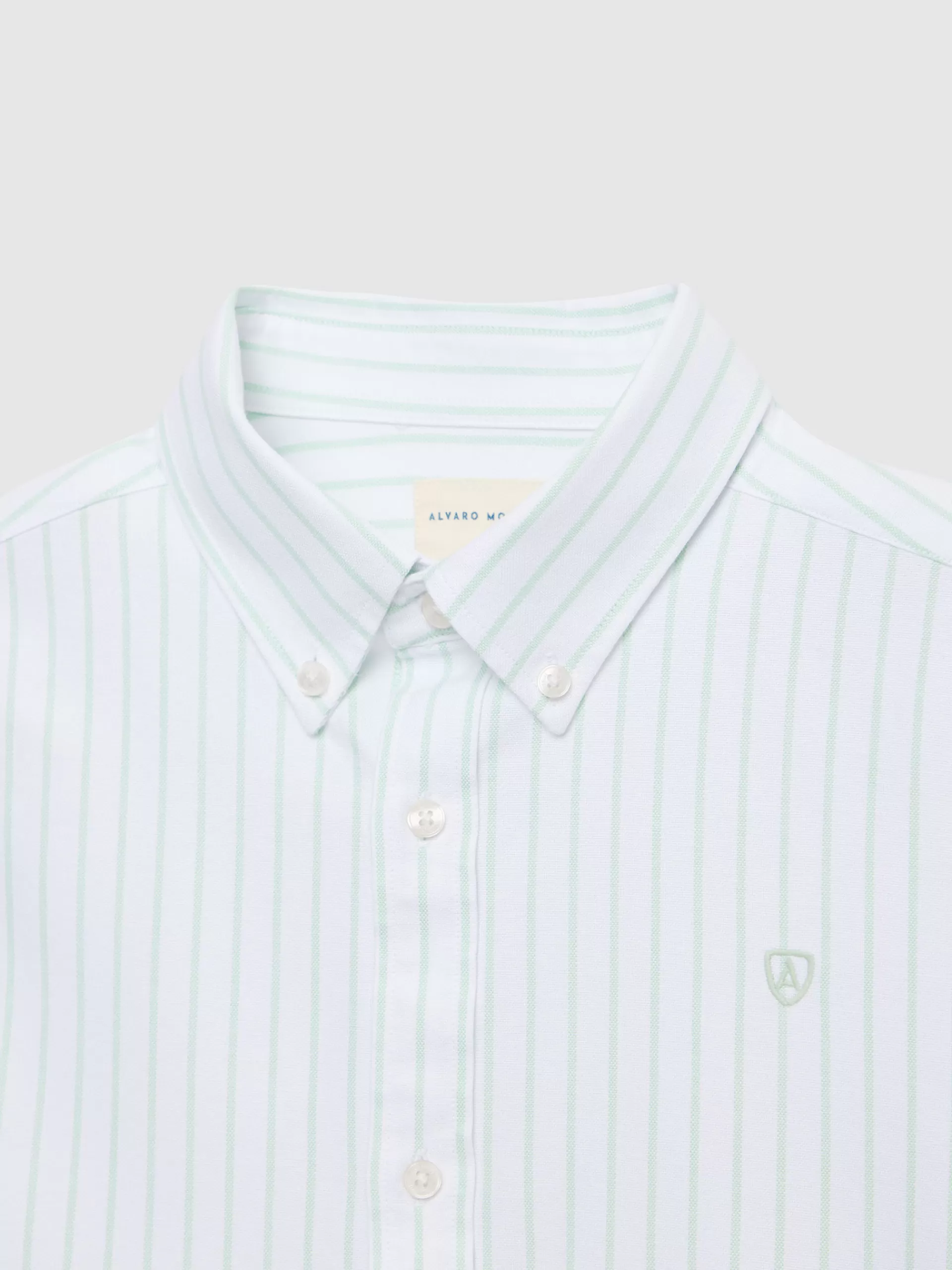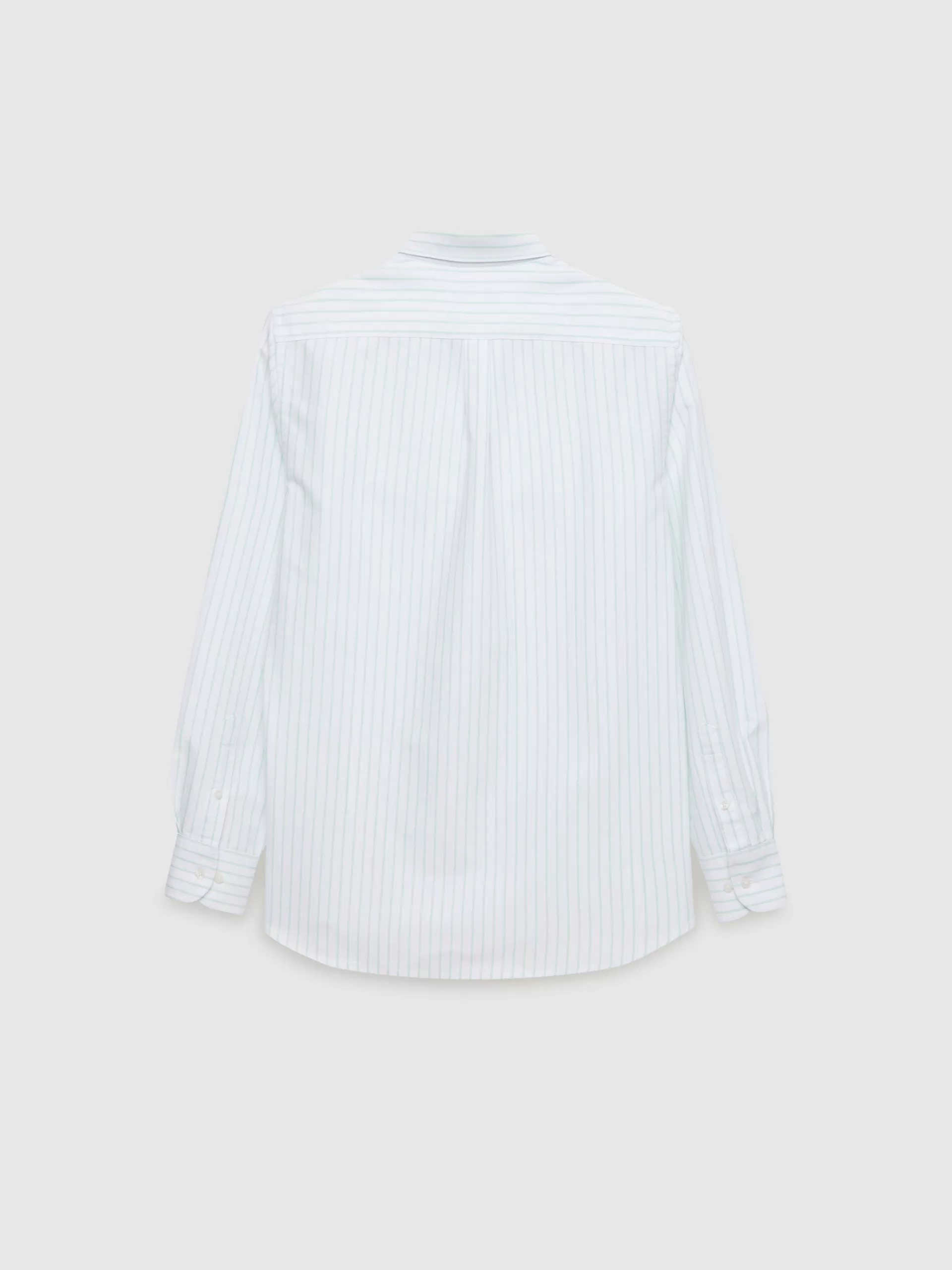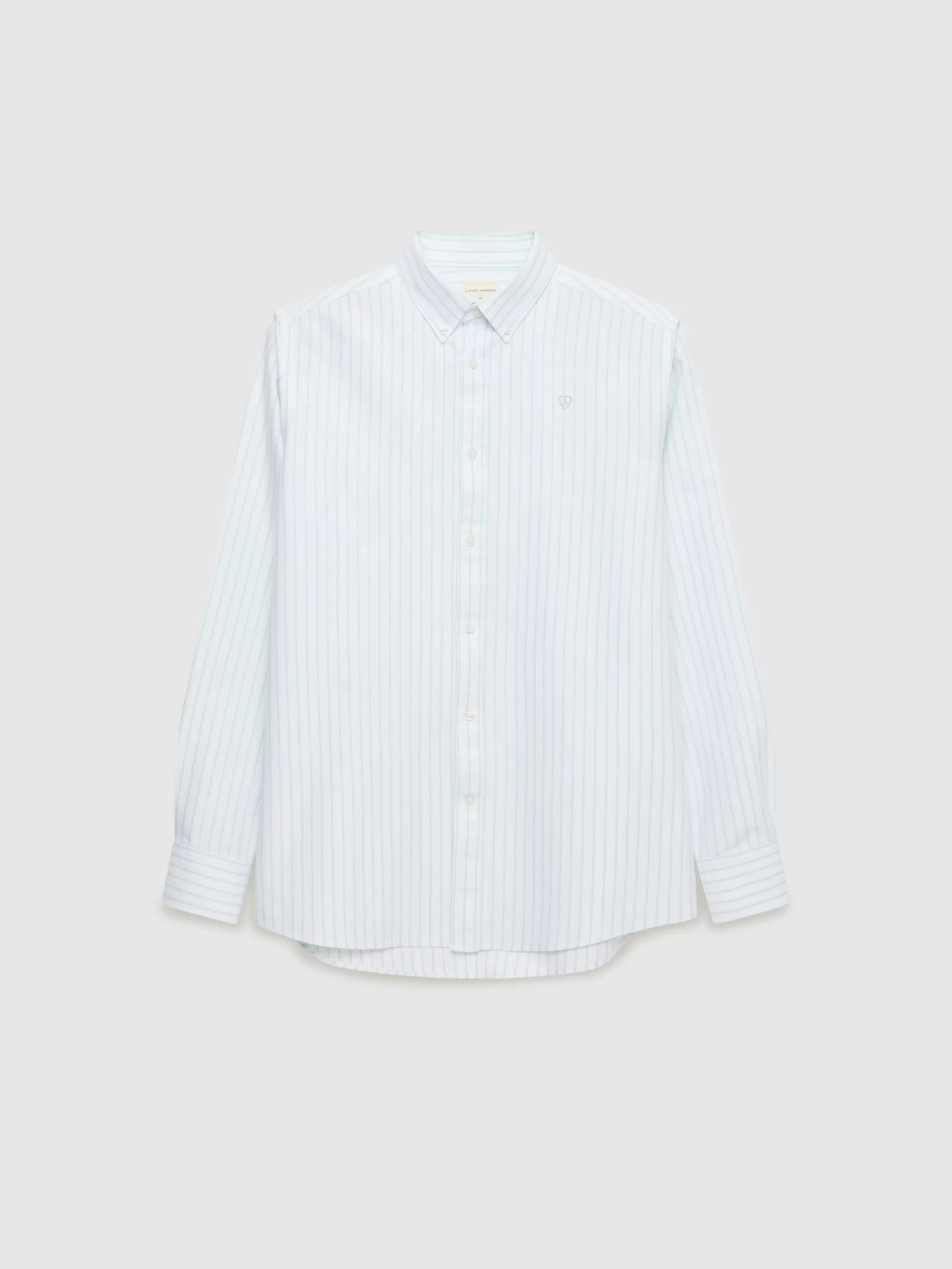 Camisa estilo a rayas confeccionada en algodón. Cuenta con cuello botón, manga larga de puños simples y logo grabado al tono en el frontal. Corte regular fit.