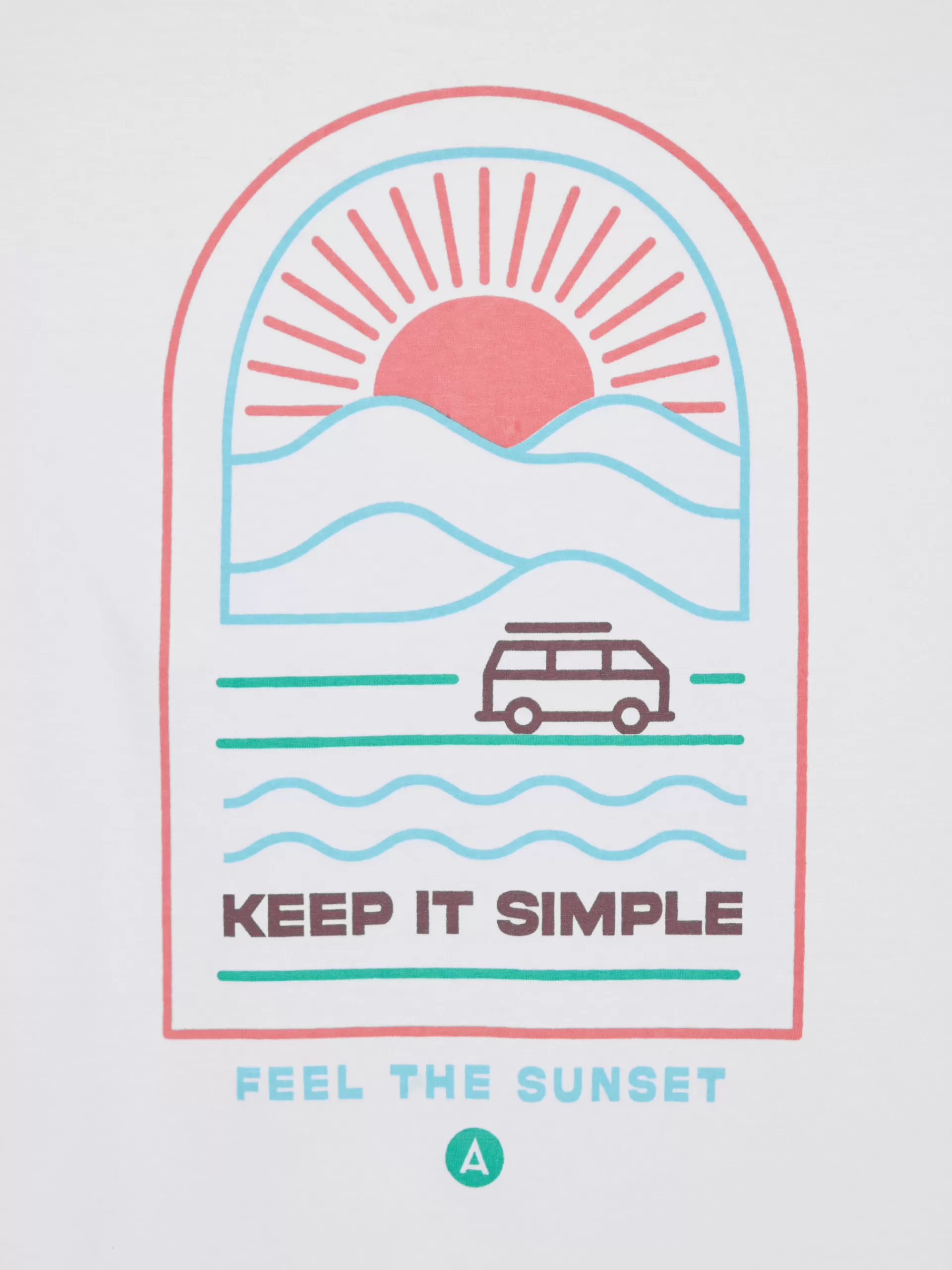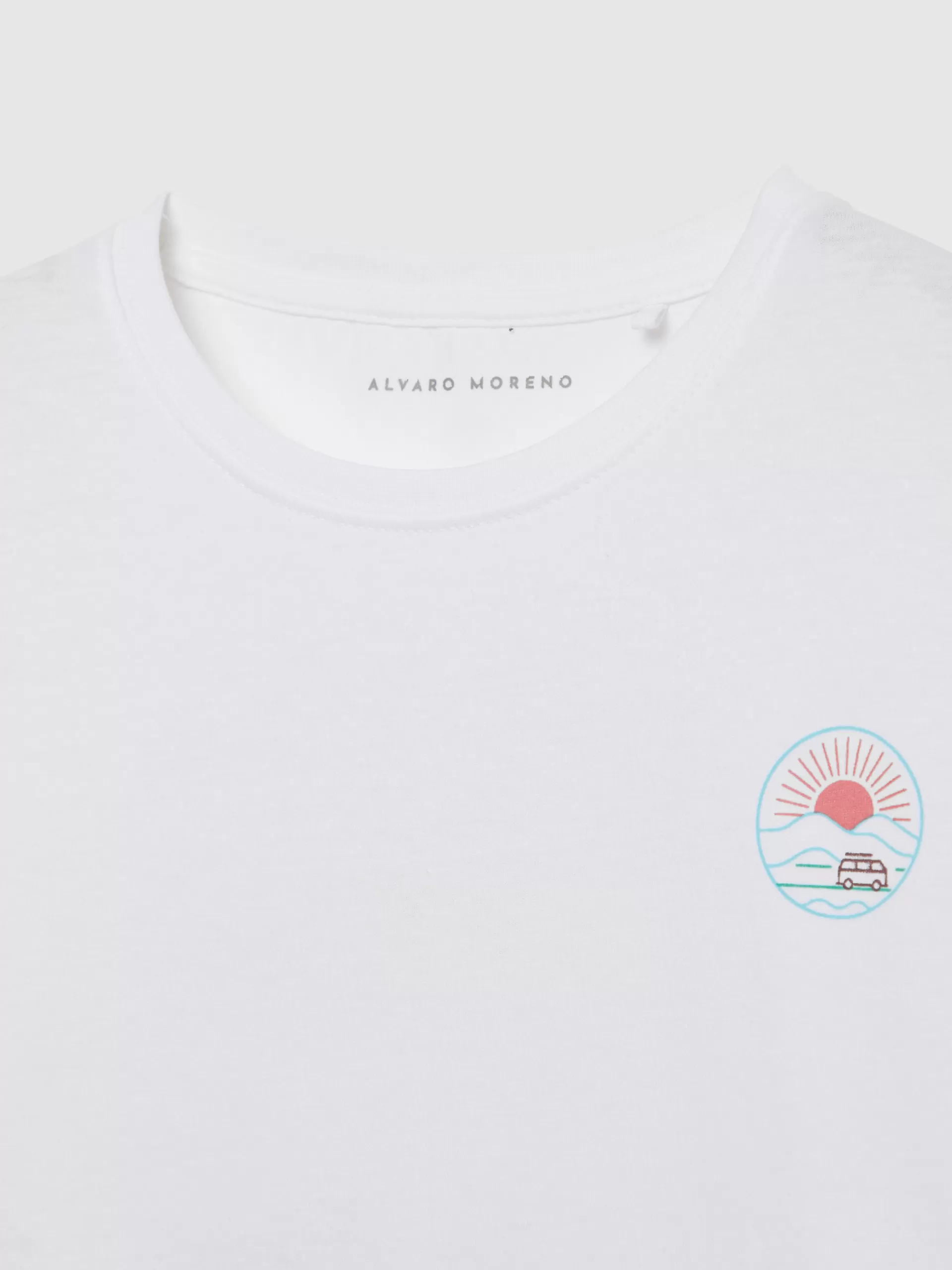 Camiseta con estampado personalizado en el frontal y en la espalda. Cuenta con cuello redondo, manga corta y etiqueta canvas en el lateral. Corte regular fit.
