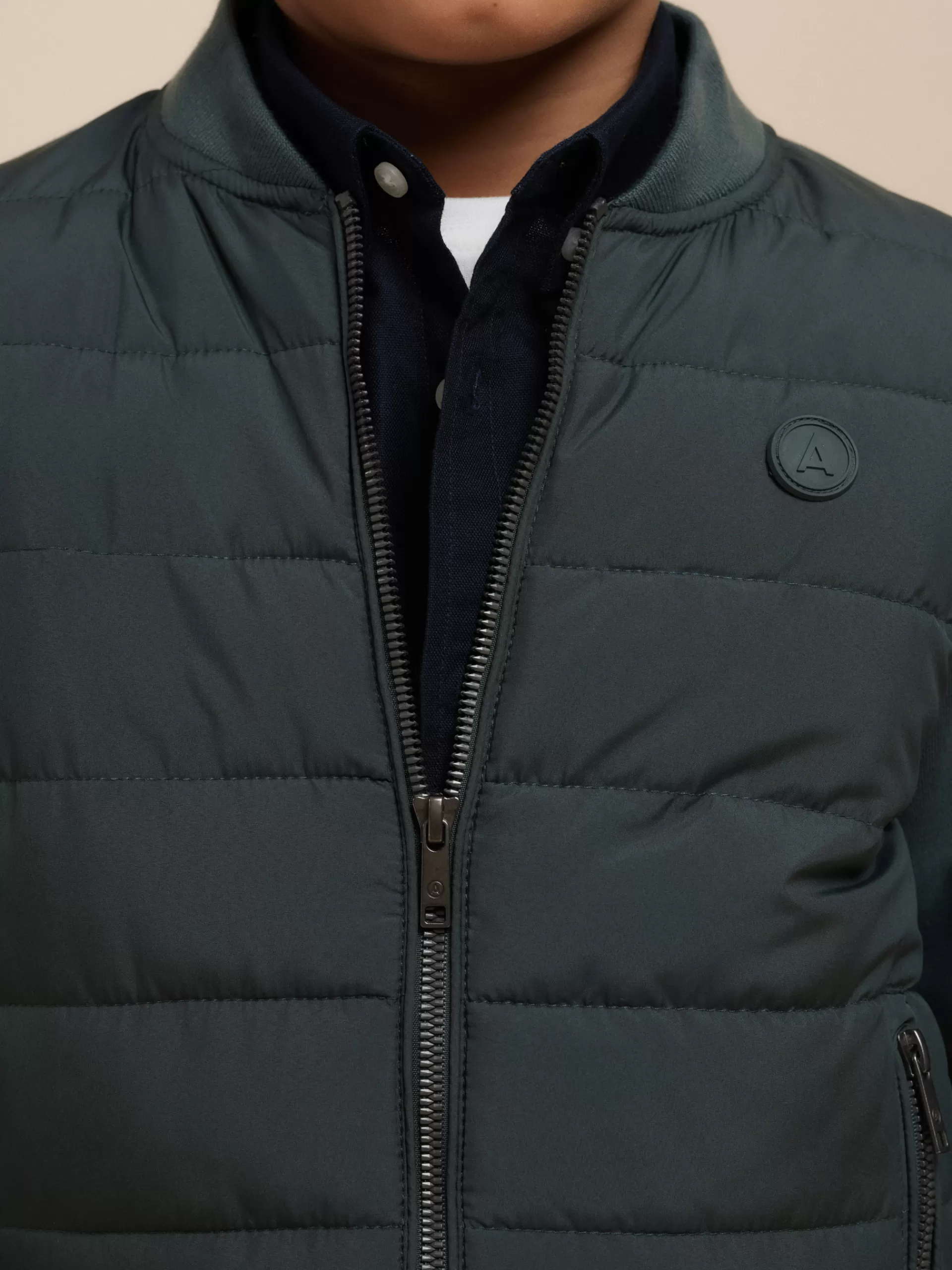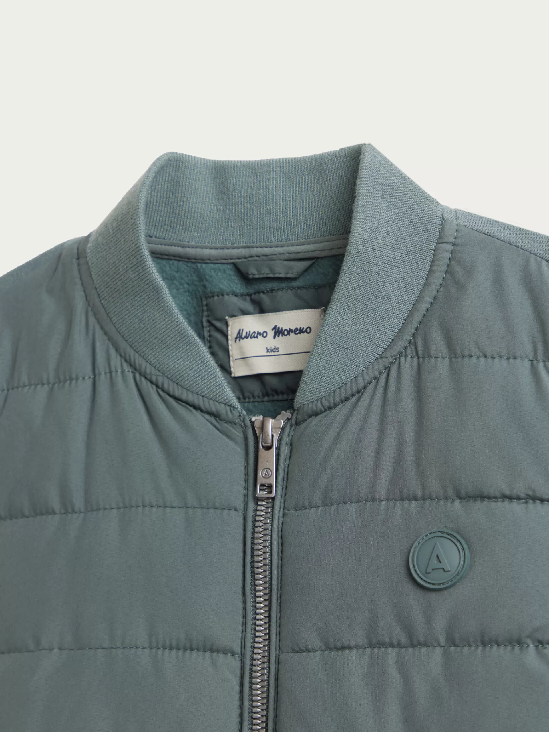 Cazadora estilo bomber con cuello y mangas en tejido de punto. Cuenta en su parte delantera con cierre central mediante cremallera, dos bolsillos y parche con el logo de la marca grabado en el pecho.