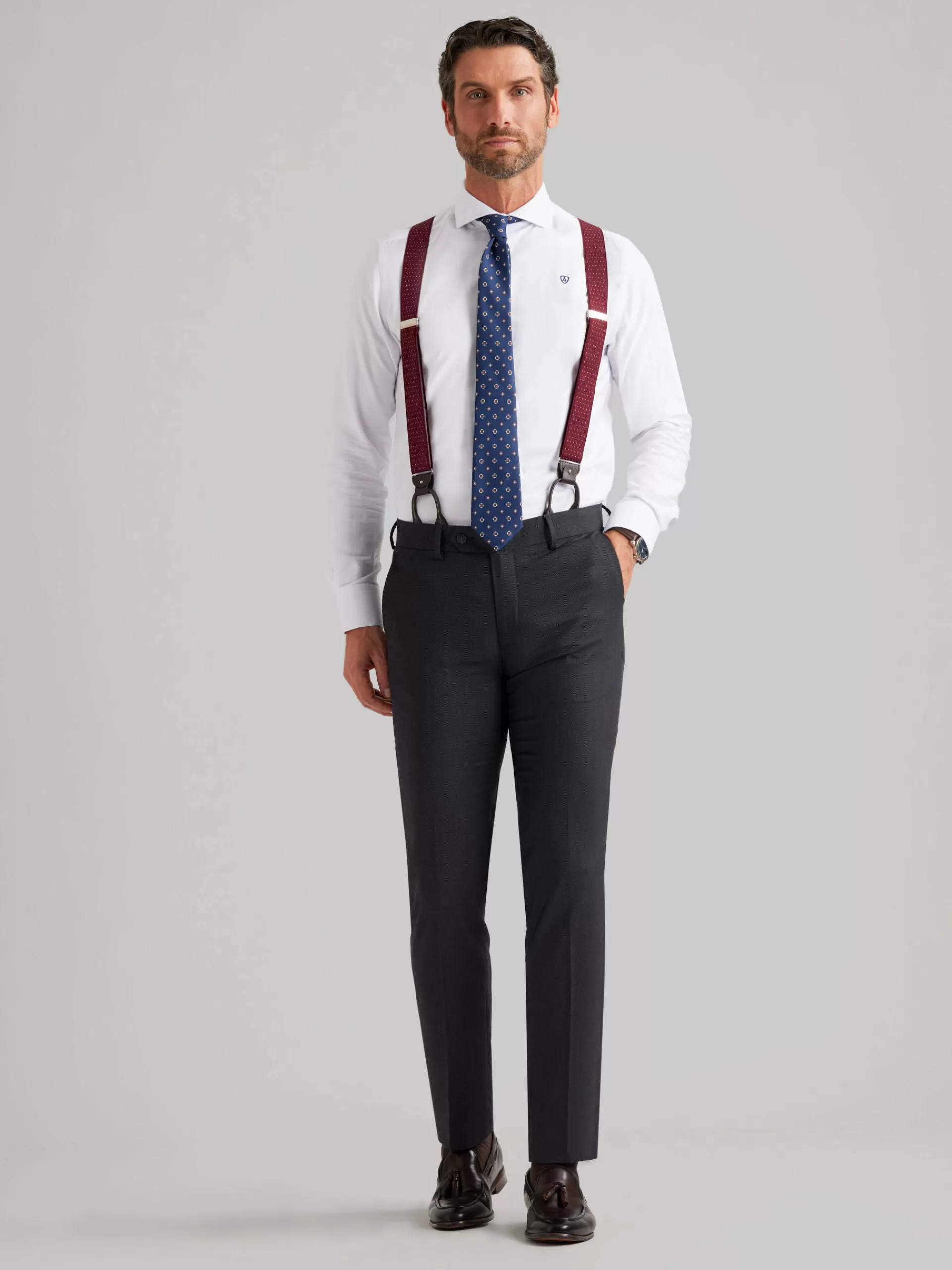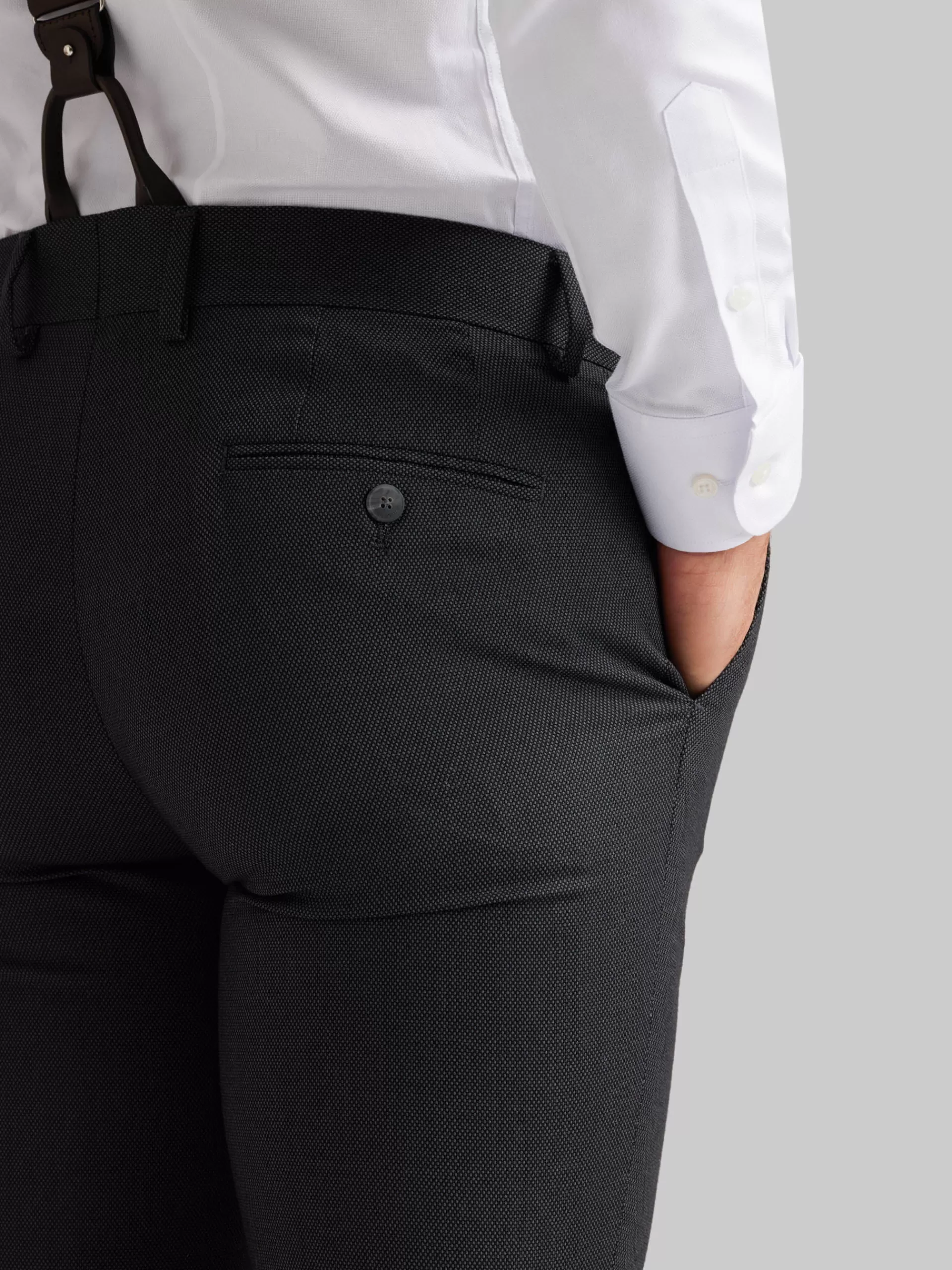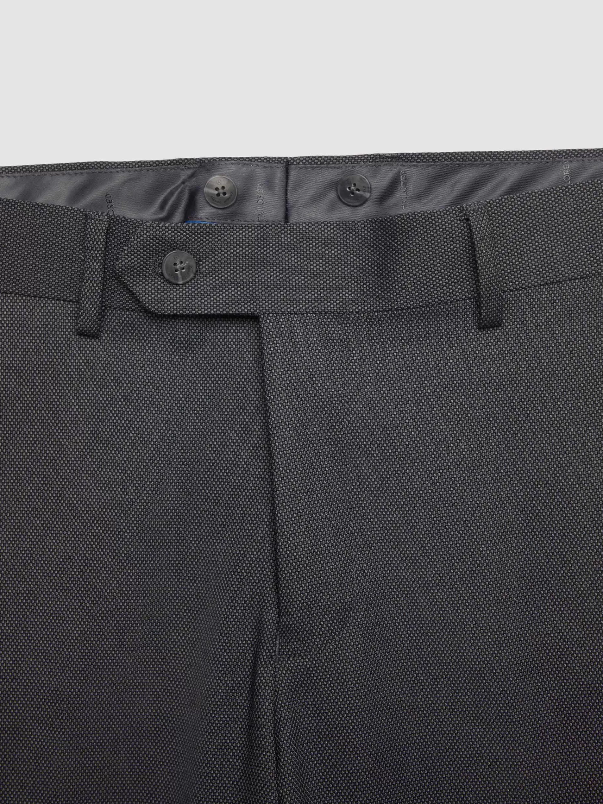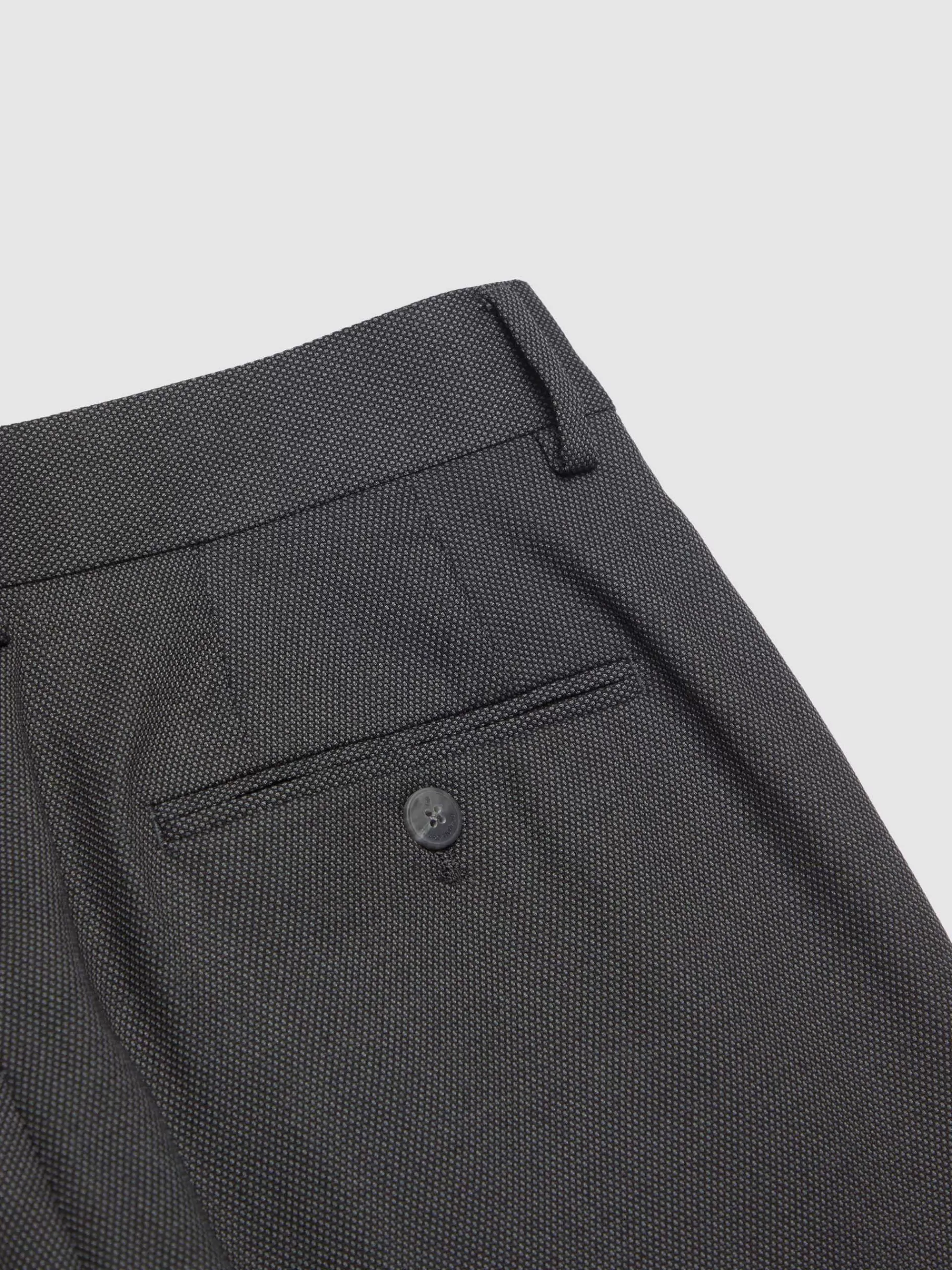 Pantalón de traje en tejido de ojo de perdiz que cuenta con cierre frontal de cremallera y botones, dos bolsillos abier…