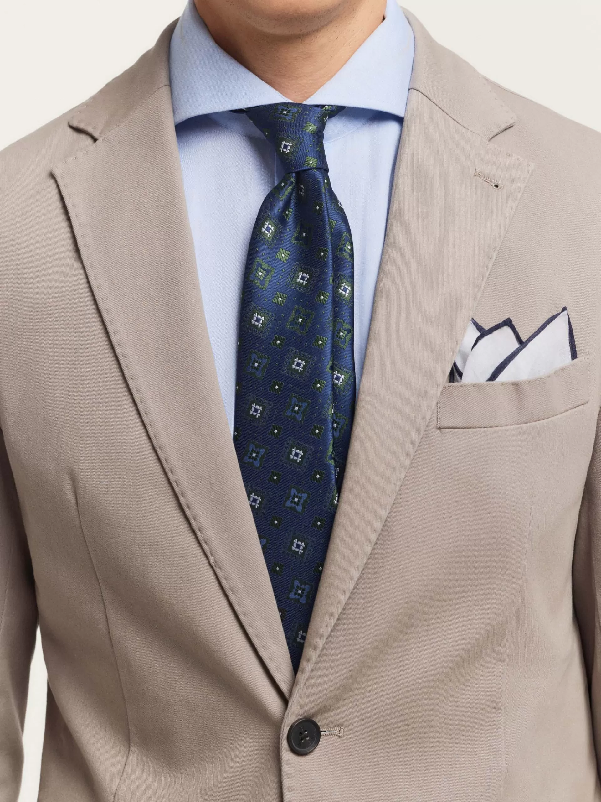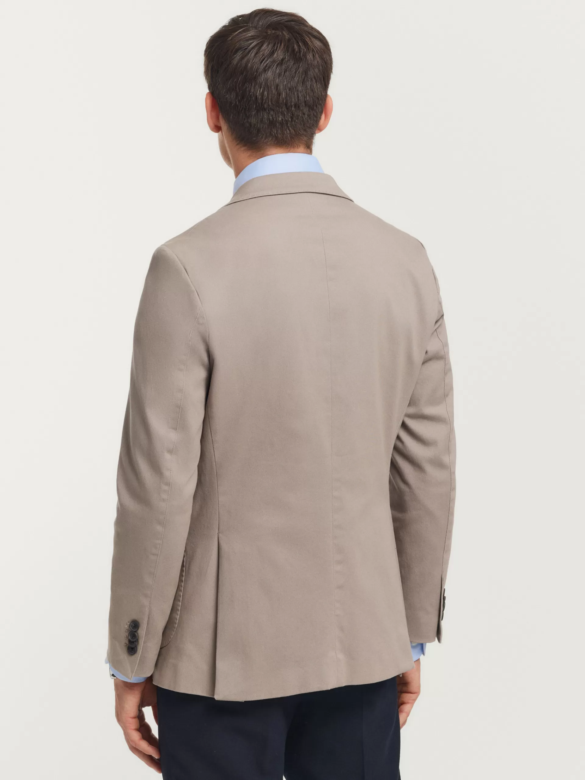 Americana confeccionada en tejido de algodón de corte slim fit. Cuenta con cuello y solapa, cierre central simple media…