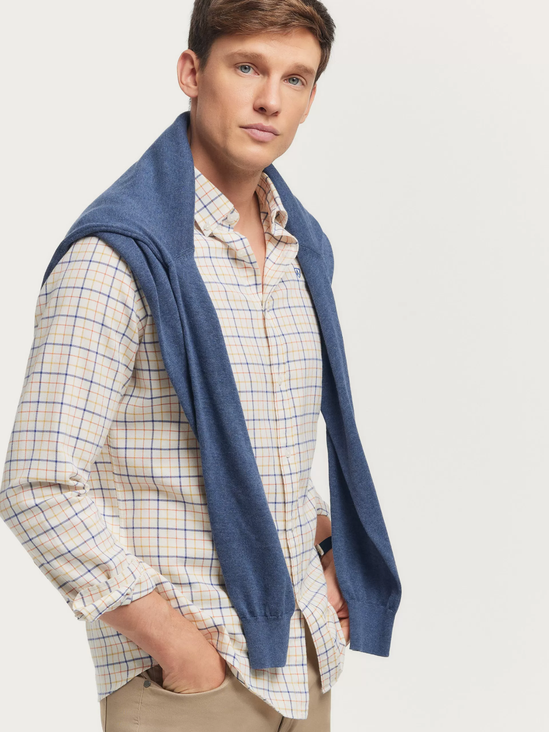 Camisa a cuadros confeccionada en tejido de franela. Cuenta con cuello clásico de botón, manga larga con puños simples y logo de la marca grabado en el frontal. Corte regular fit.