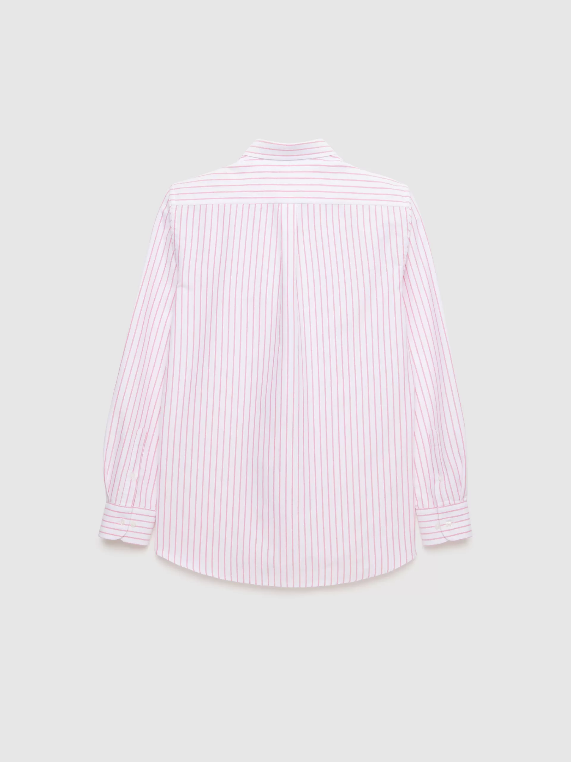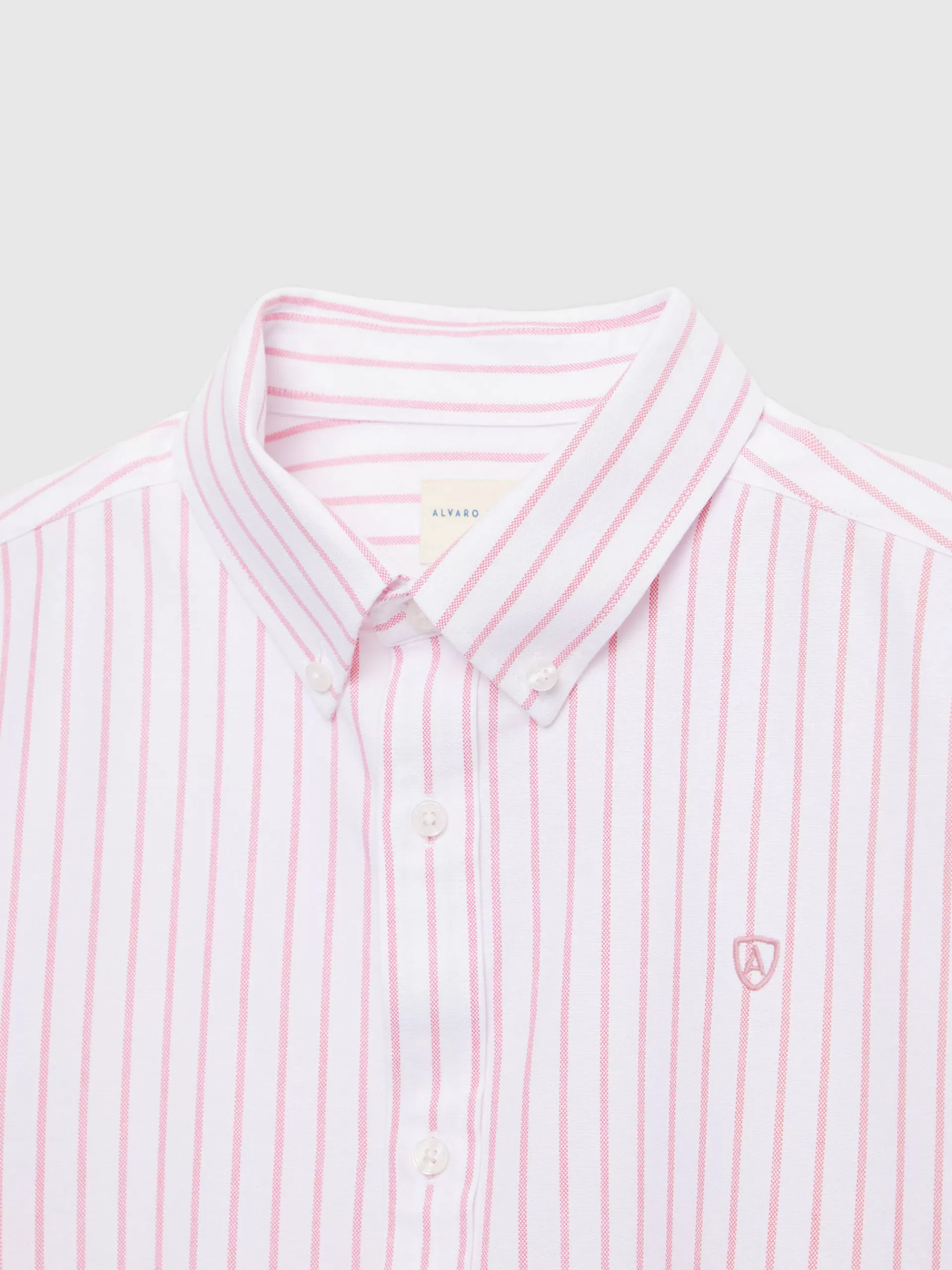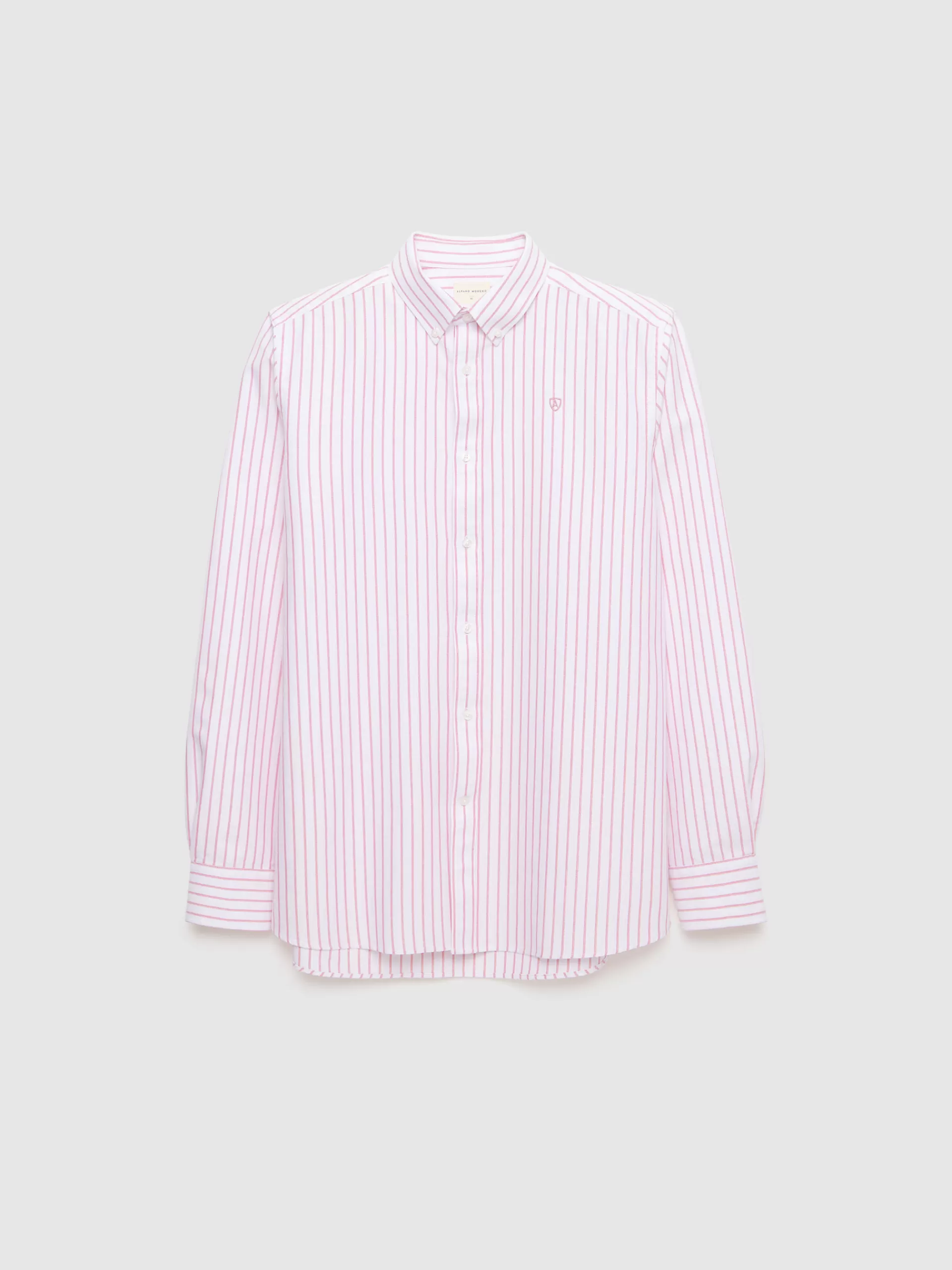 Camisa estilo a rayas confeccionada en algodón. Cuenta con cuello botón, manga larga de puños simples y logo grabado al tono en el frontal. Corte regular fit.