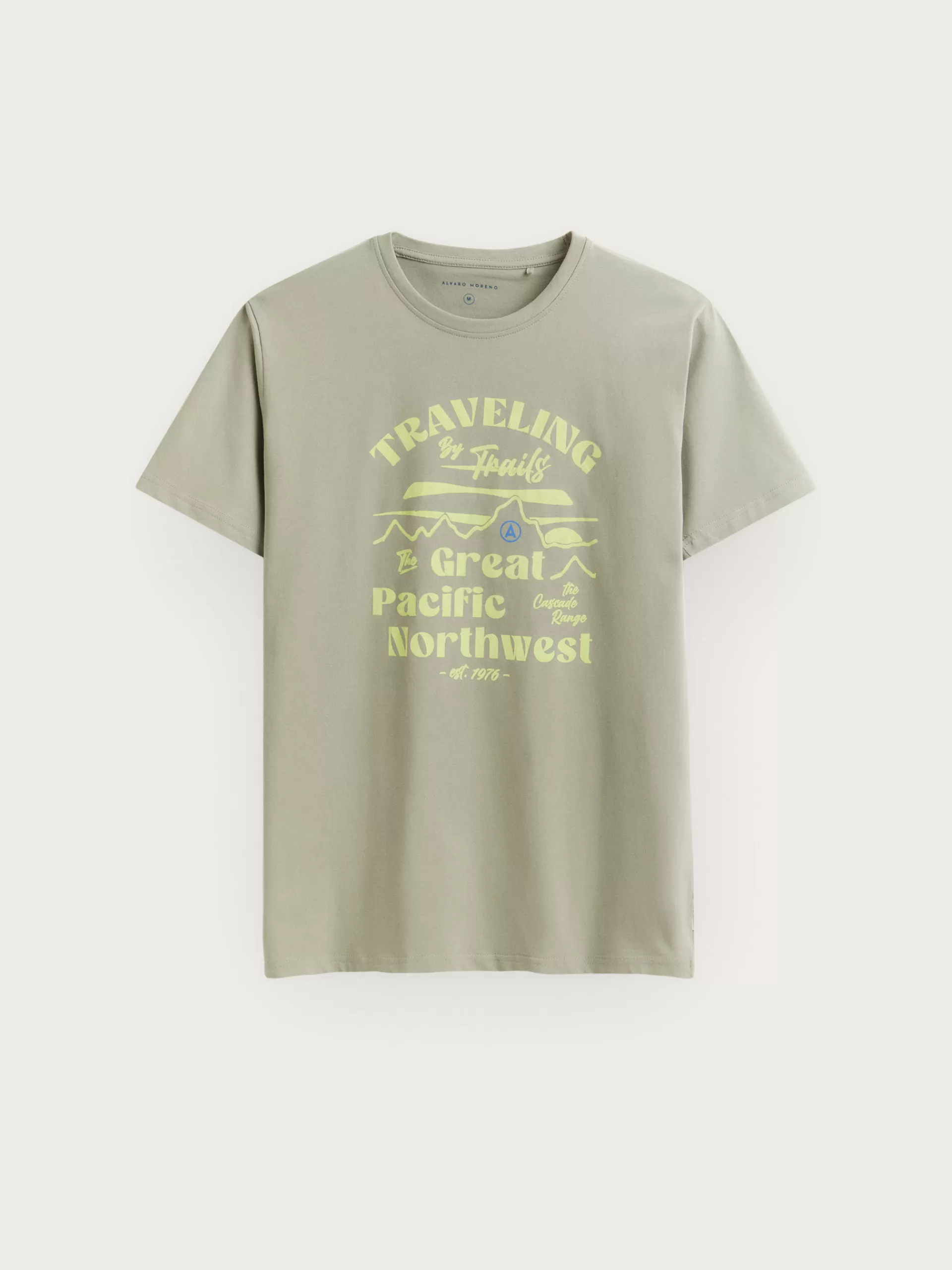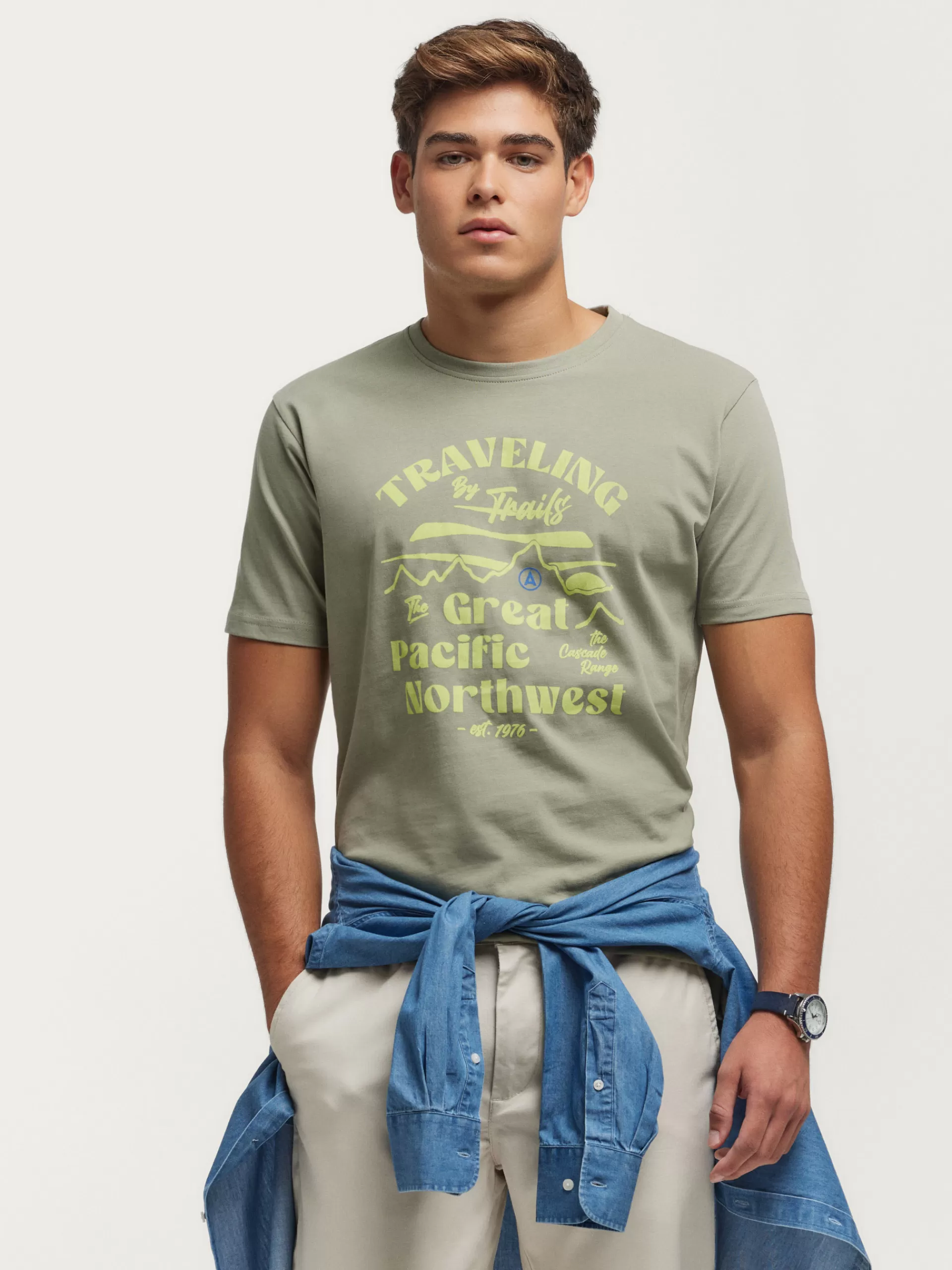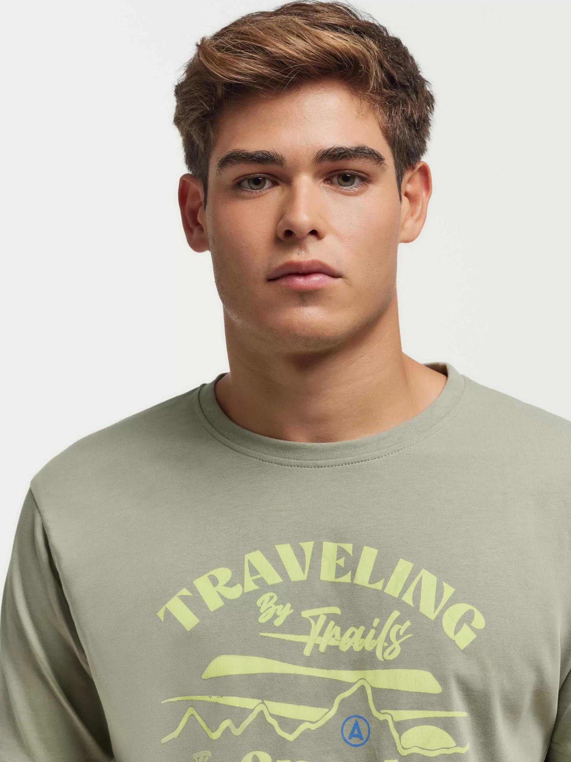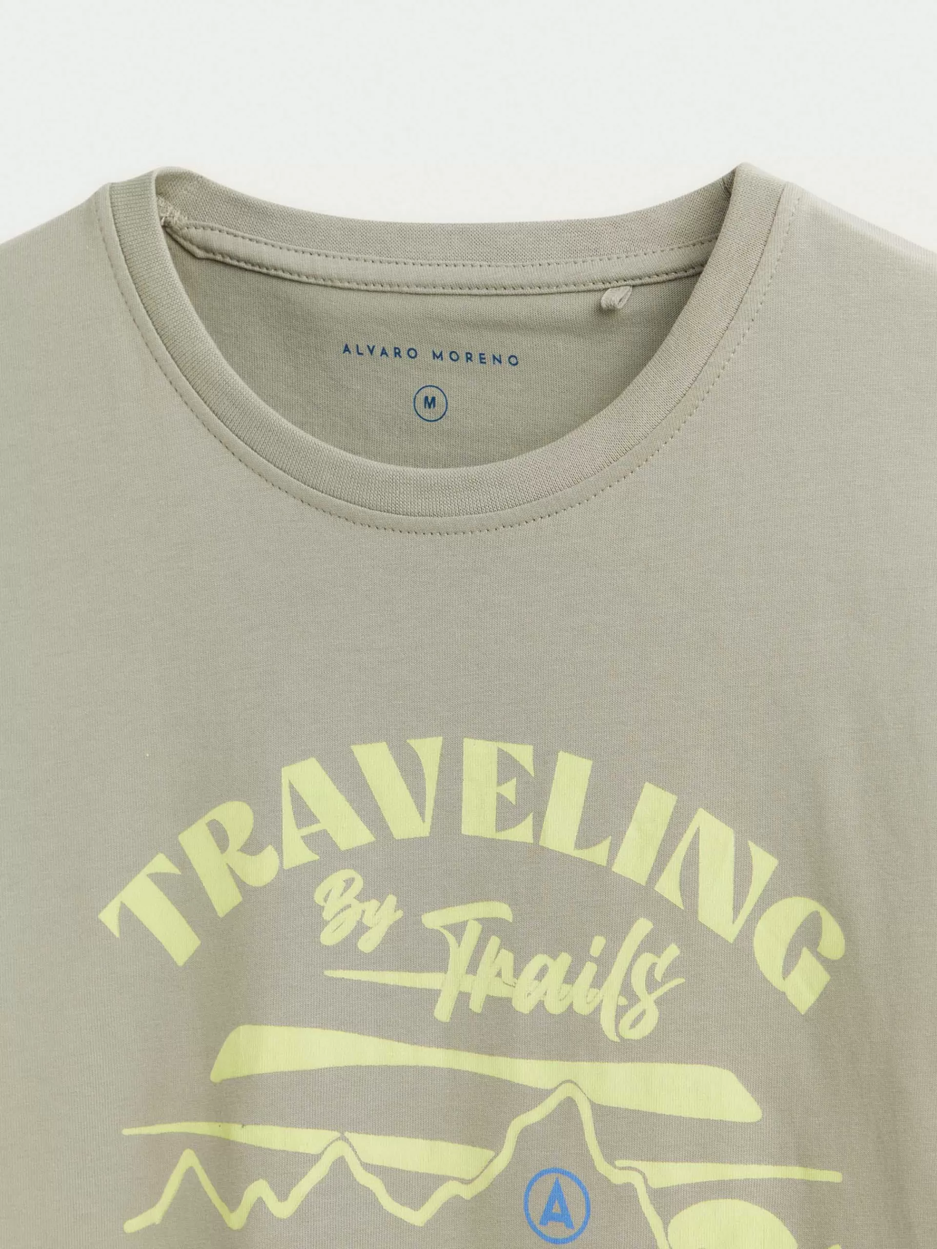 Camiseta confeccionada en algodón de corte regular fit. Cuenta con cuello redondo, manga corta y detalle personalizado estampado en la parte delantera y trasera.