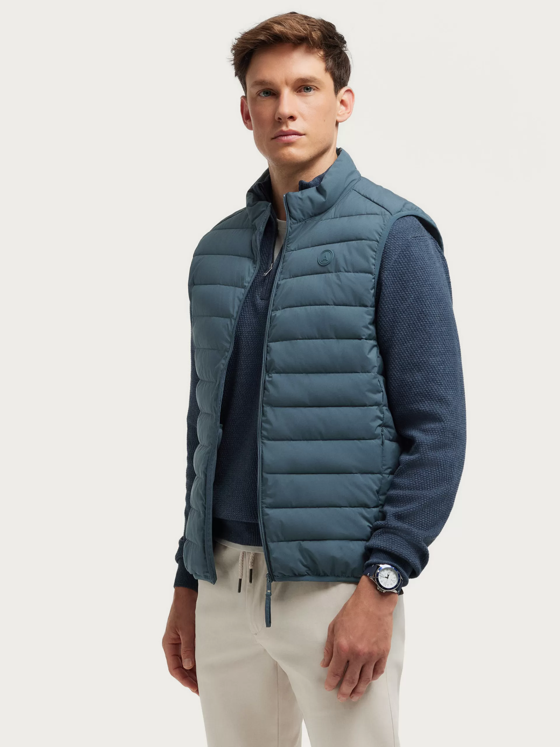 Chaleco con cierre central mediante cremallera y dos bolsillos en la cintura. Cuenta con cuello subido, logo grabado en el frontal y sisa y cintura en punto elástico. Corte regular fit.