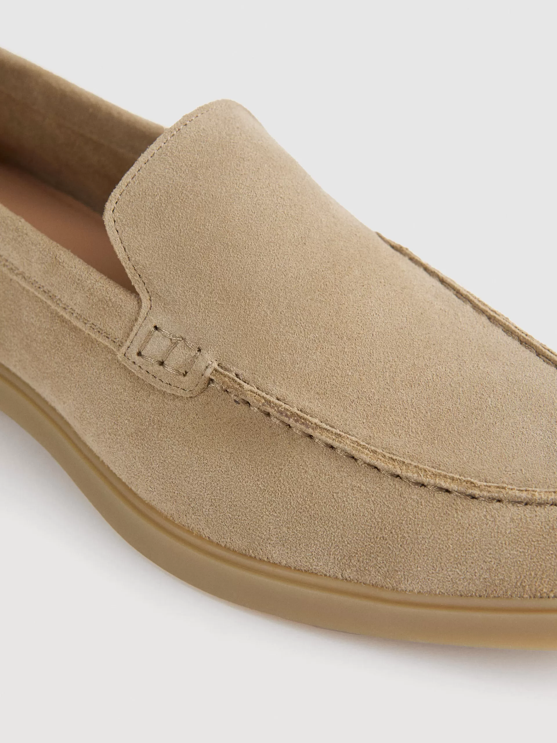 Mocasines de pala lisa confeccionados en piel de serraje. Puntera redonda y suela de goma antideslizante.